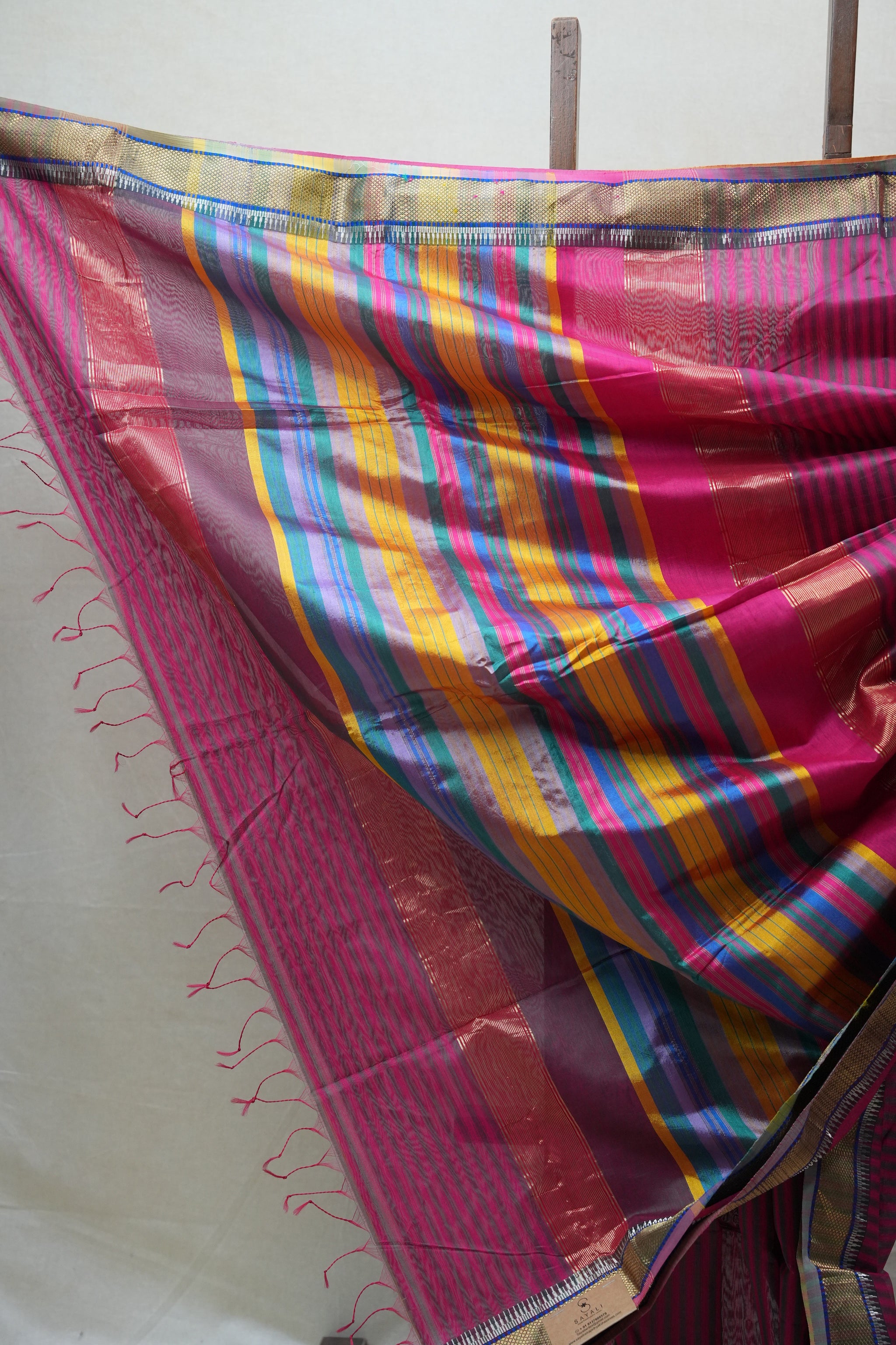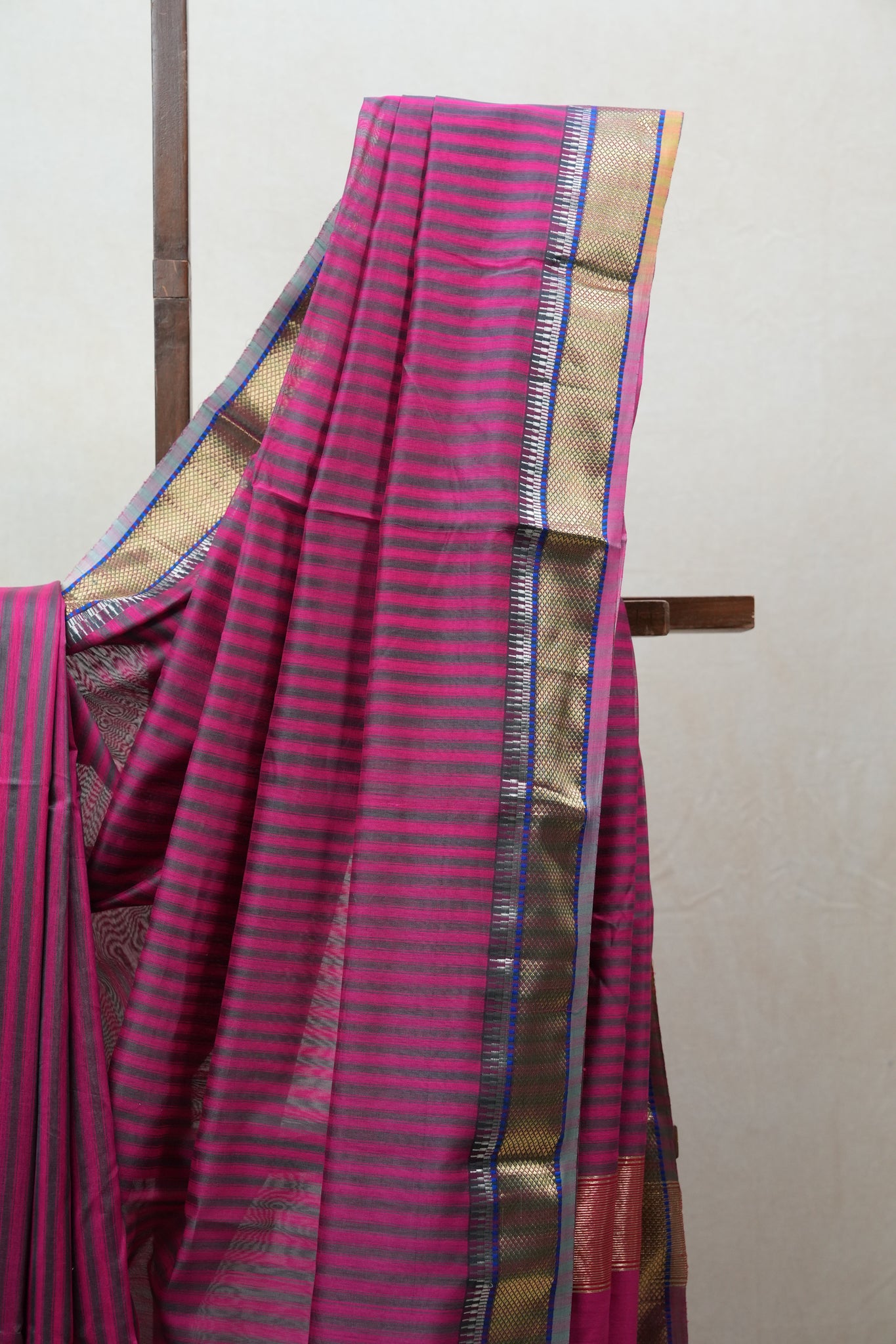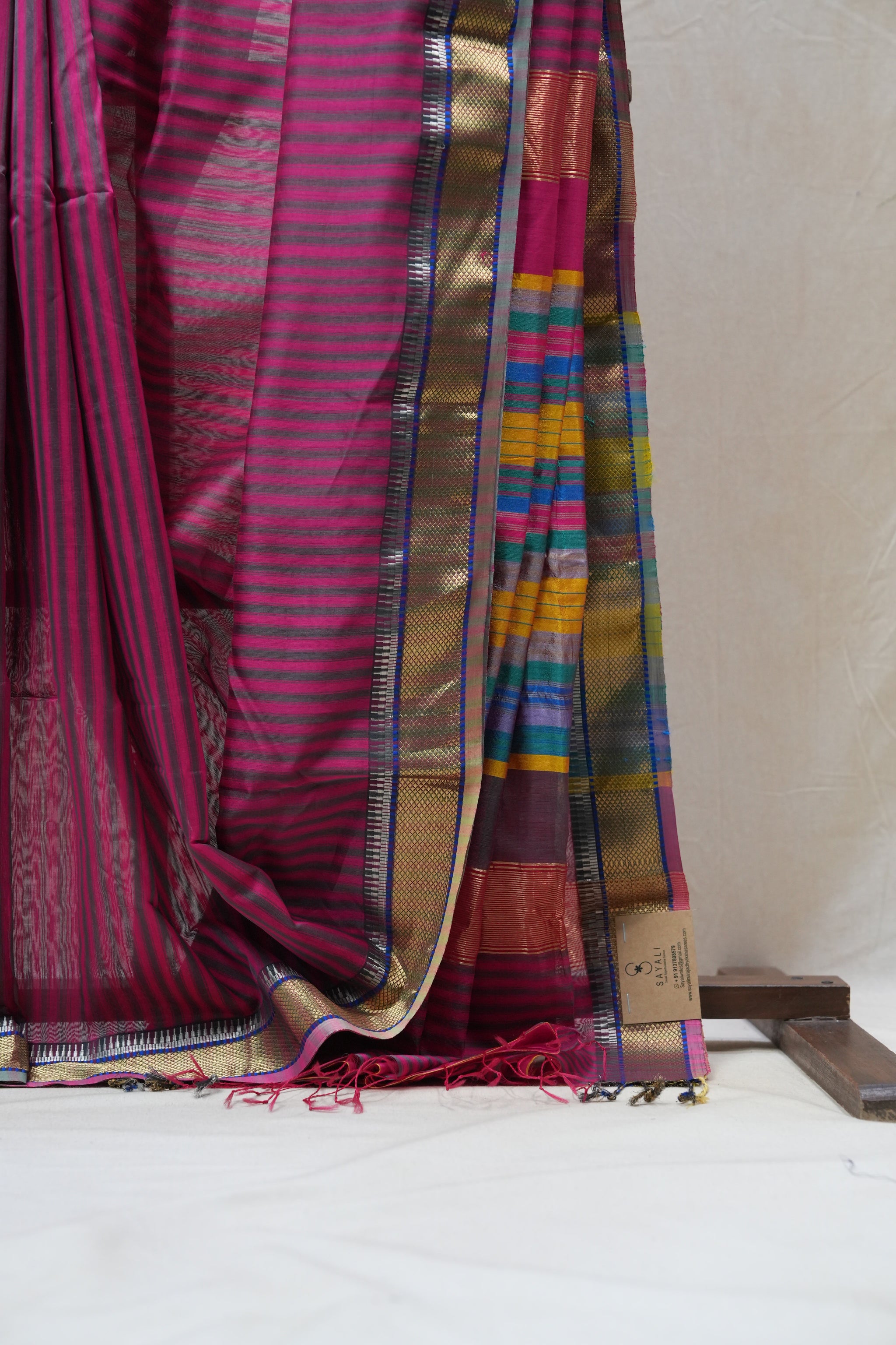Work - Maheshwari cotton silk saree with butti all over body and rich woven zari border.