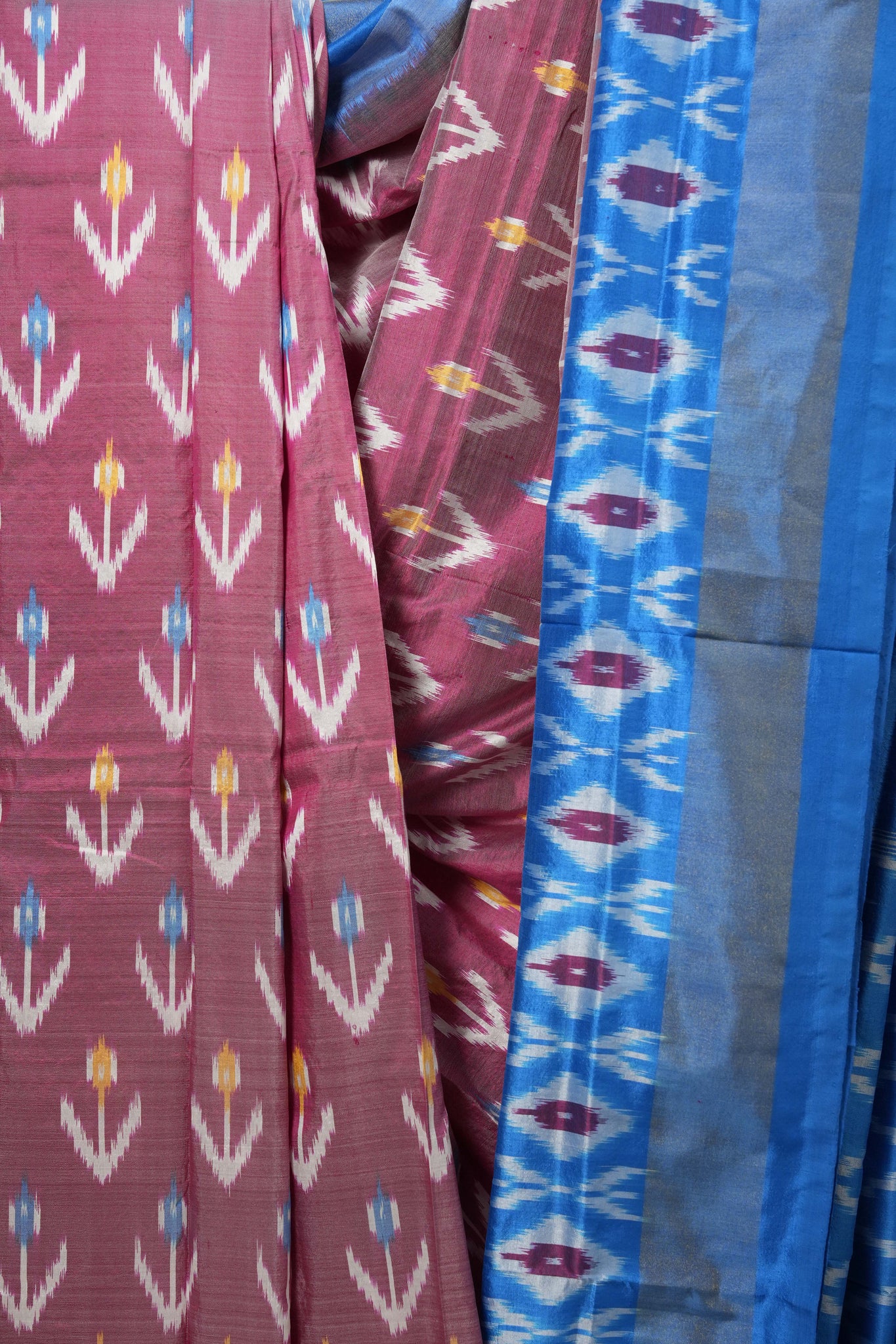 Two Tone Pink Pochampalli Silk Ikat Saree - SRTTPPSIS169