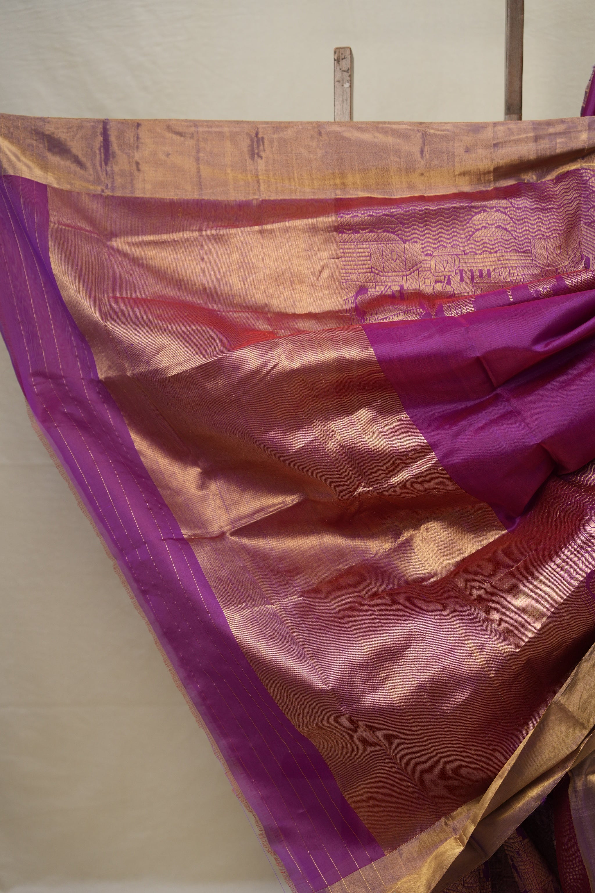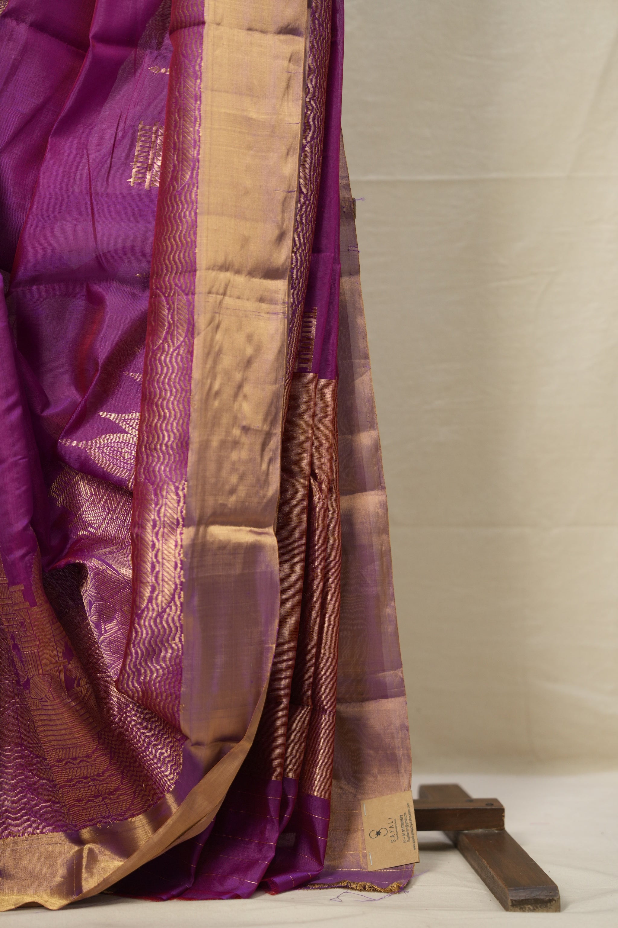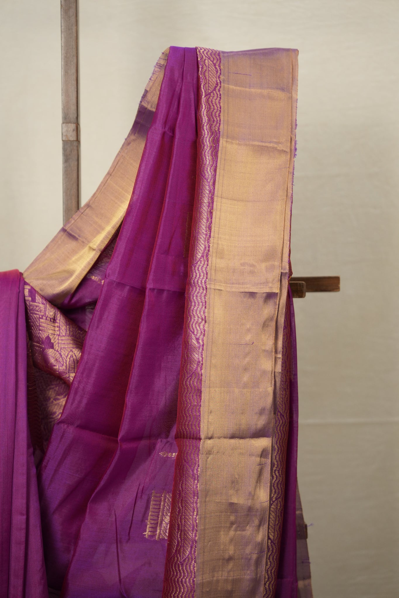 Work - Chanderi silk saree with purple body, motifs, and elegant gold zari border.