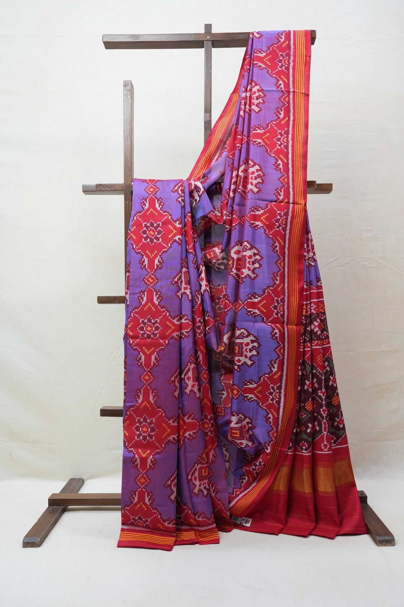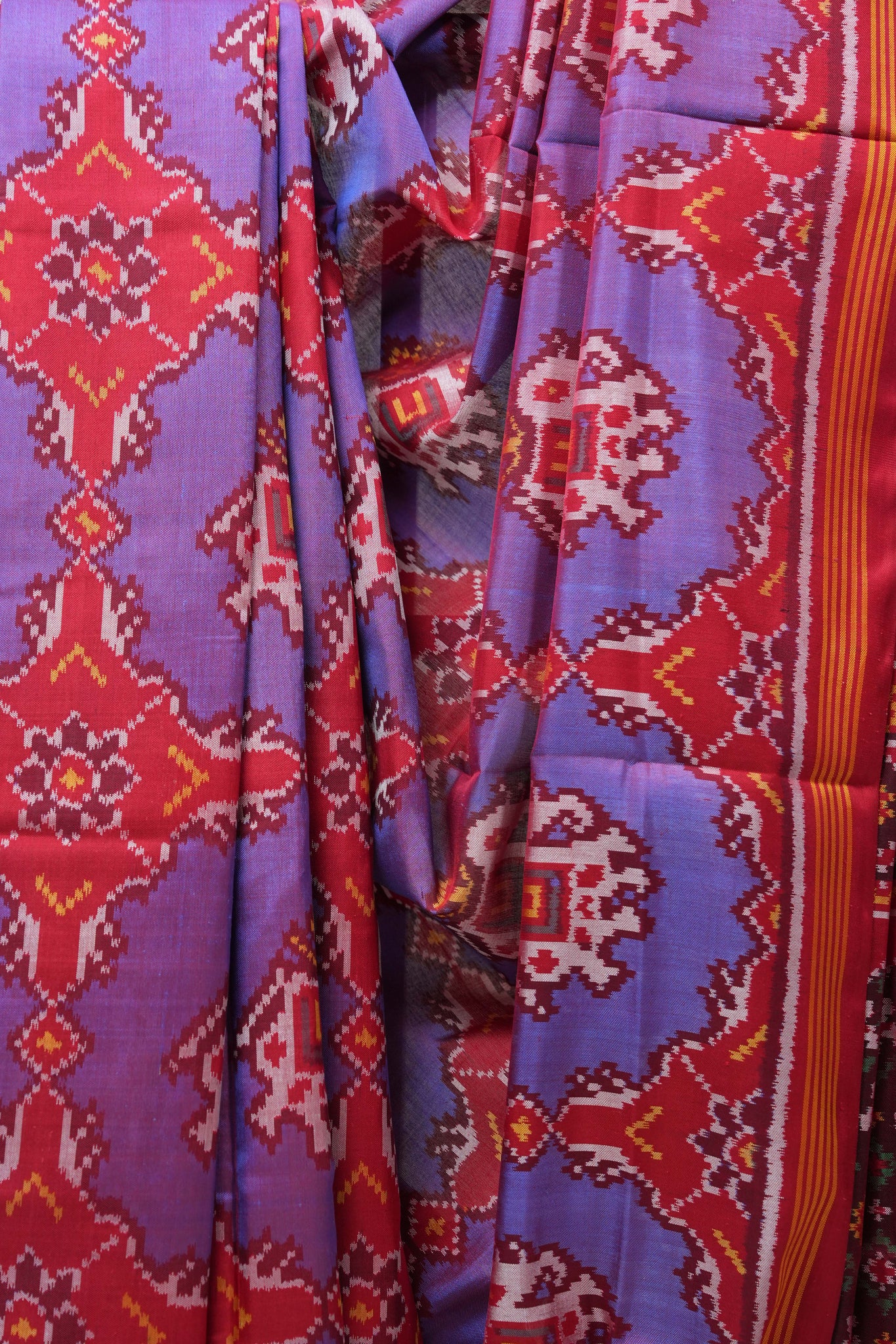 Work - A vibrant Rajkot Patola saree with bold blue tones and intricately woven geometric borders, blending tradition with festive elegance.