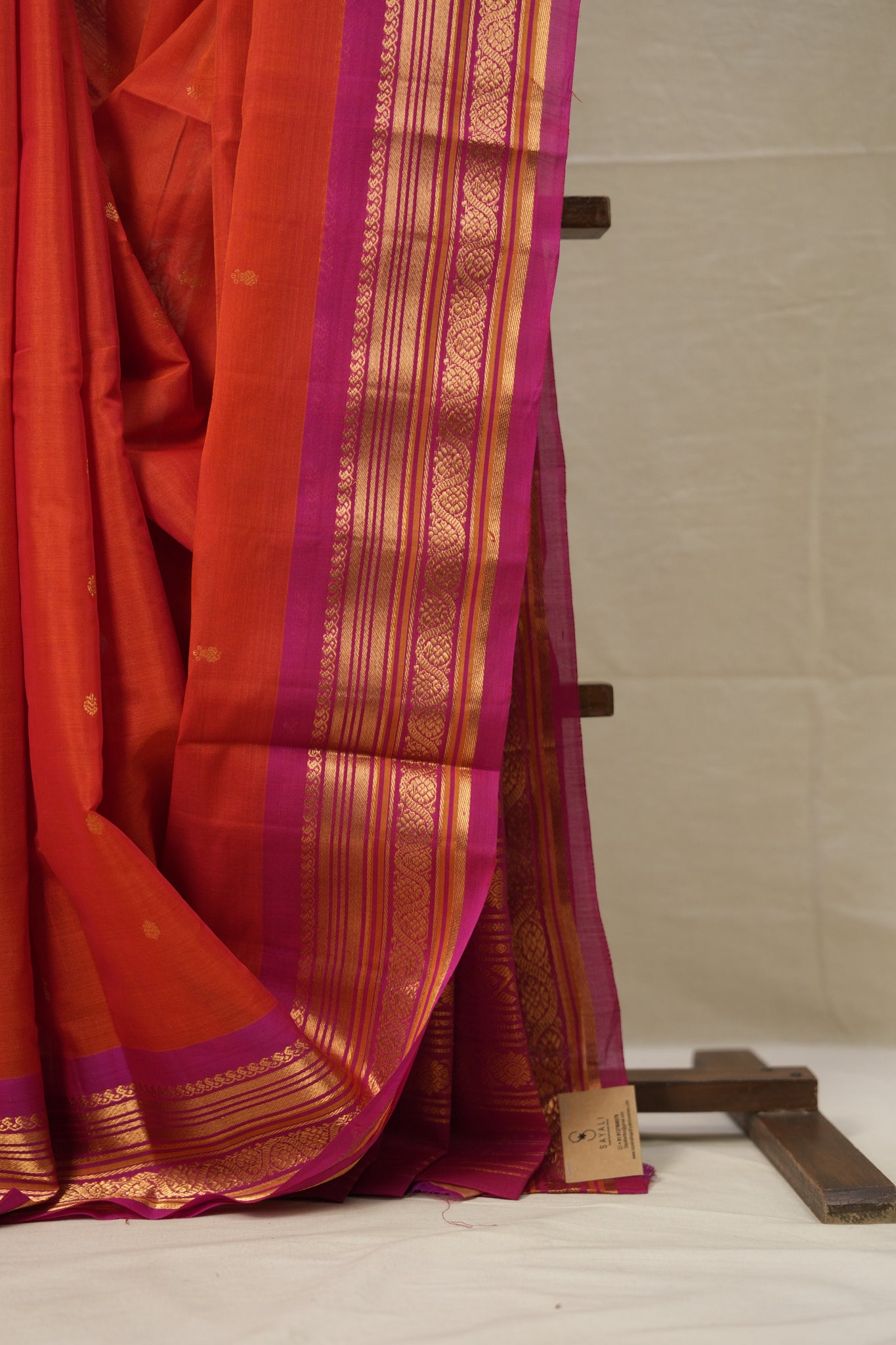 Brick Red Gadwal Cotton Silk Saree - SRBRGCSS152