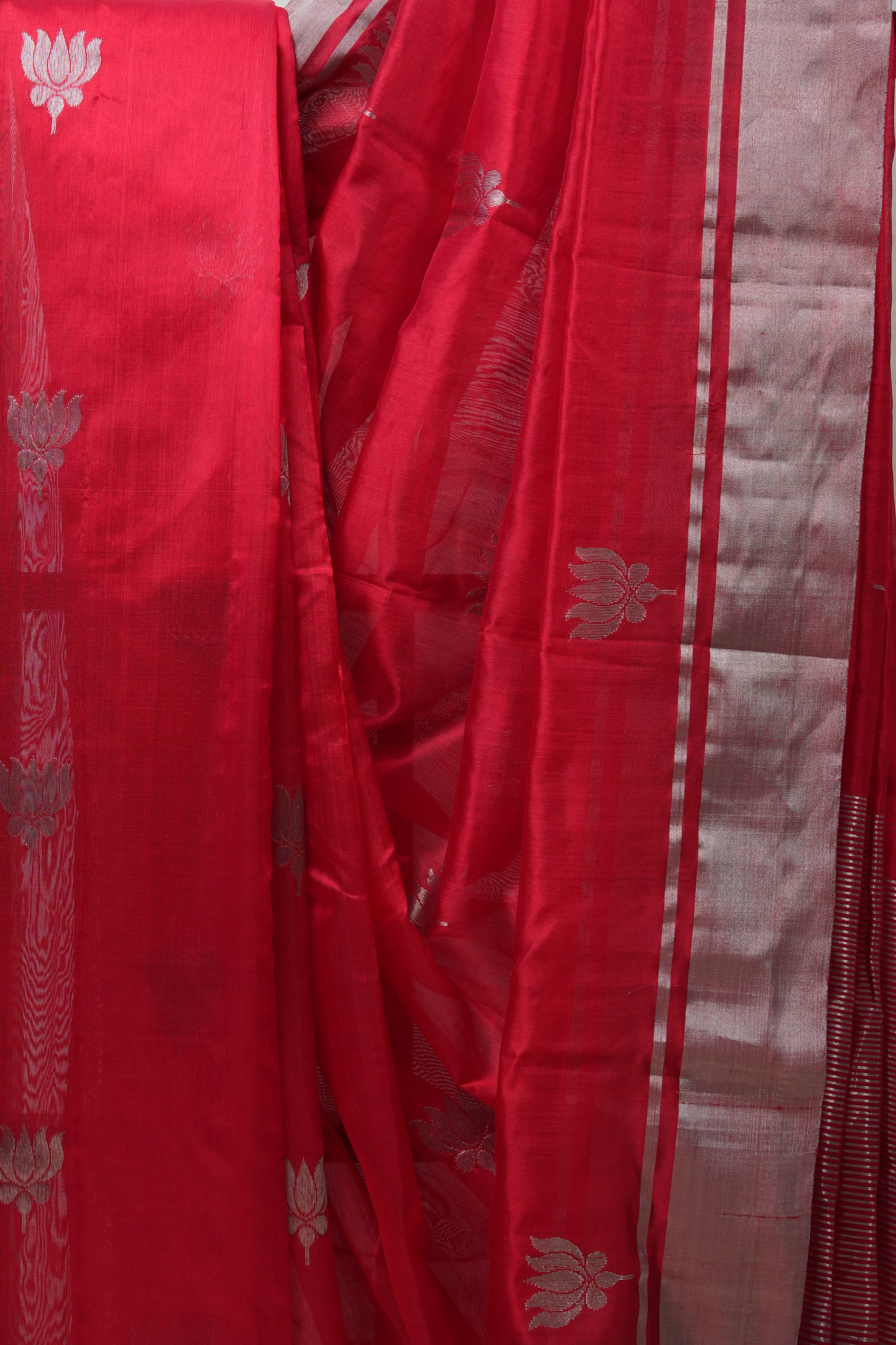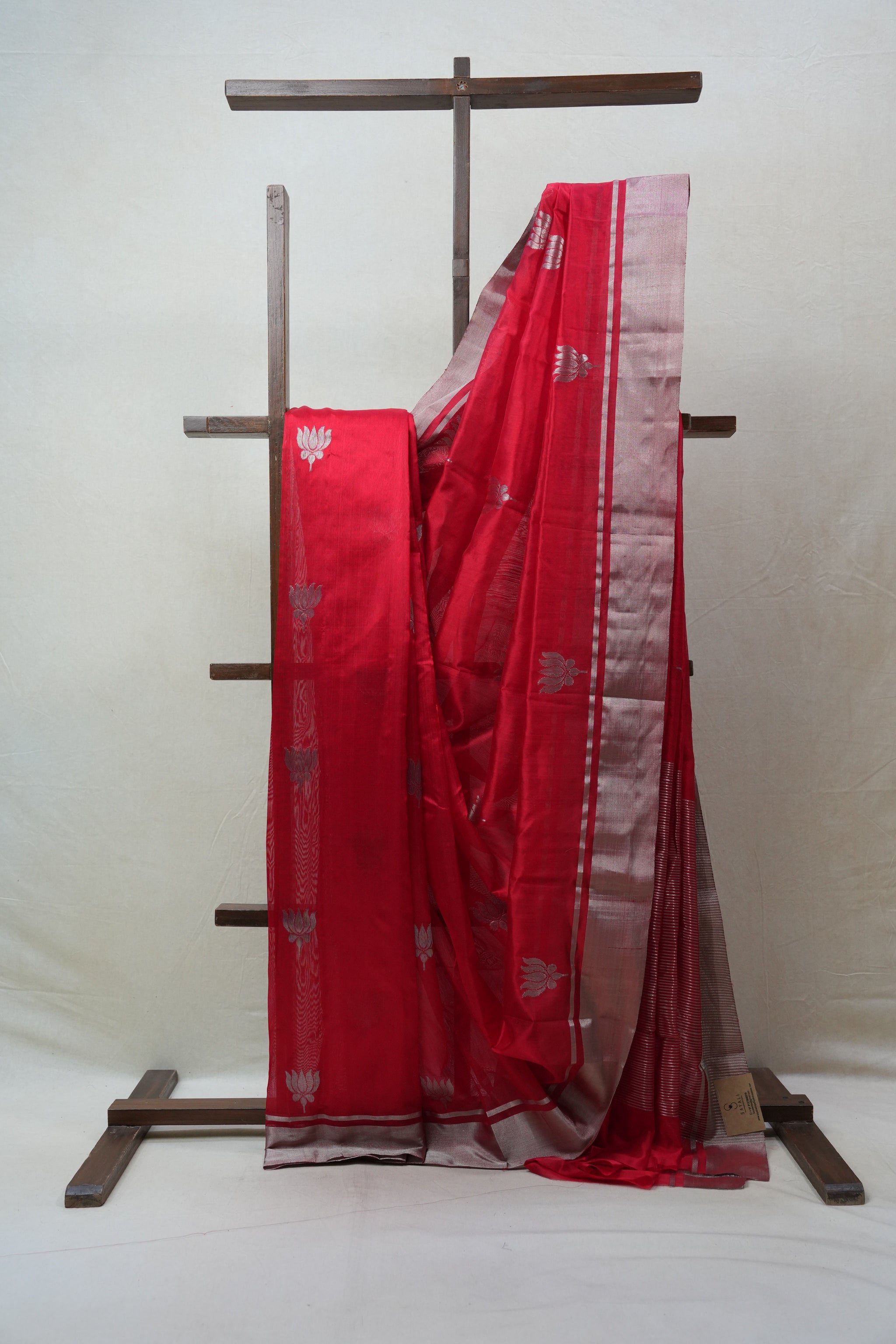 Work - Chanderi silk saree with red body, gold buti motifs, and elegant zari border.