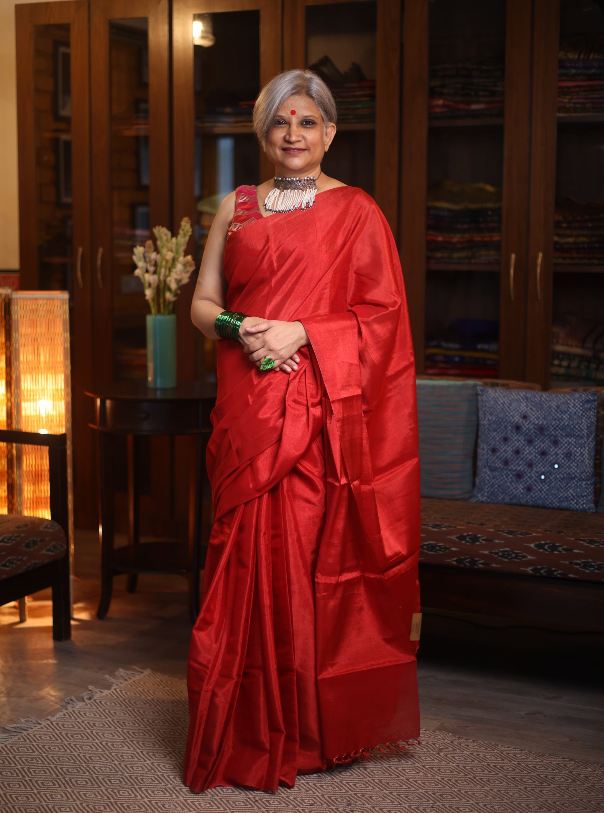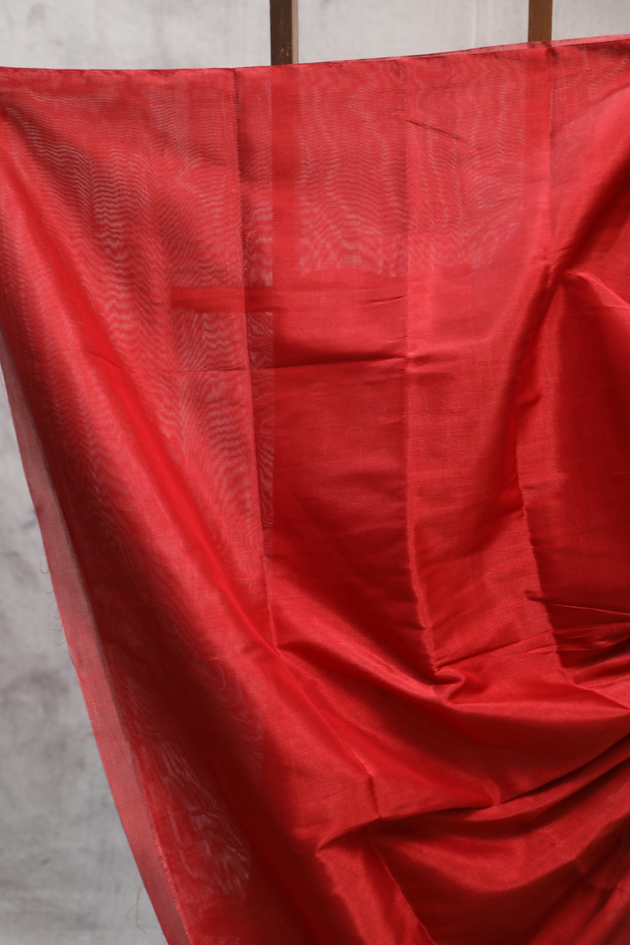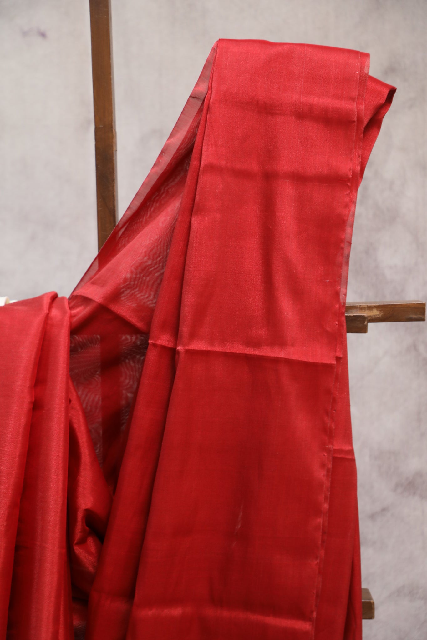 Work - This handloom red chanderi tissue silk saree is overall plain.