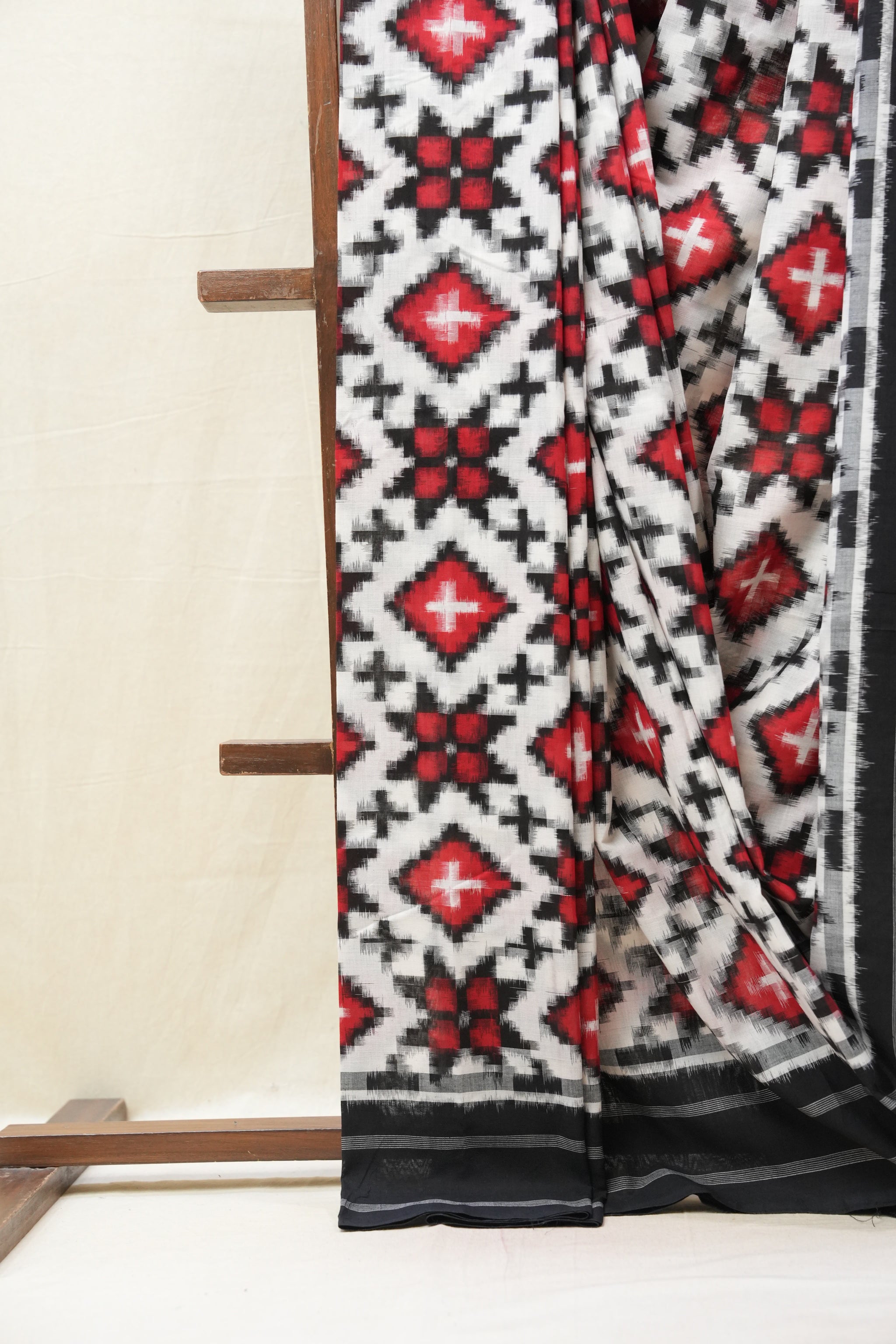 Red-White Pochampalli Cotton Ikat Saree - SRRWPCIS497