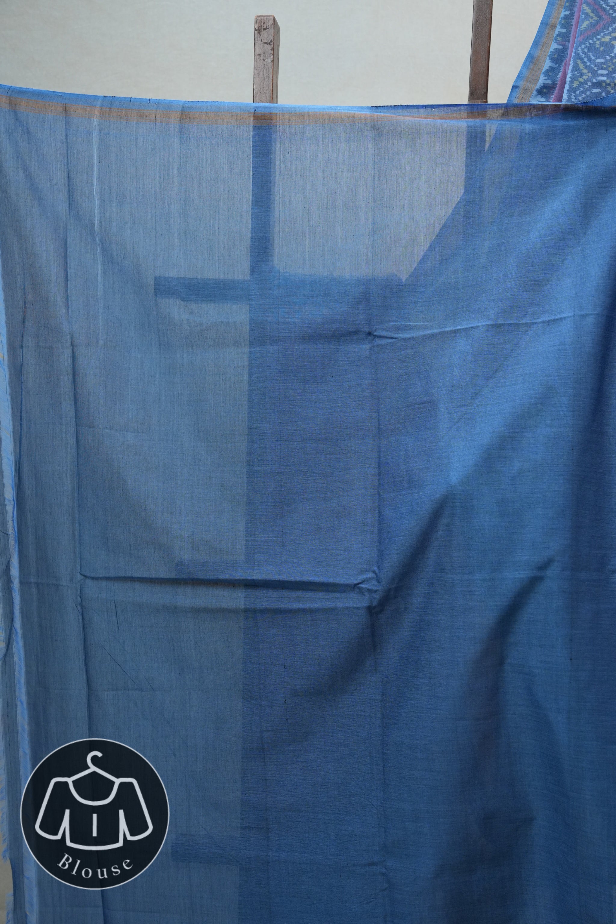 Work - A vibrant Rajkot Patola saree with bold blue tones and intricately woven borders, blending tradition with festive elegance.
