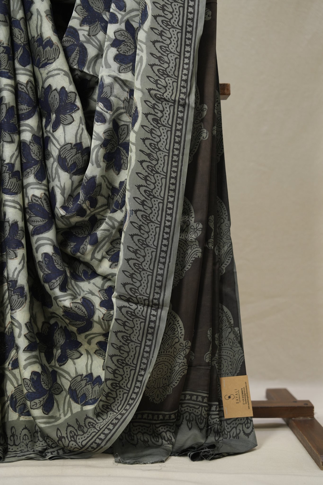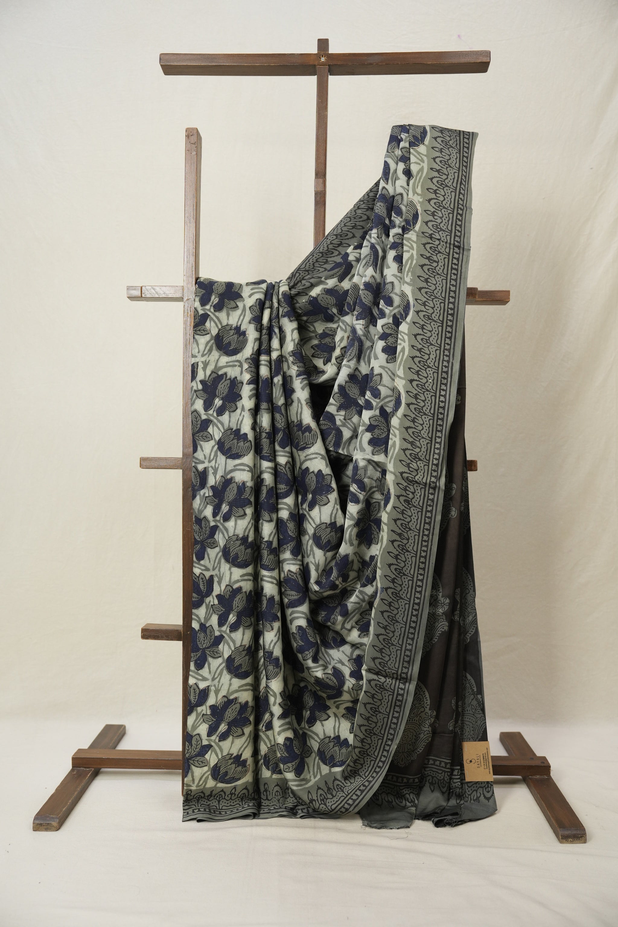 Cream Blue HBP Modal Silk Saree - SRCBMSS515
