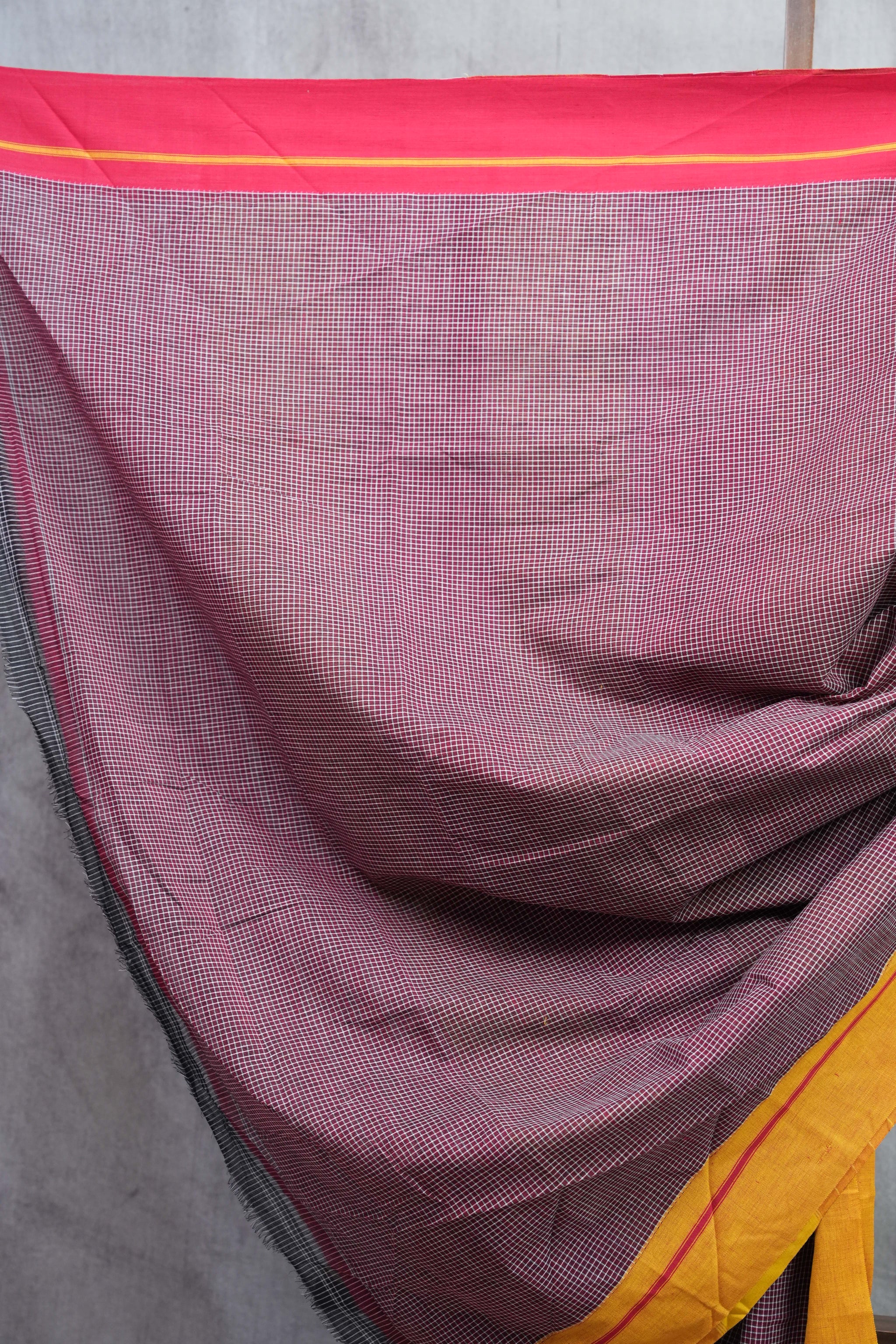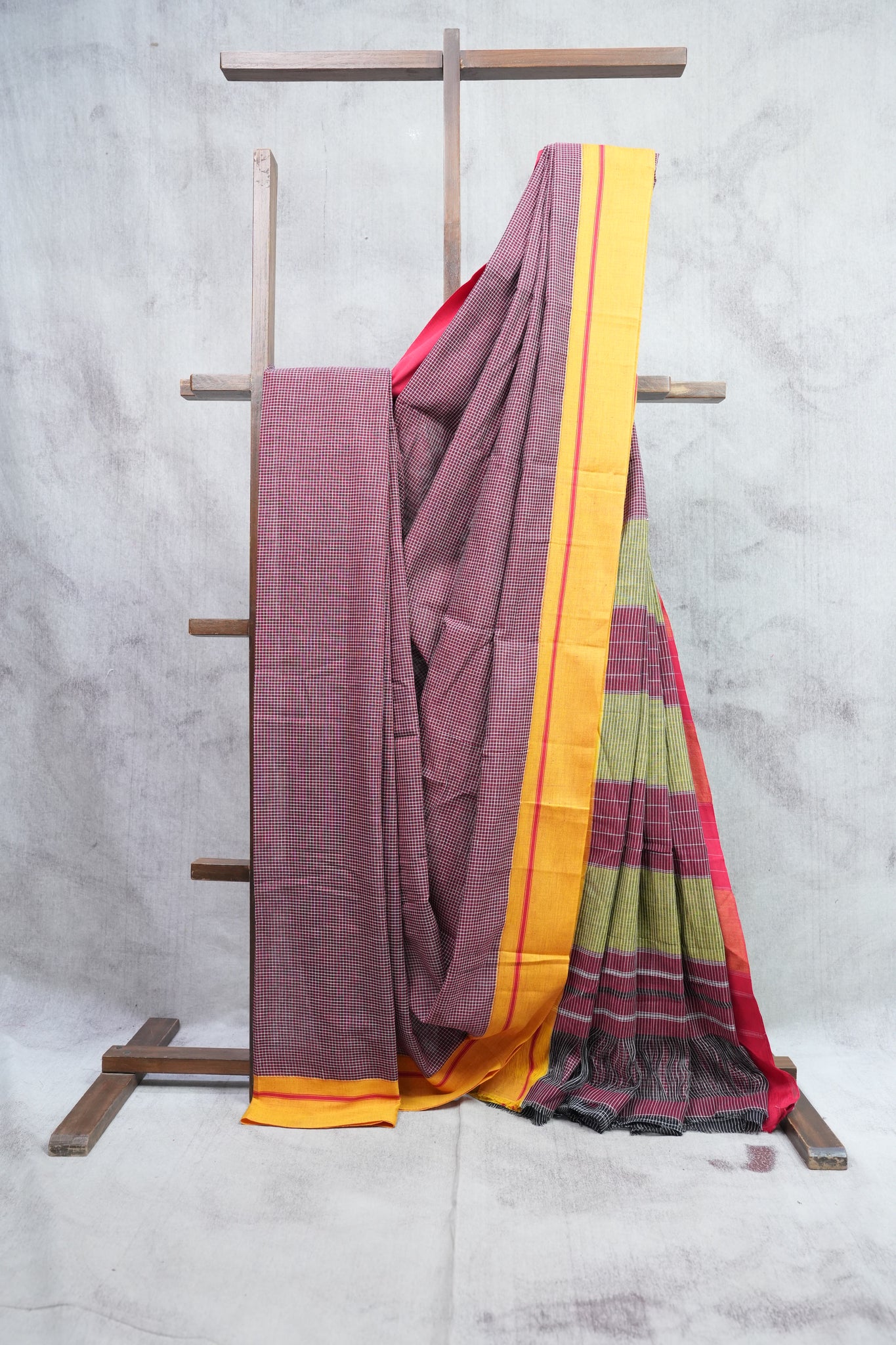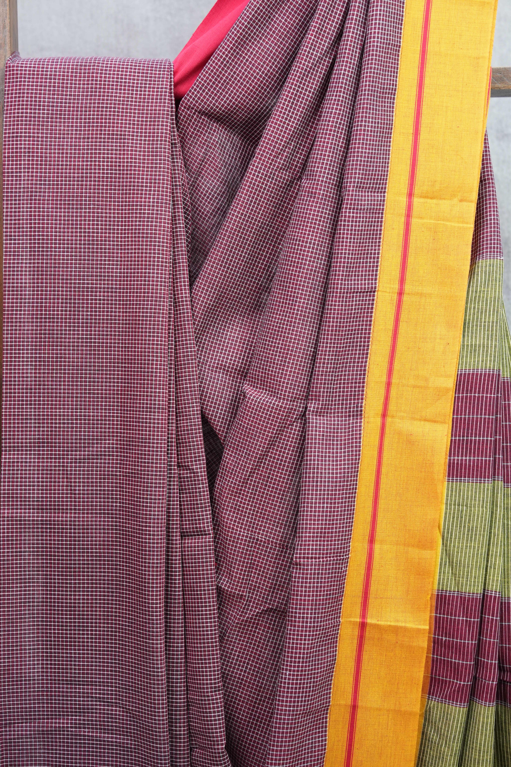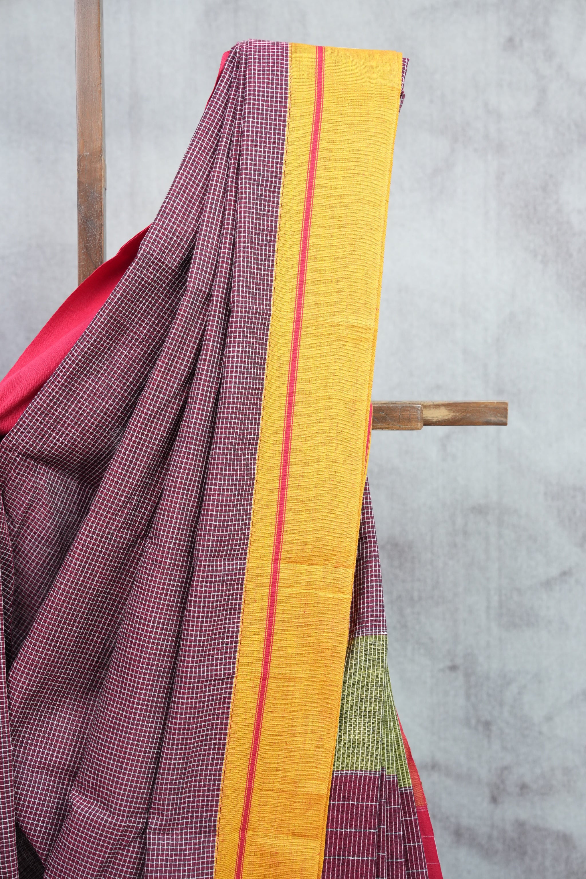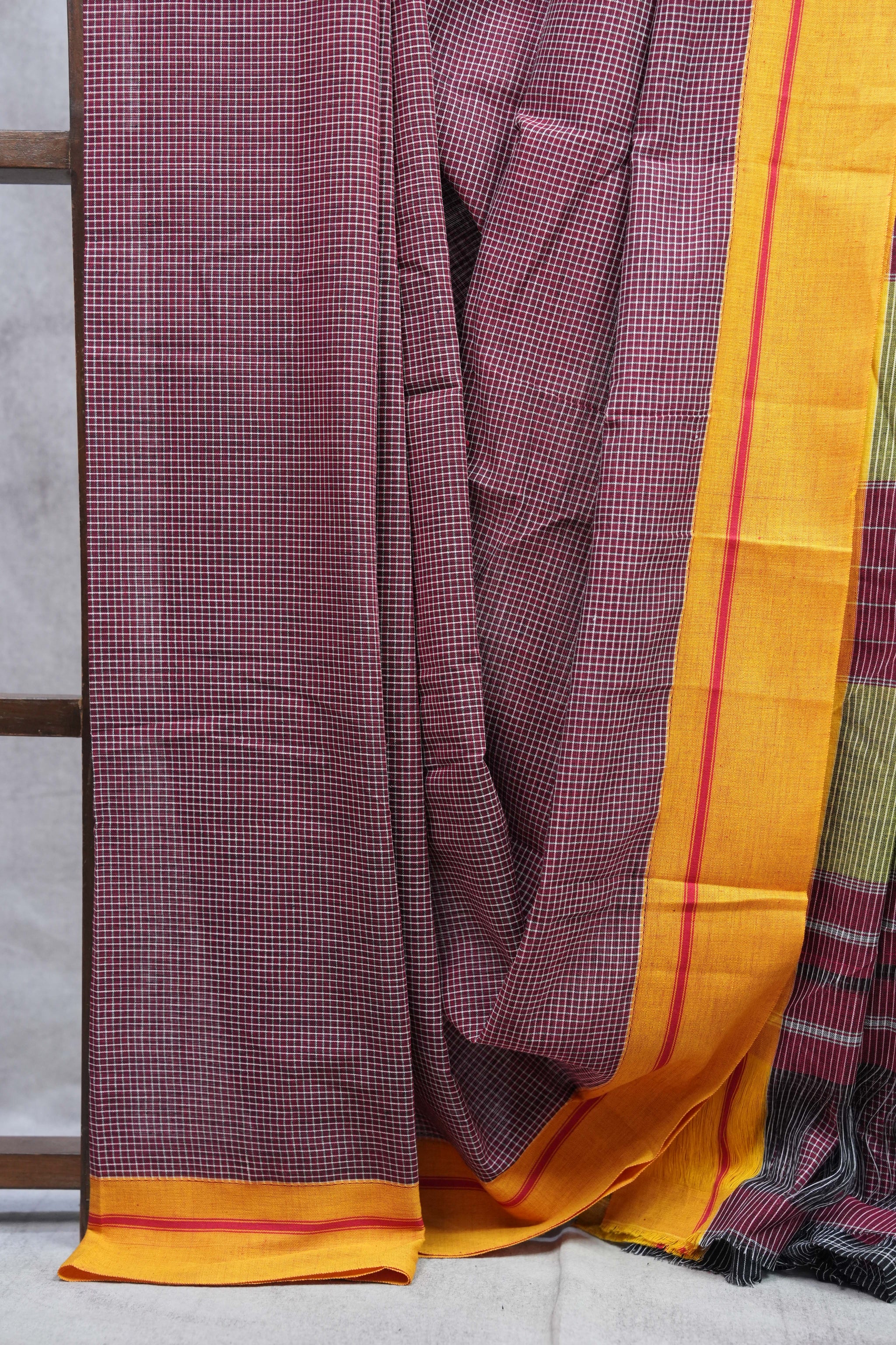Maroon Small Checks Cotton Patteda Anchu Saree - SRMPAS156