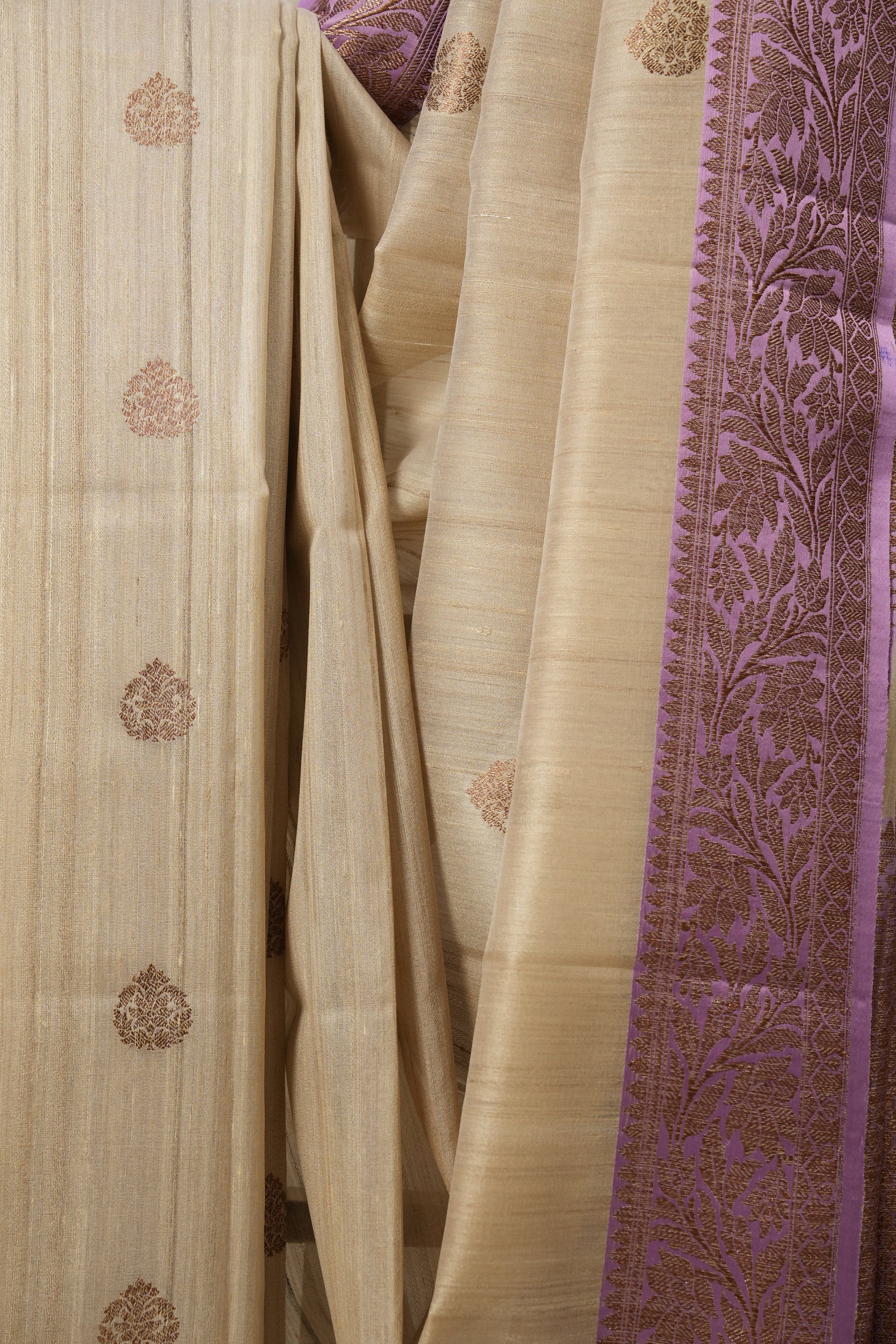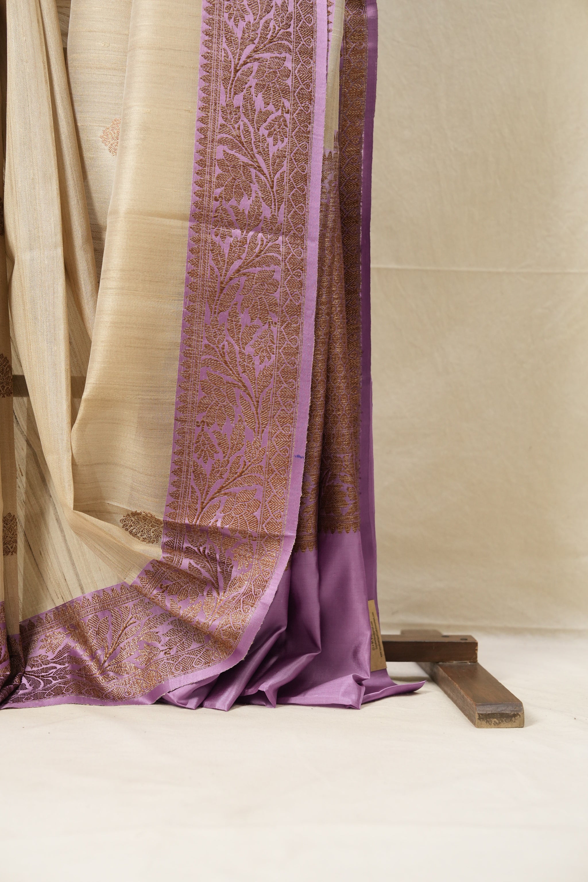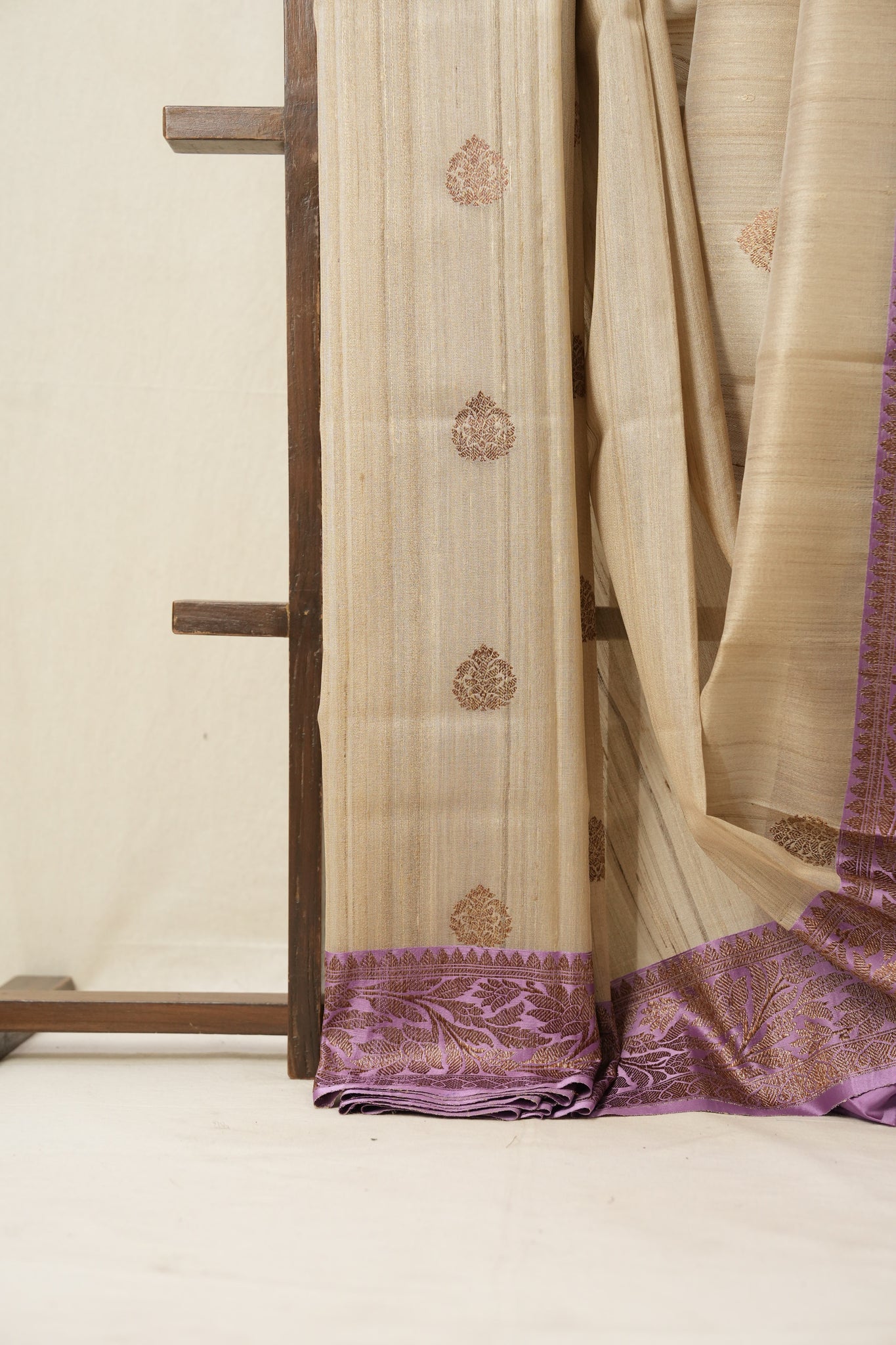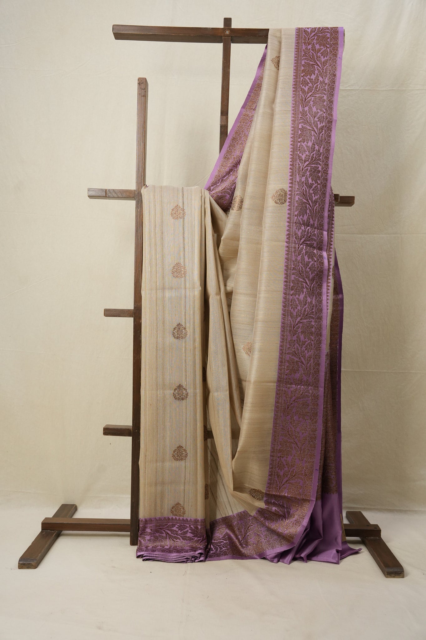 Cream Lavender Banarasi Silk Saree - SRCLBSS740