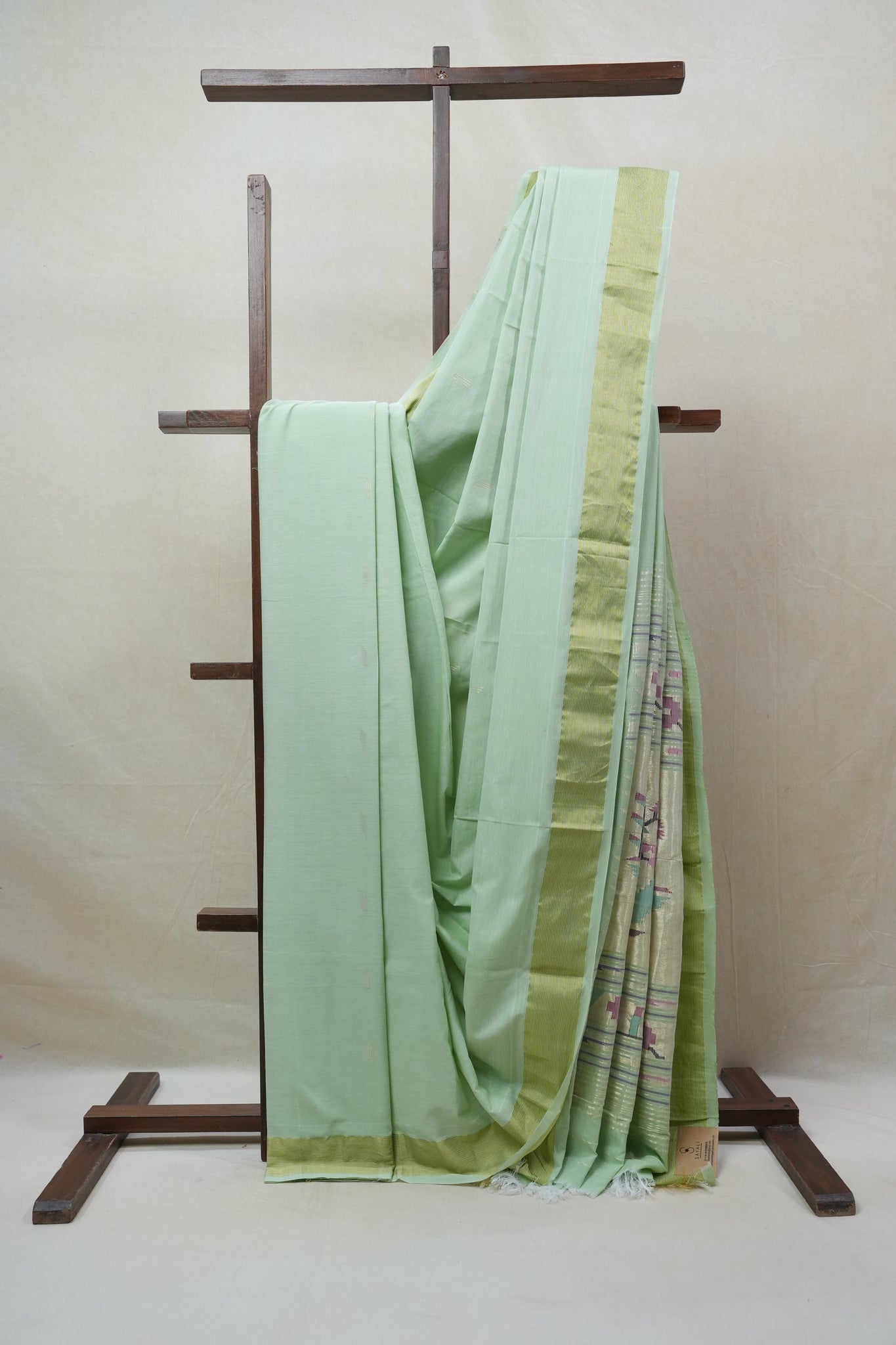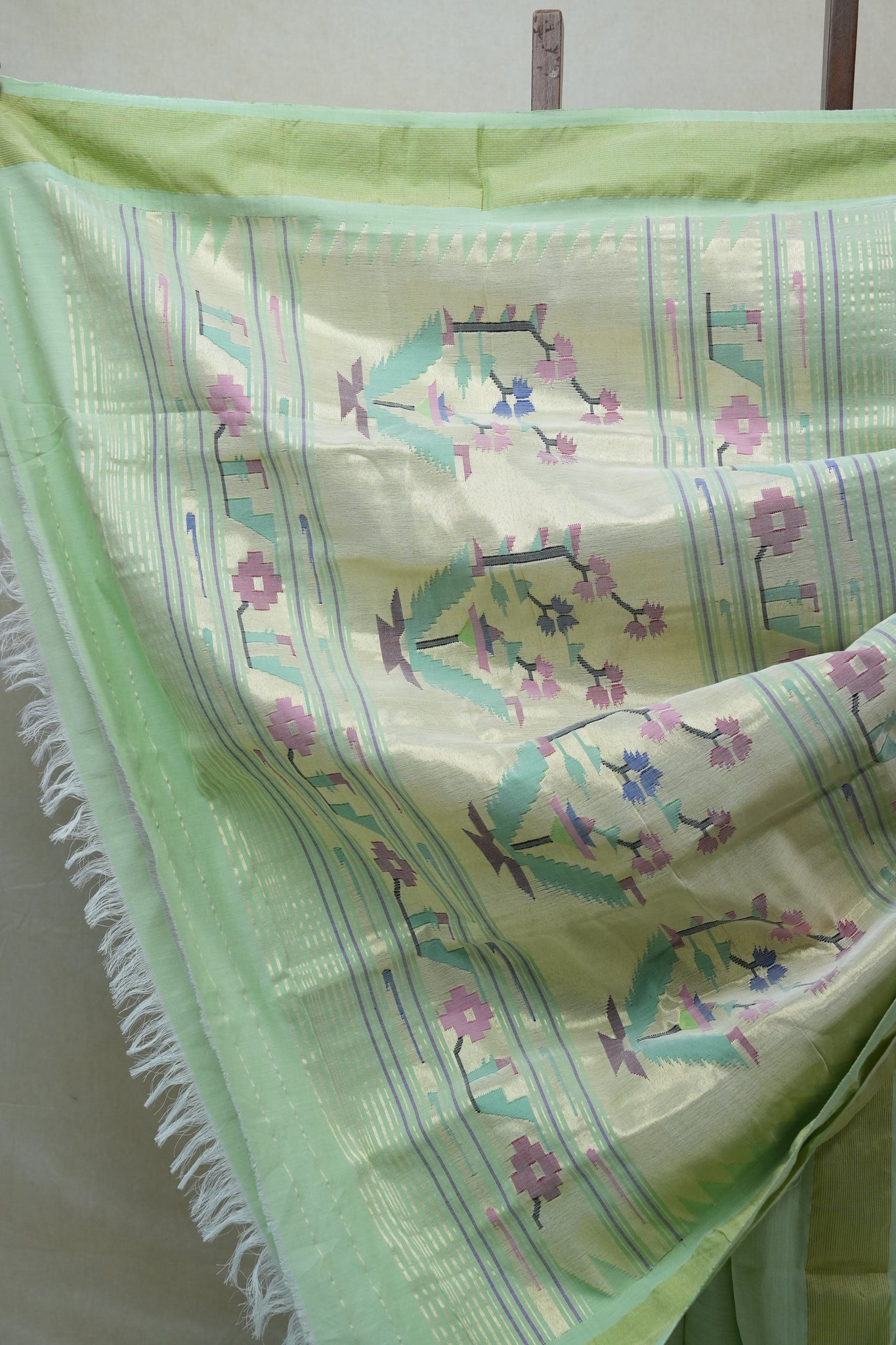 Mint Green Cotton Paithani Saree - SRMGCPS537