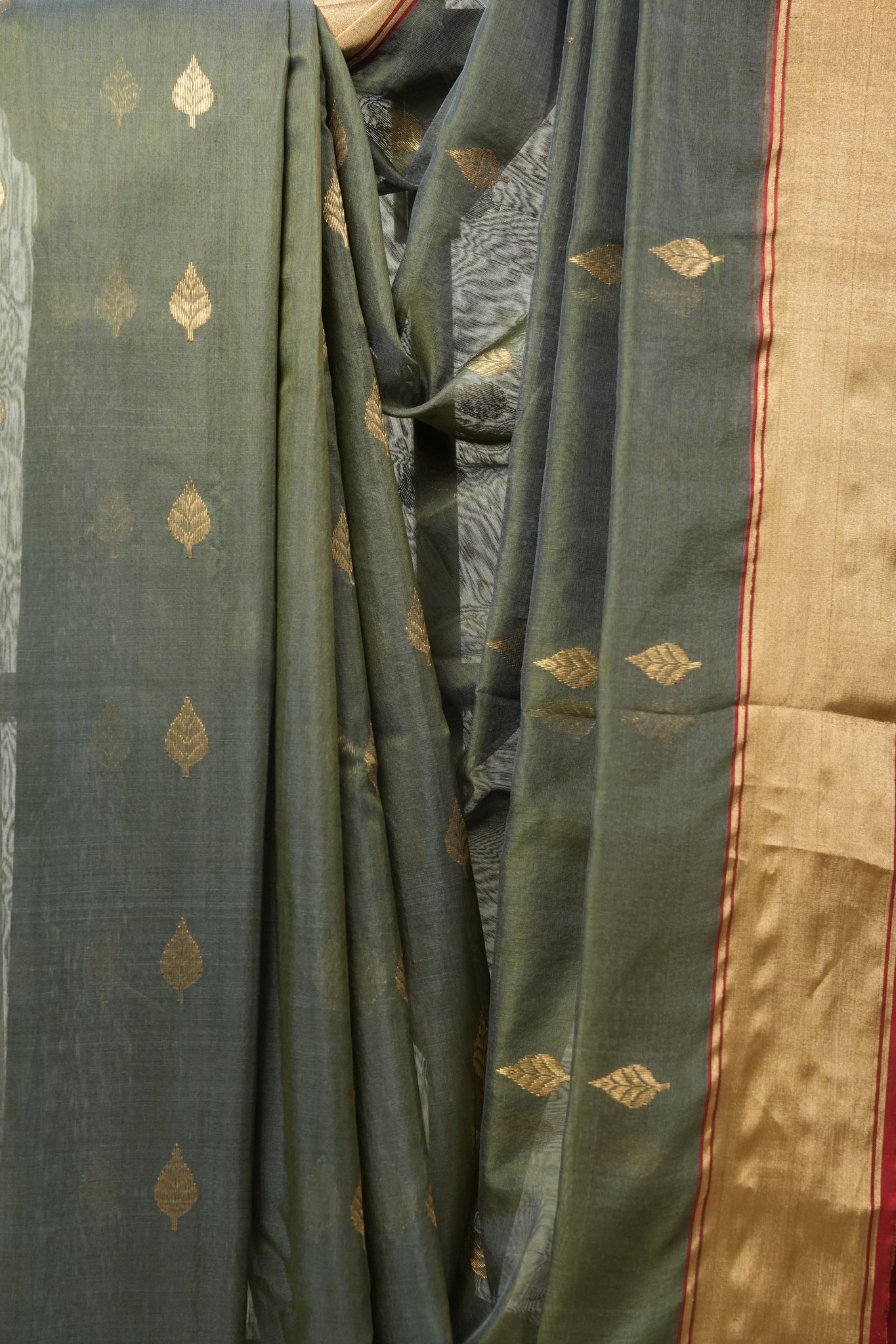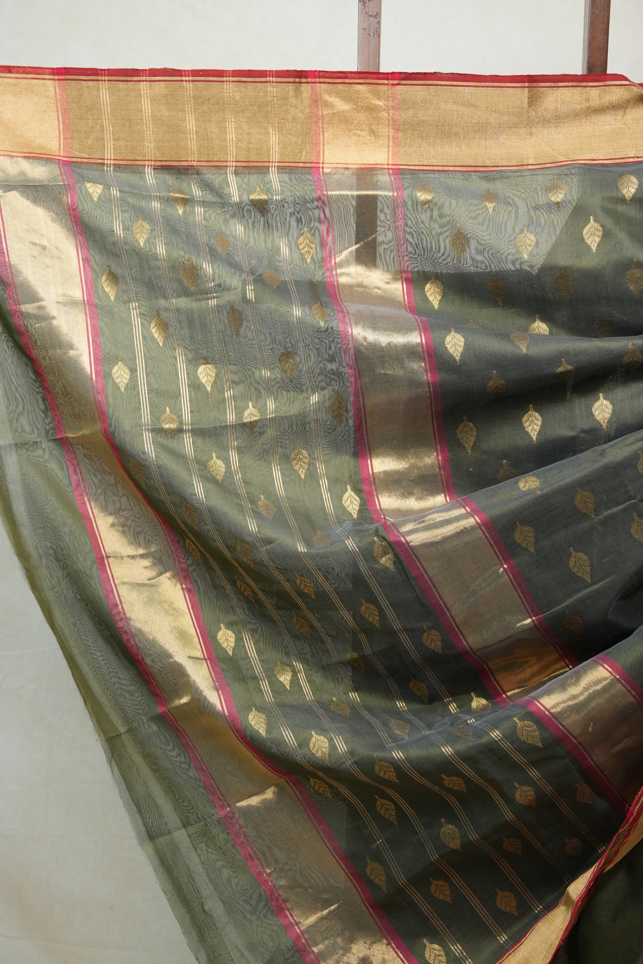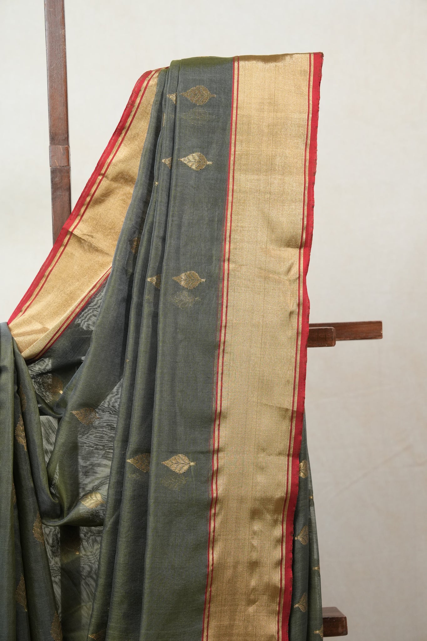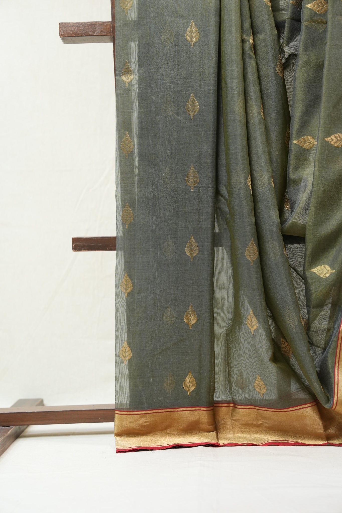 Olive Green Chanderi Cotton Silk Saree - SROGCSS325