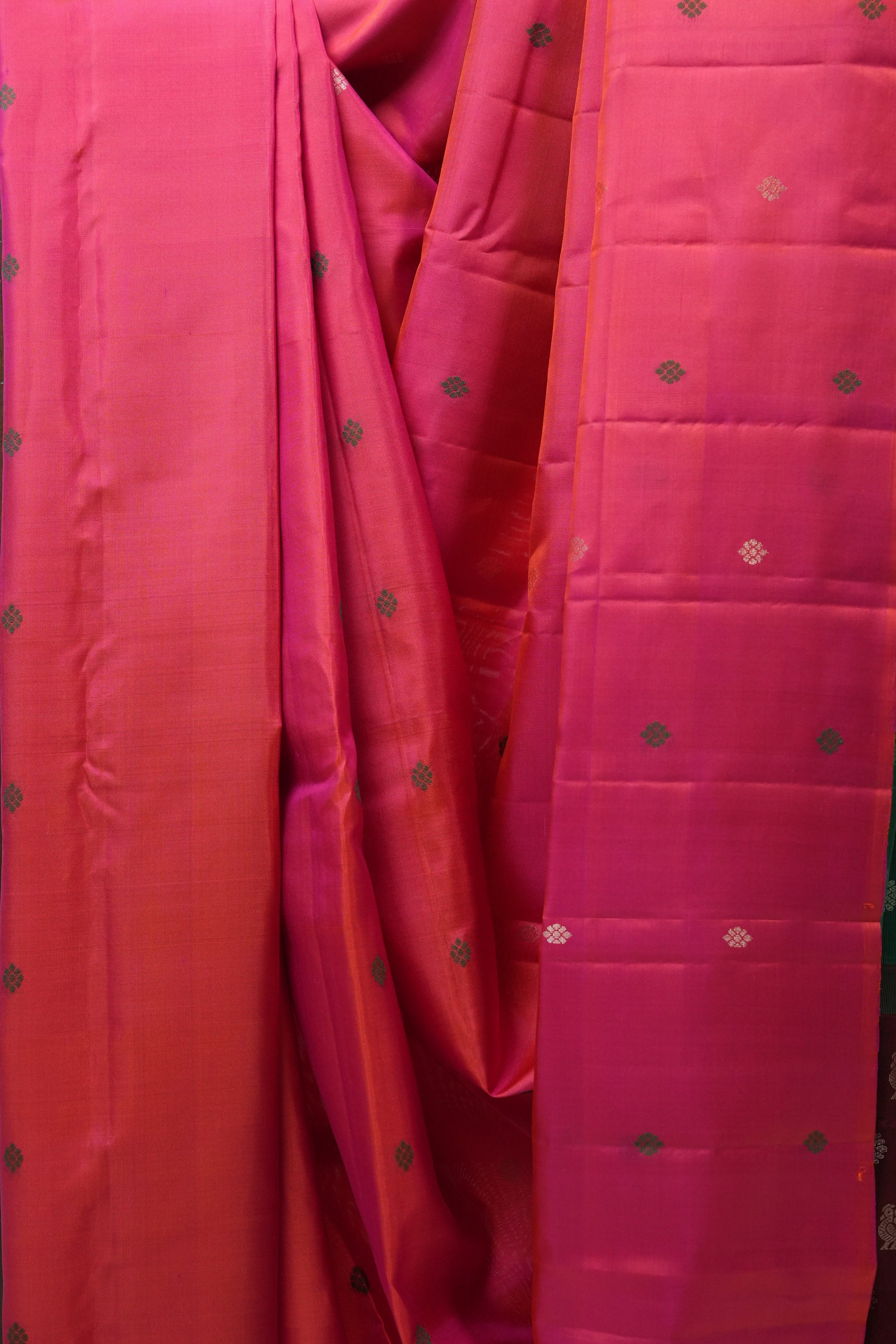 Work - This Kanjeevaram silk saree features a vibrant small butta design on body, paired with a contrasting pallu and border.