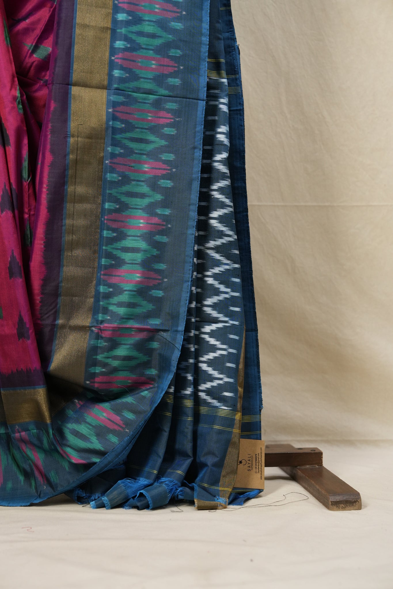 Two Tone Pink Pochampalli Silk Ikat Saree - SRTTPPSIS169