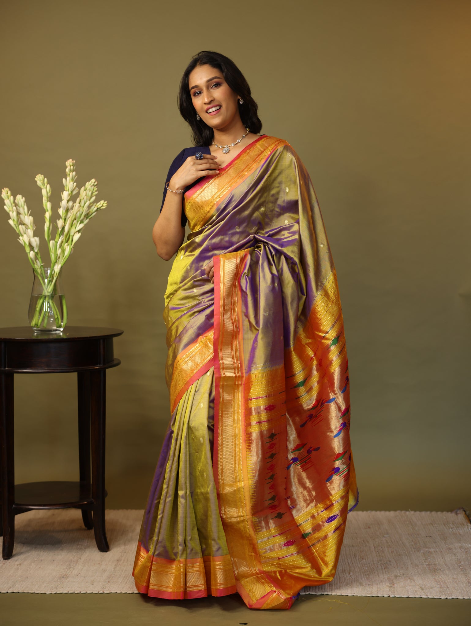 Two Tone Purple Silk Paithani Saree - SRTTPSPS628