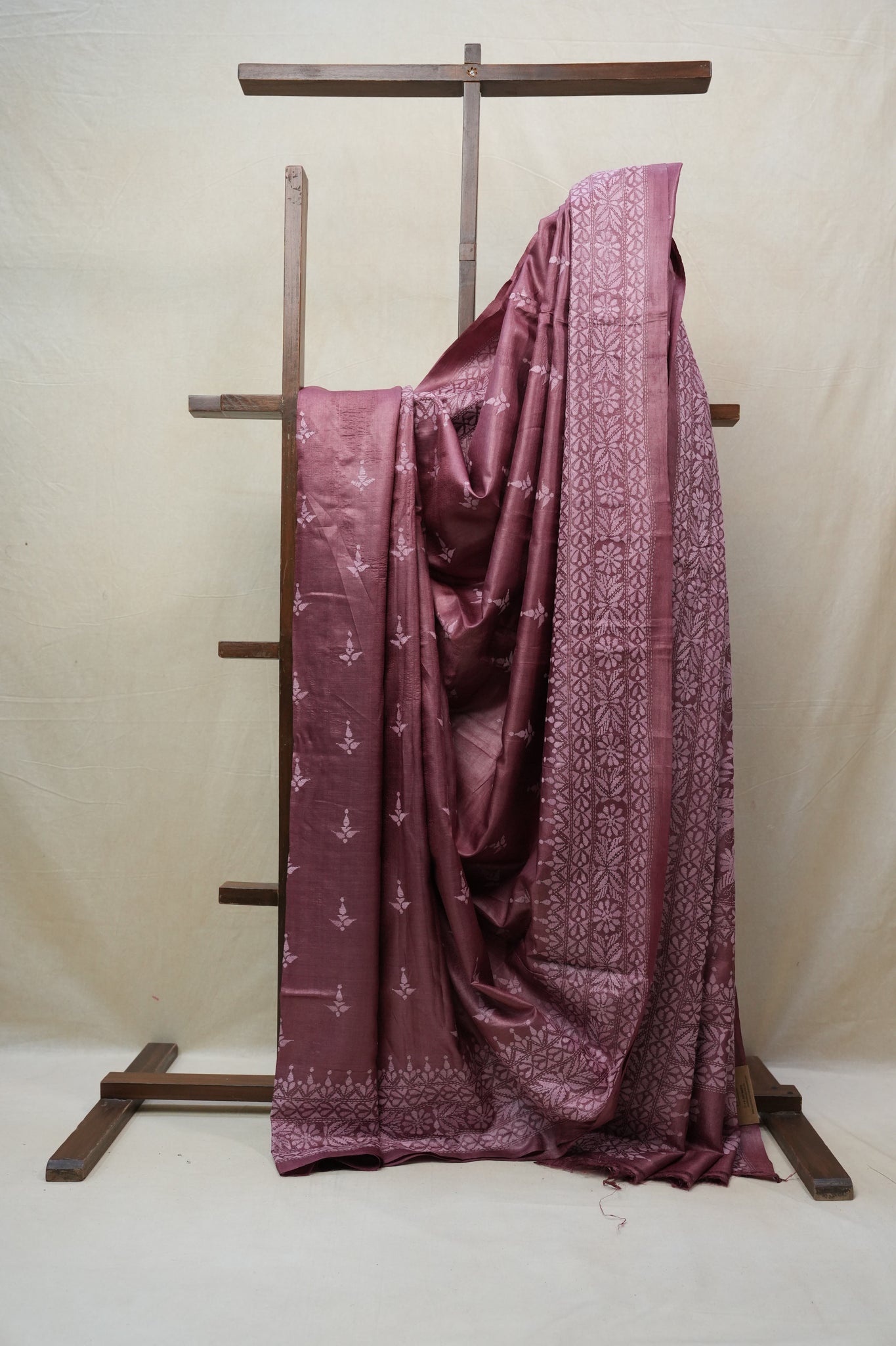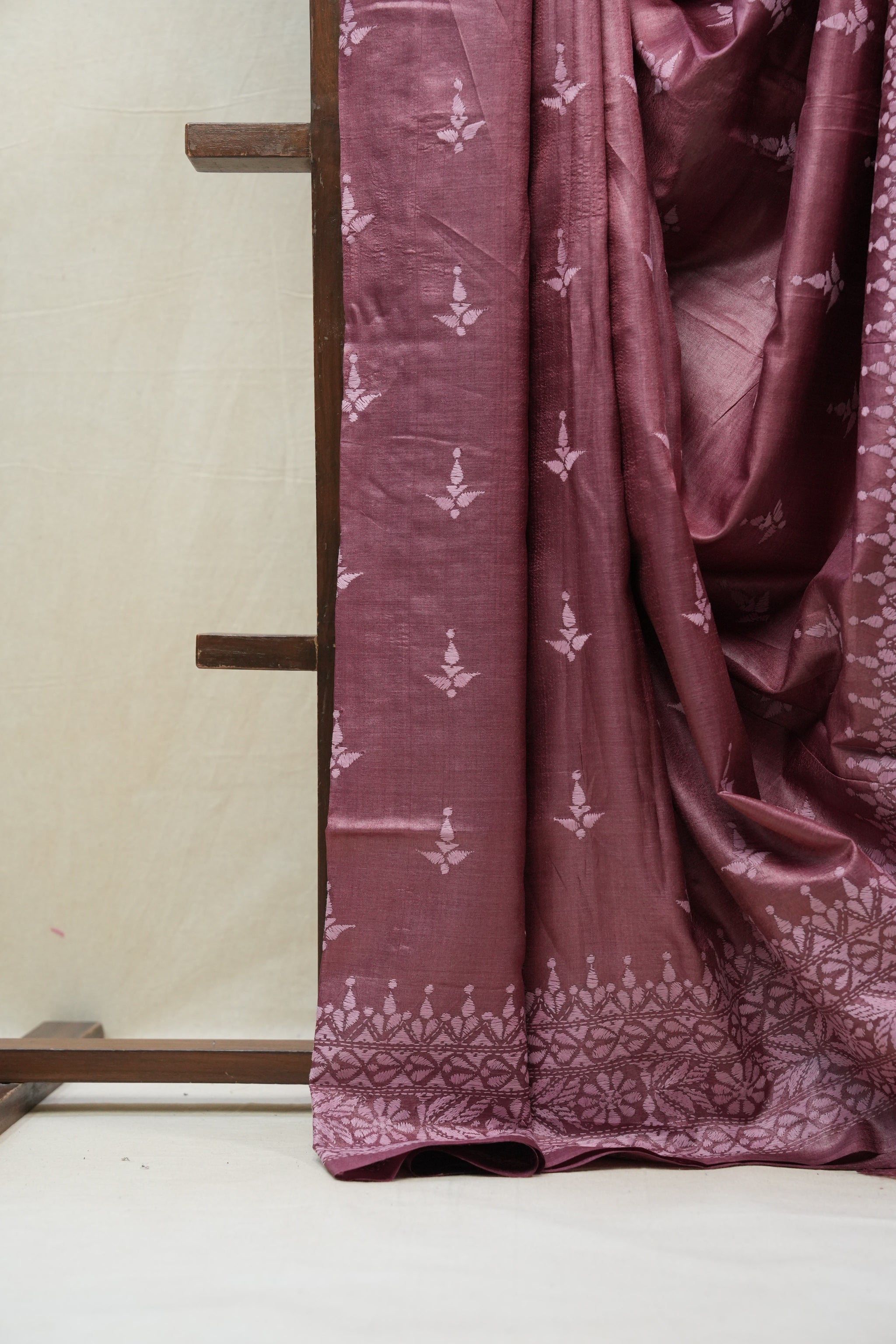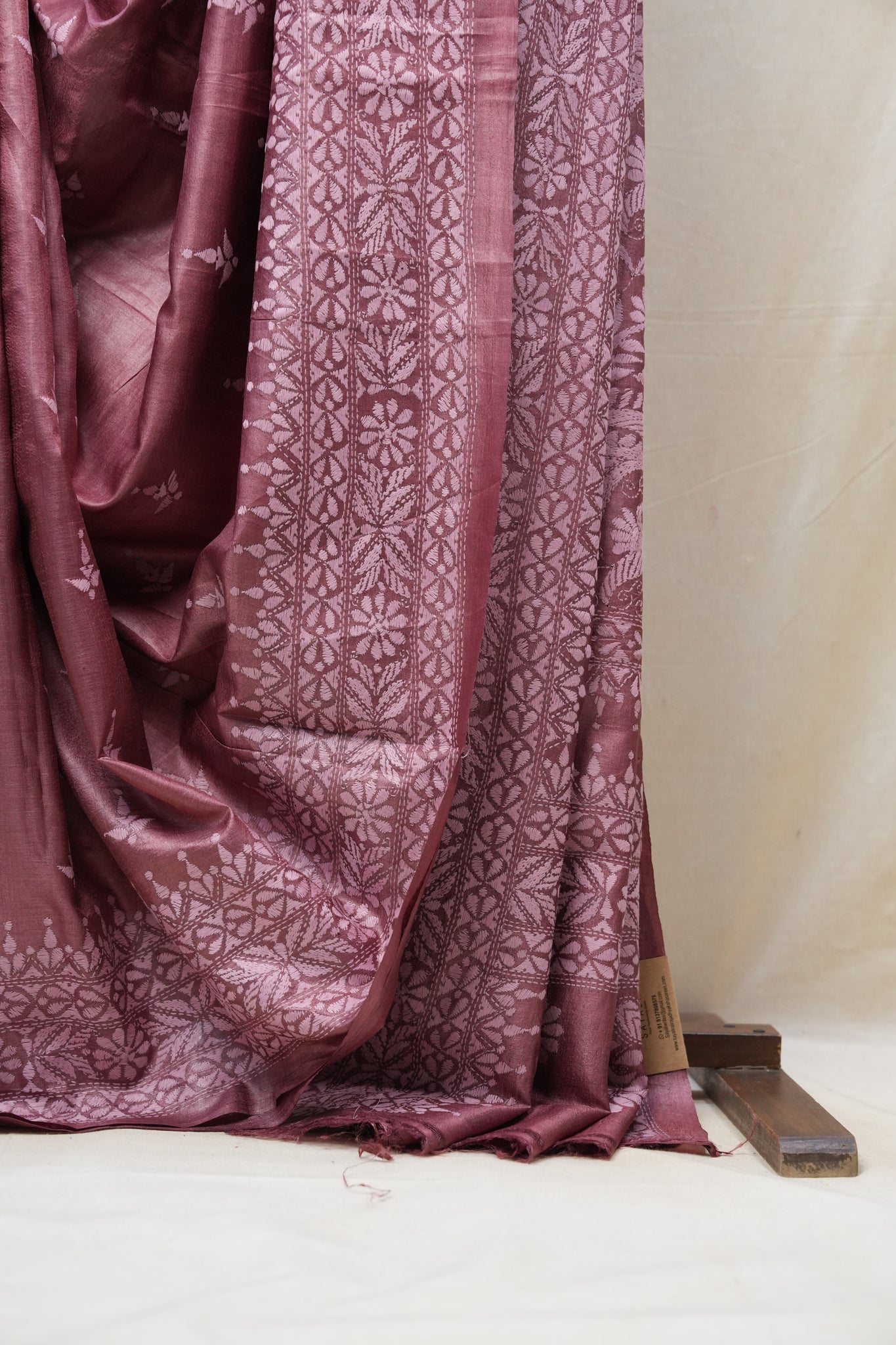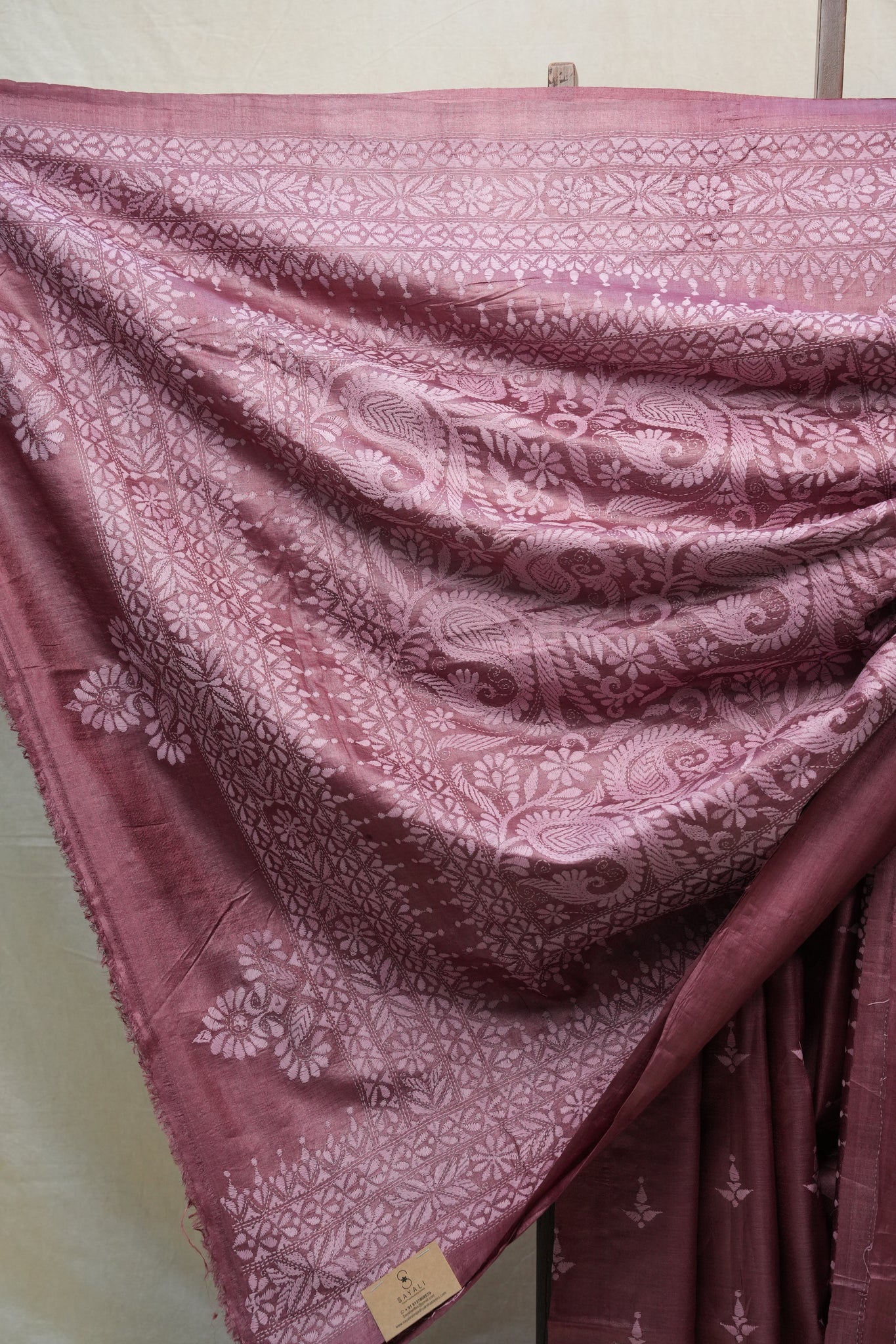 Onion Pink Tussar Silk Saree - SROPTSS1410
