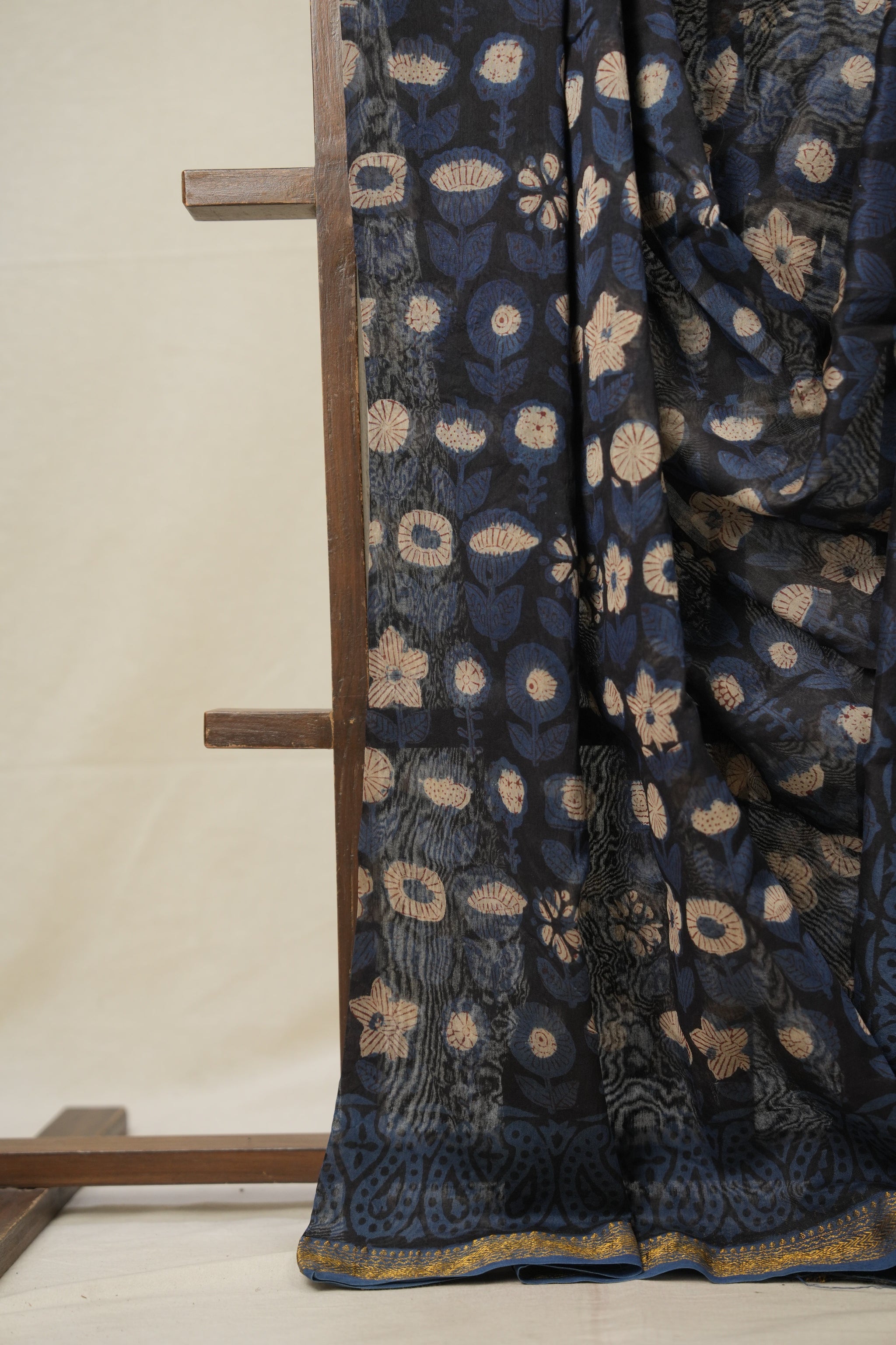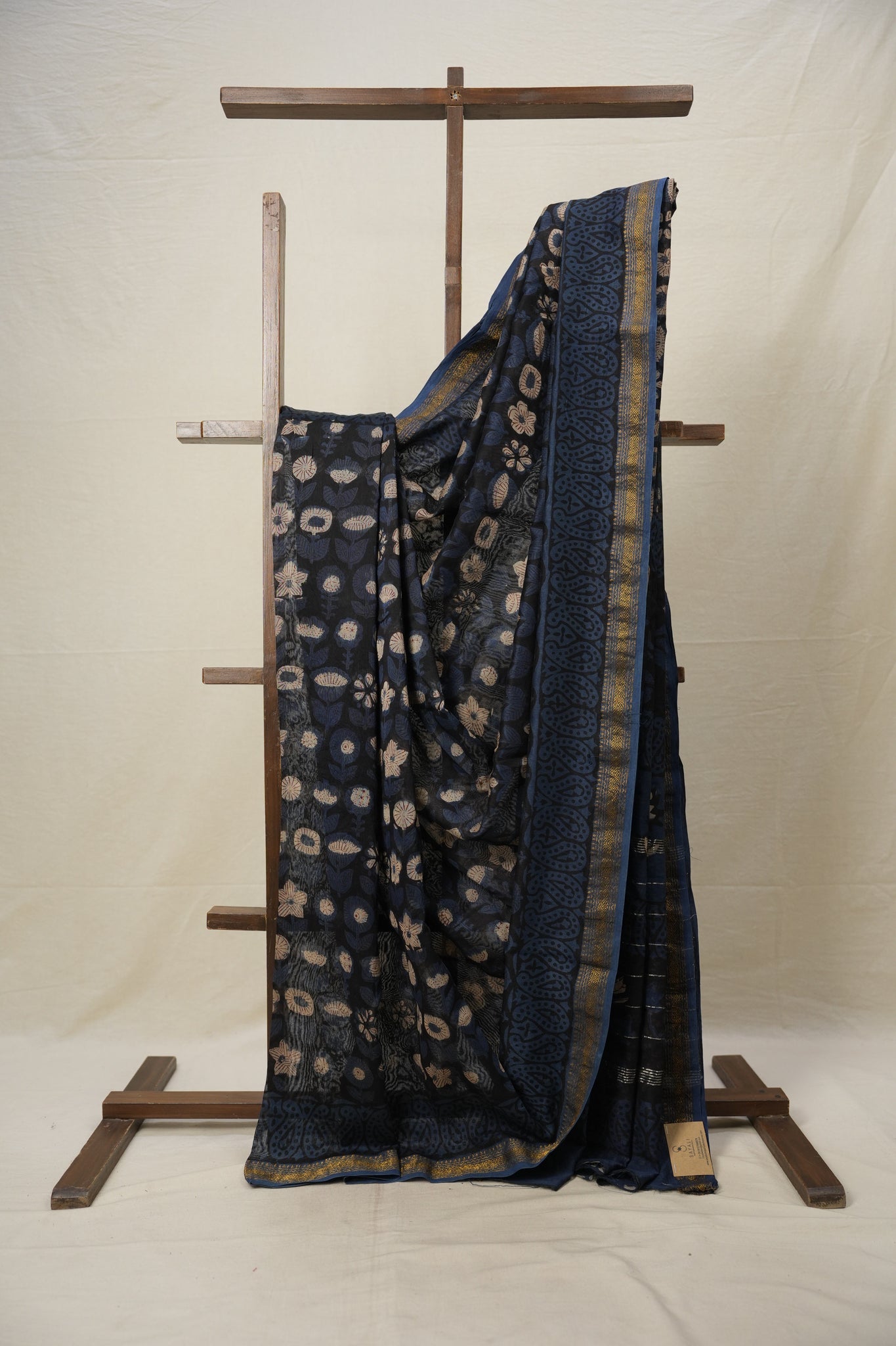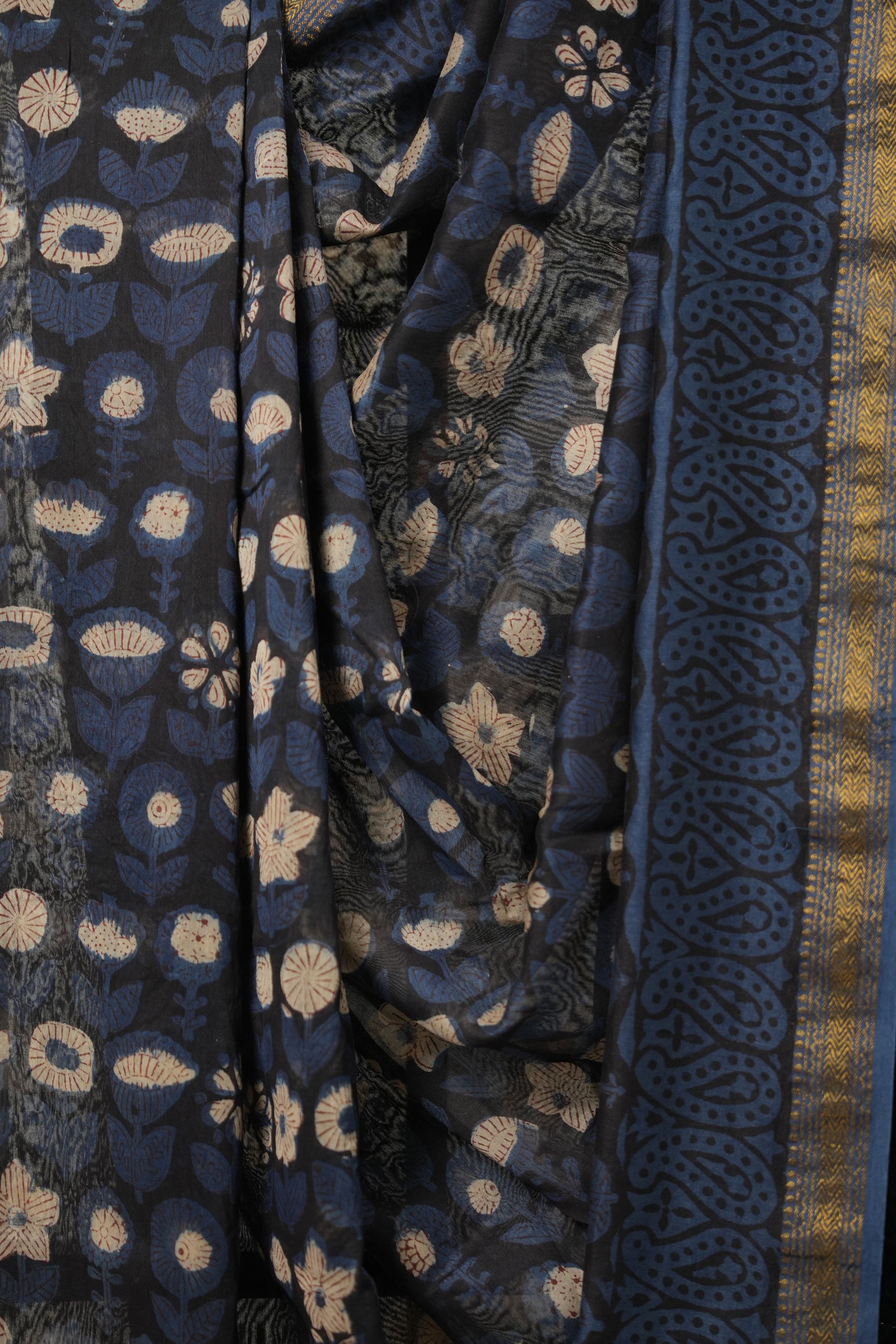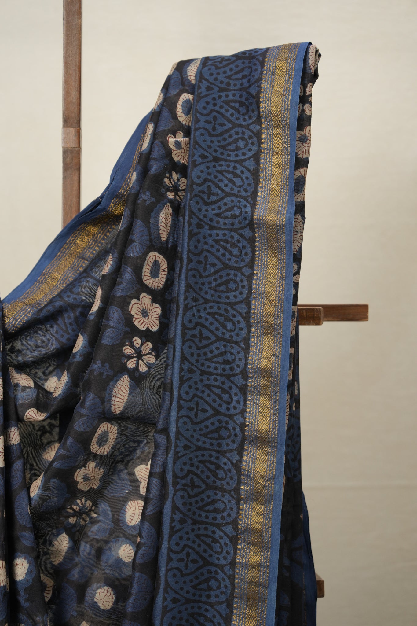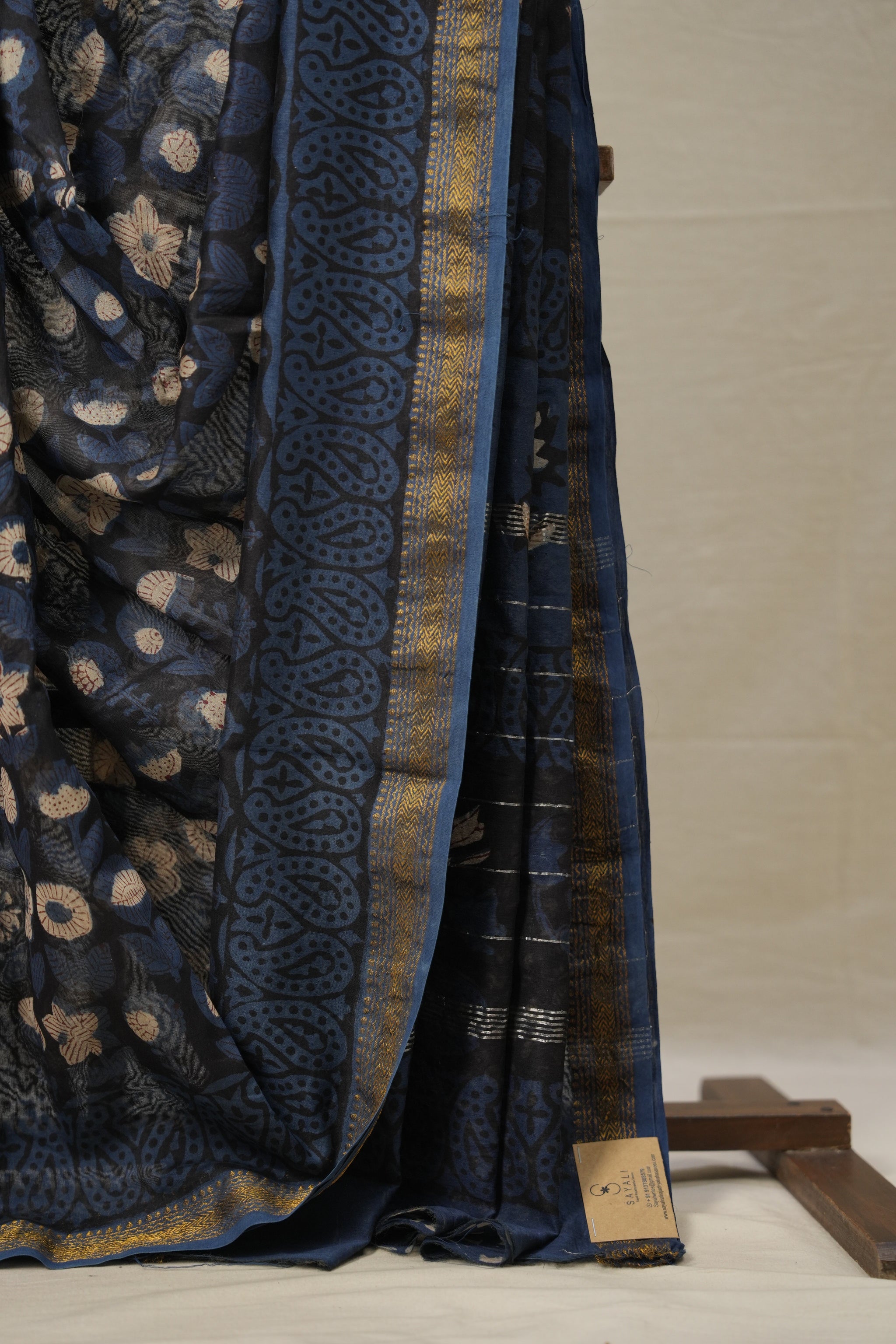 Black HBP Cotton Silk Saree With Maheshwari Border - SRBCSS1281