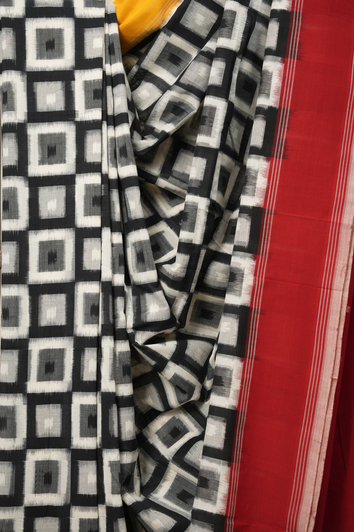 Black- White Blocks Pochampalli Cotton Ikat Saree - SRBWBPCIS581