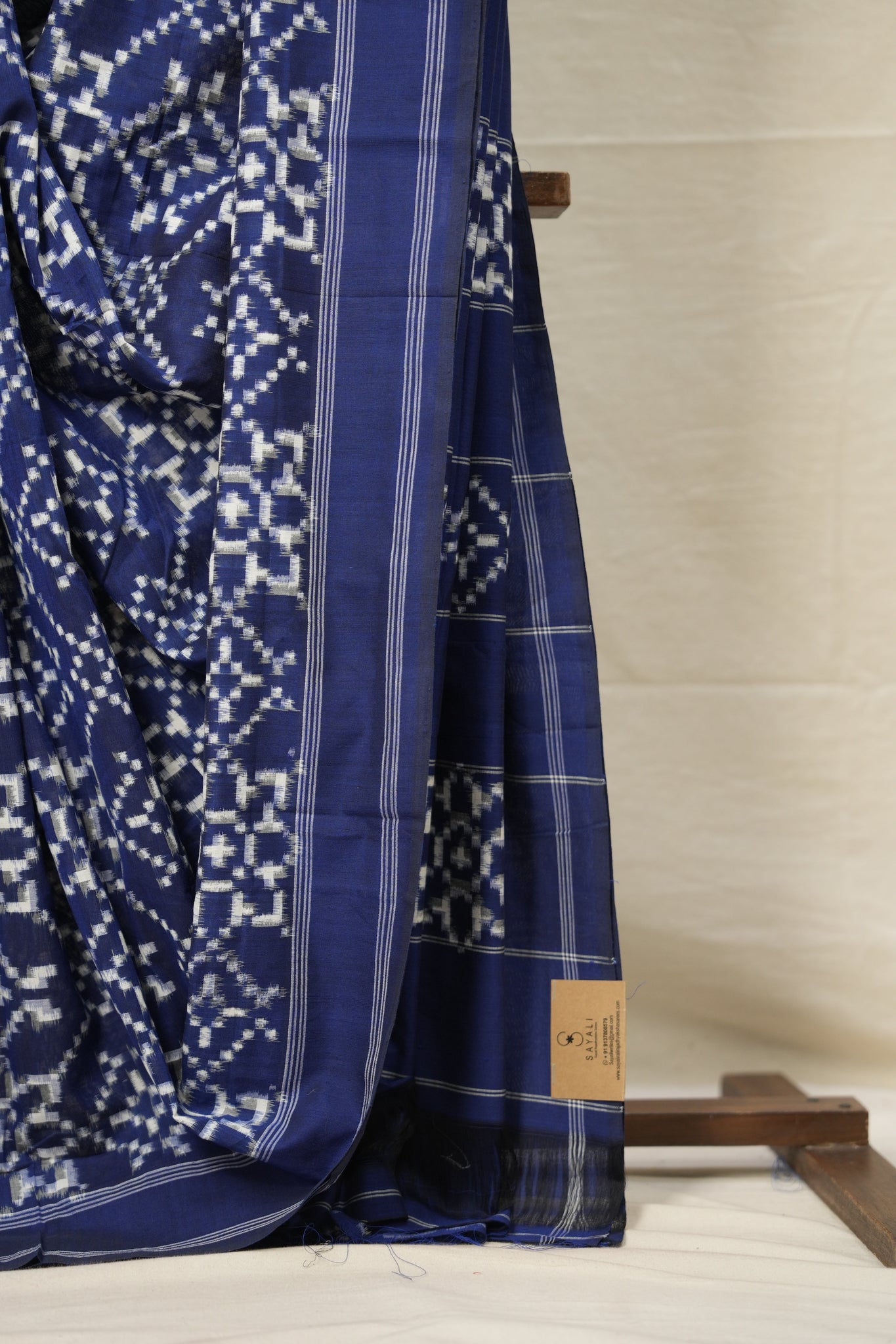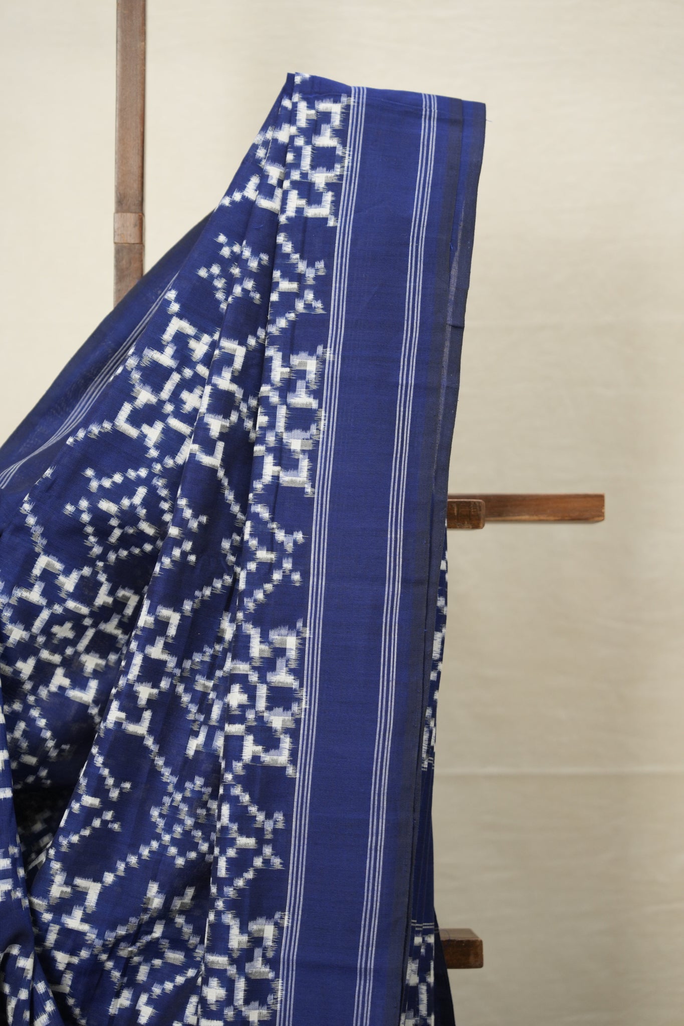 Blue - White Pochampalli Cotton Ikat Saree - SRBWPCIS599