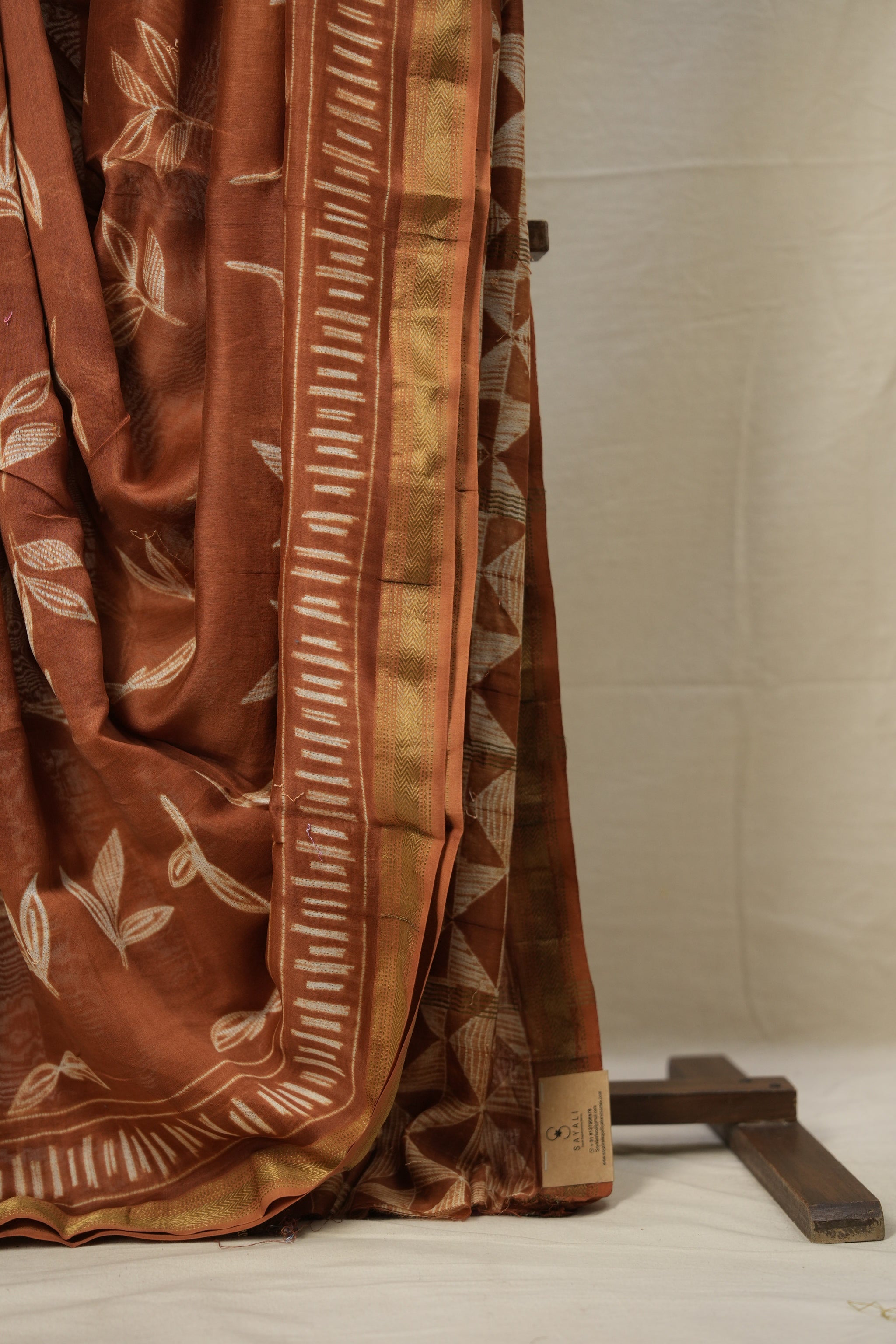 Brown HBP Cotton Silk Saree With Maheshwari Border - SRBCSS1265