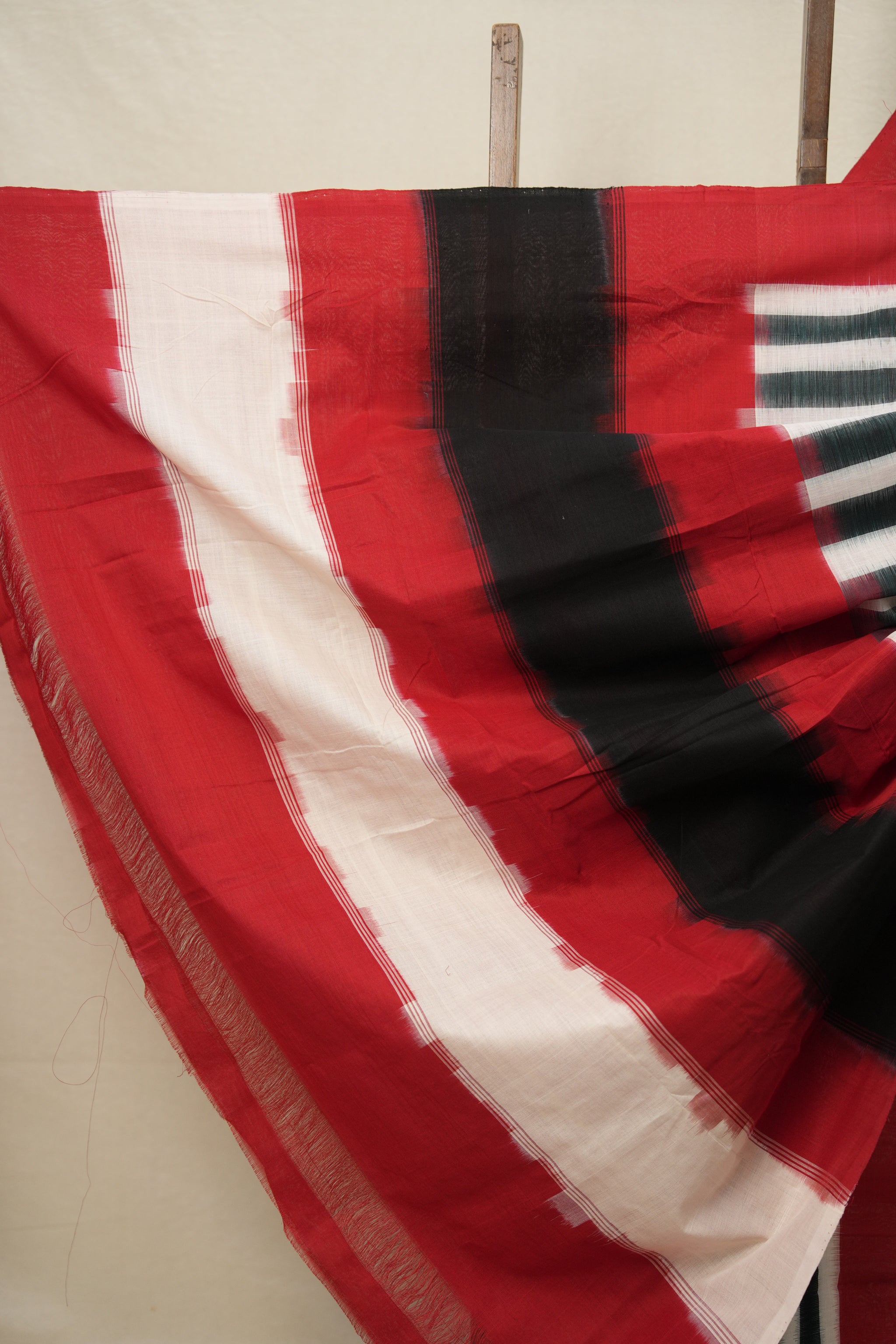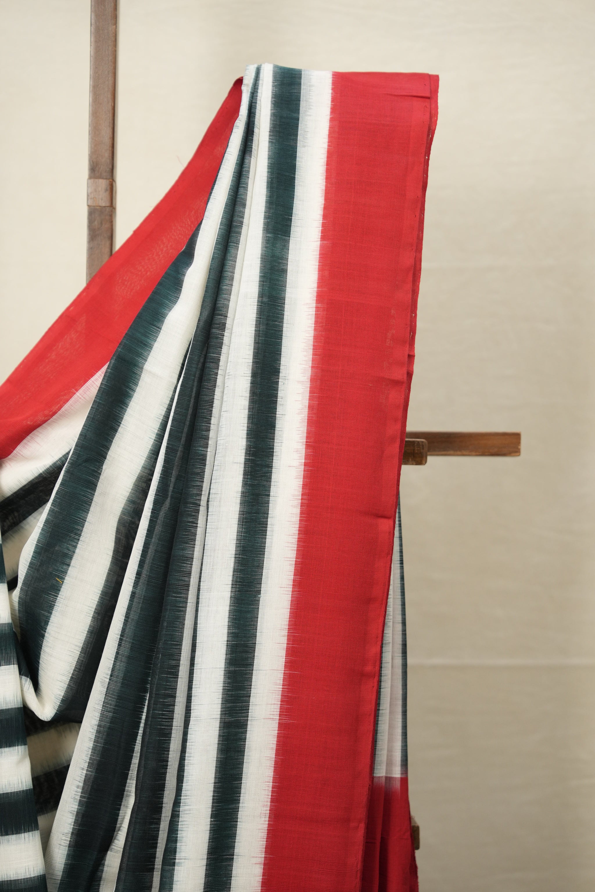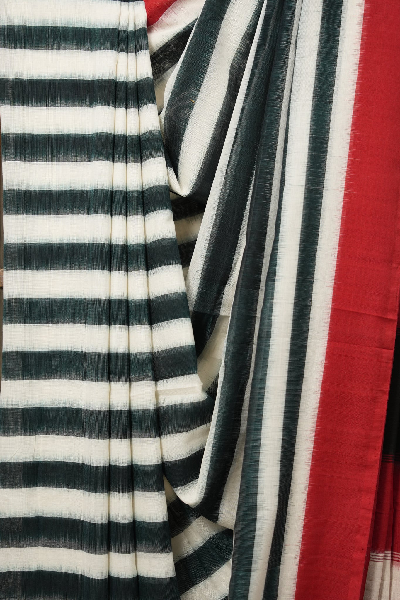 Green White Stripes Pochampalli Cotton Ikat Saree - SRGWSPCIS605