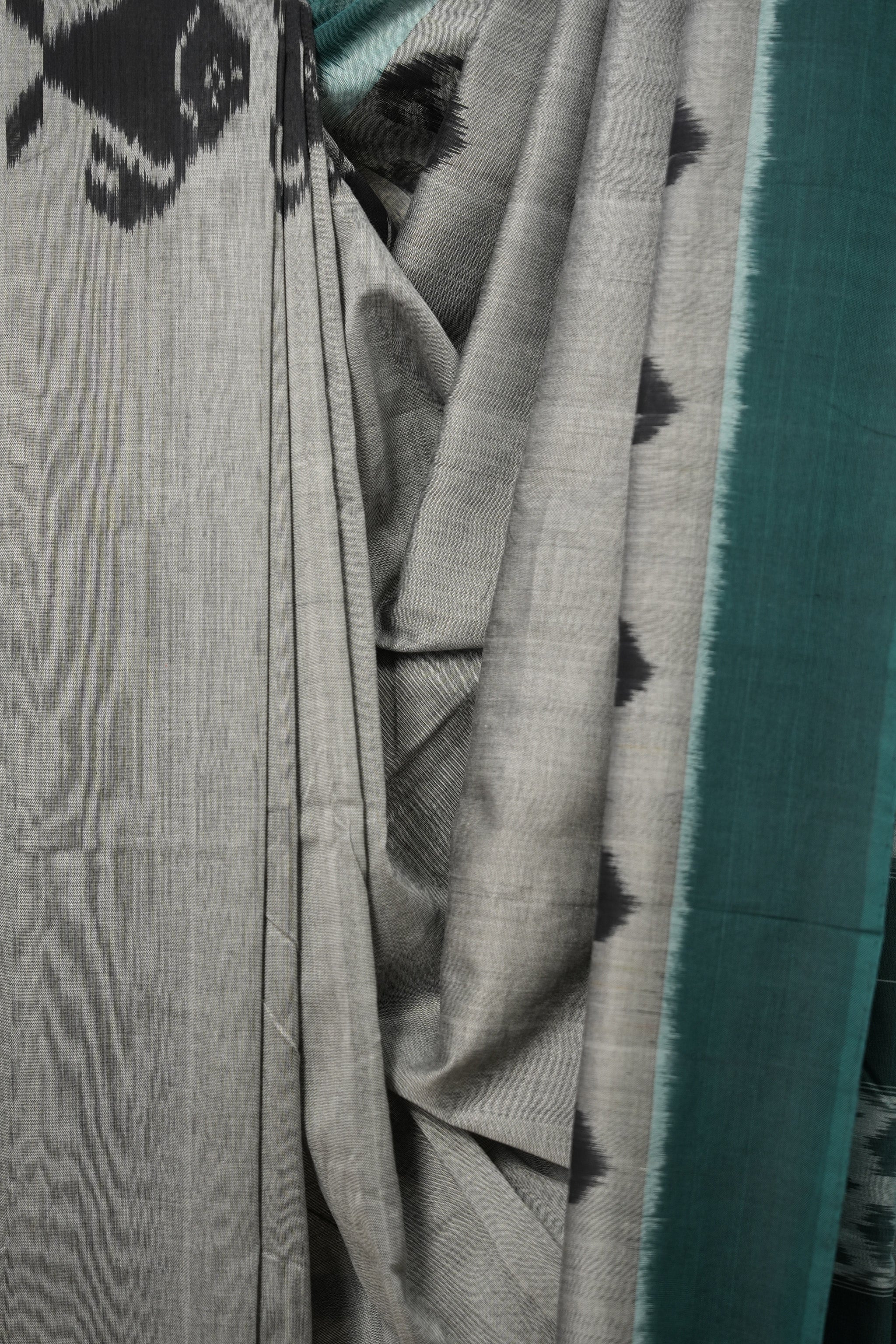 Grey-Black Pochampalli Cotton Ikat Saree - SRGBPCIS611