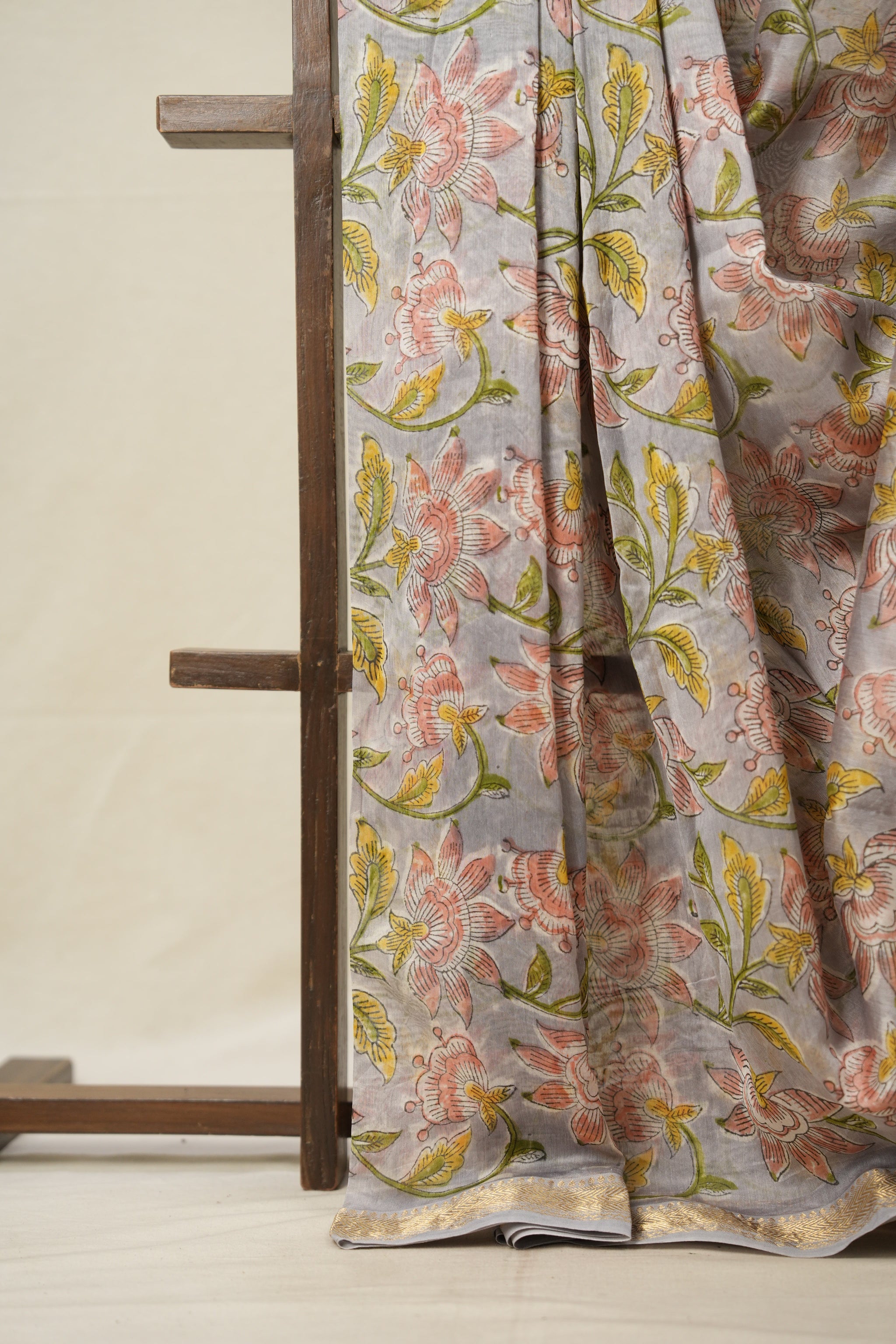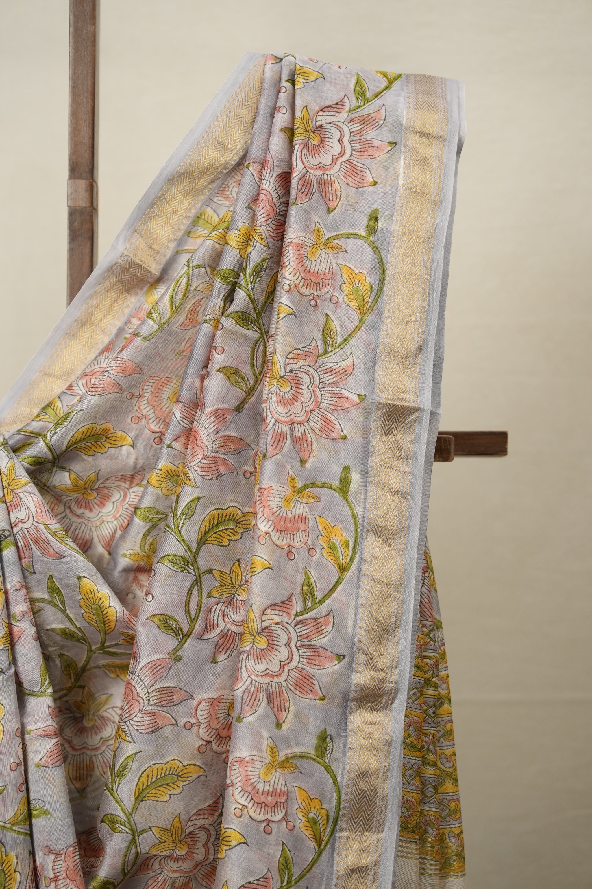 Grey HBP Cotton Silk Saree With Maheshwari Border - SRGCSS1306
