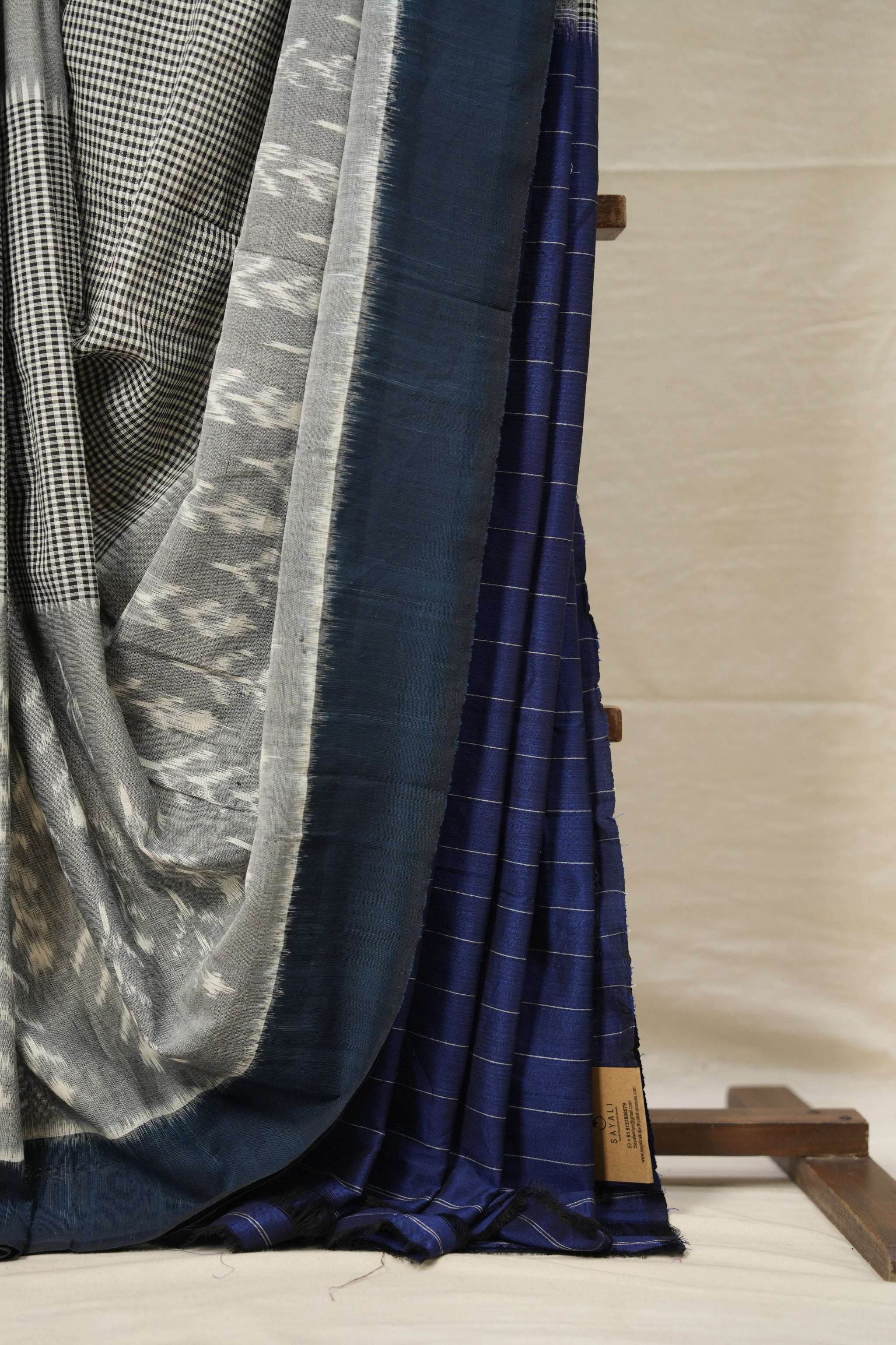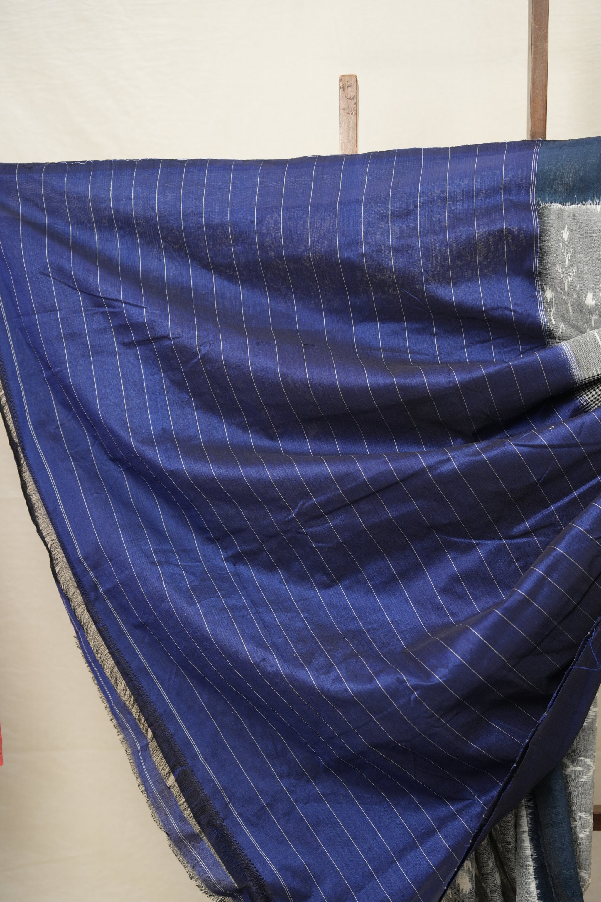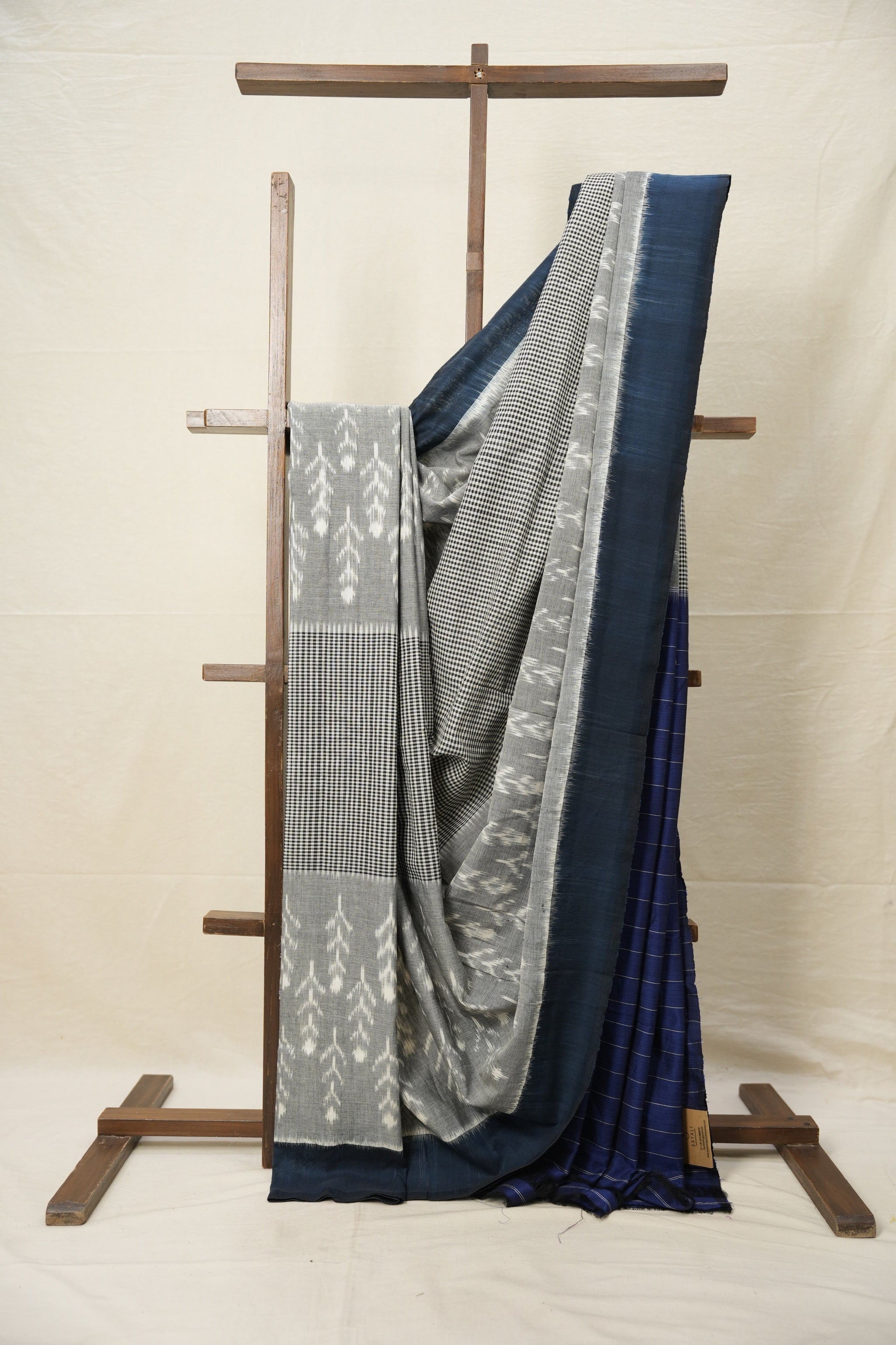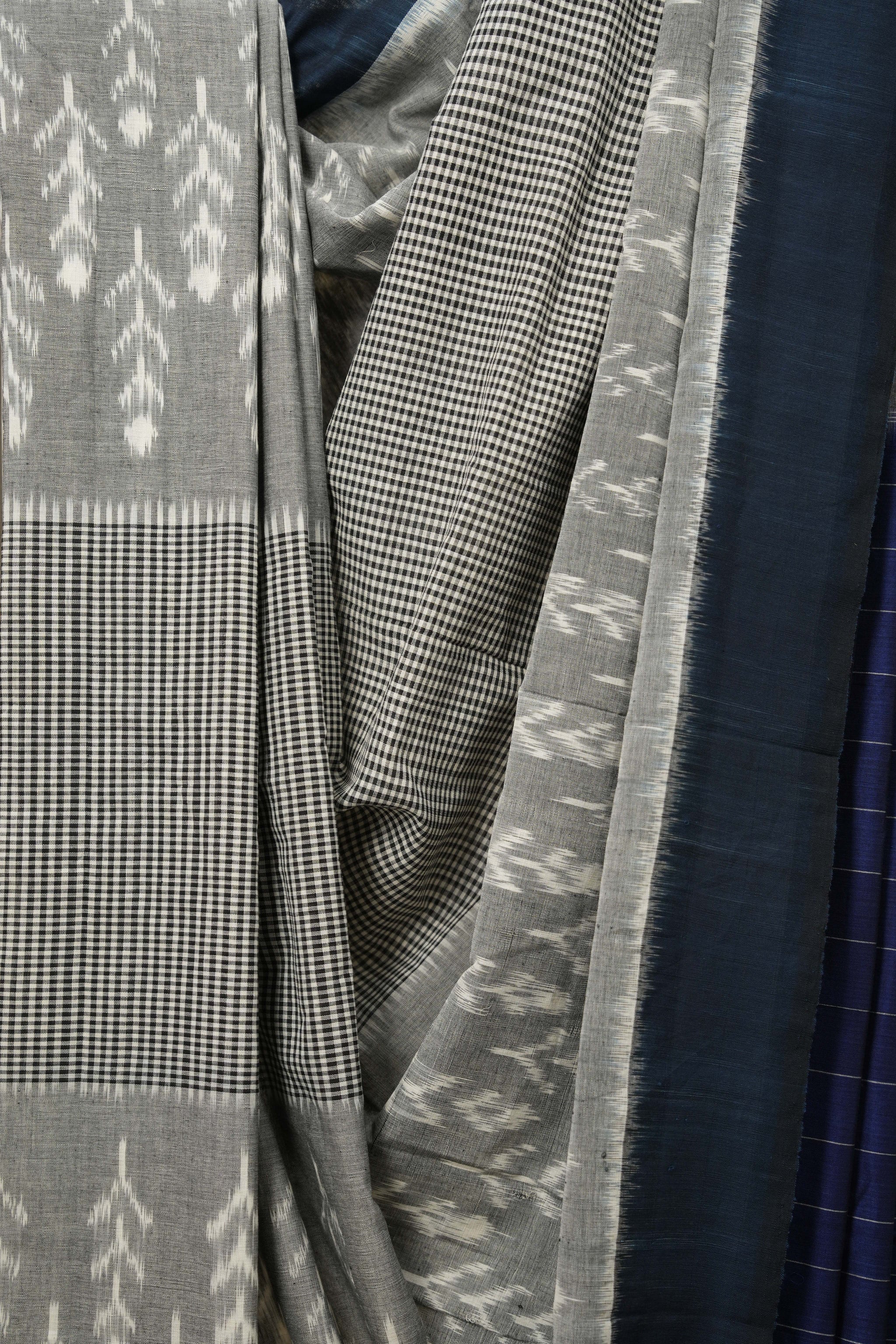 Grey Teal Blue Pochampalli Cotton Ikat Saree - SRGTBPCIS589