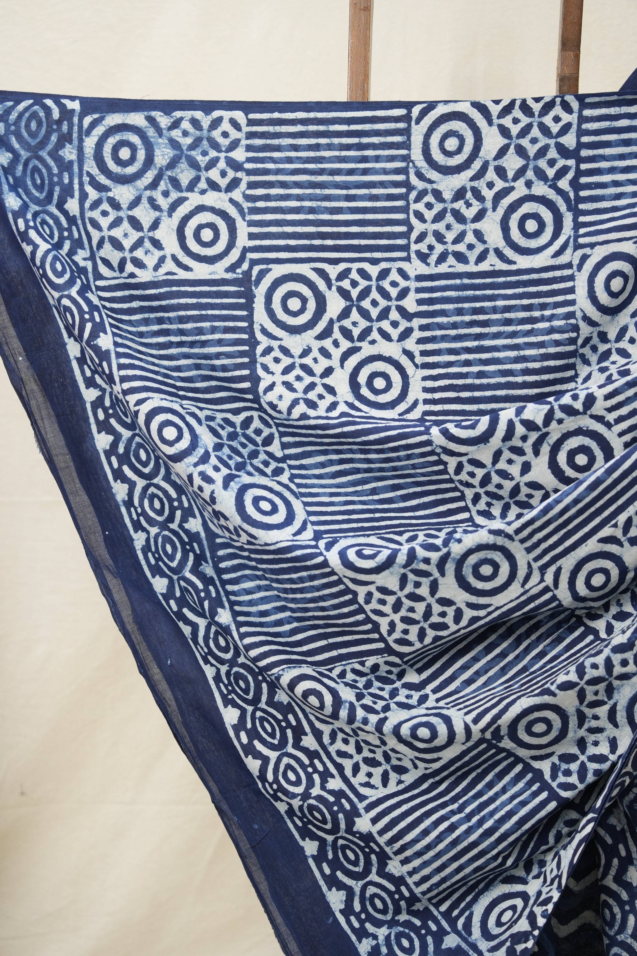 Indigo Blue HBP Cotton Saree - SRIBCS2859