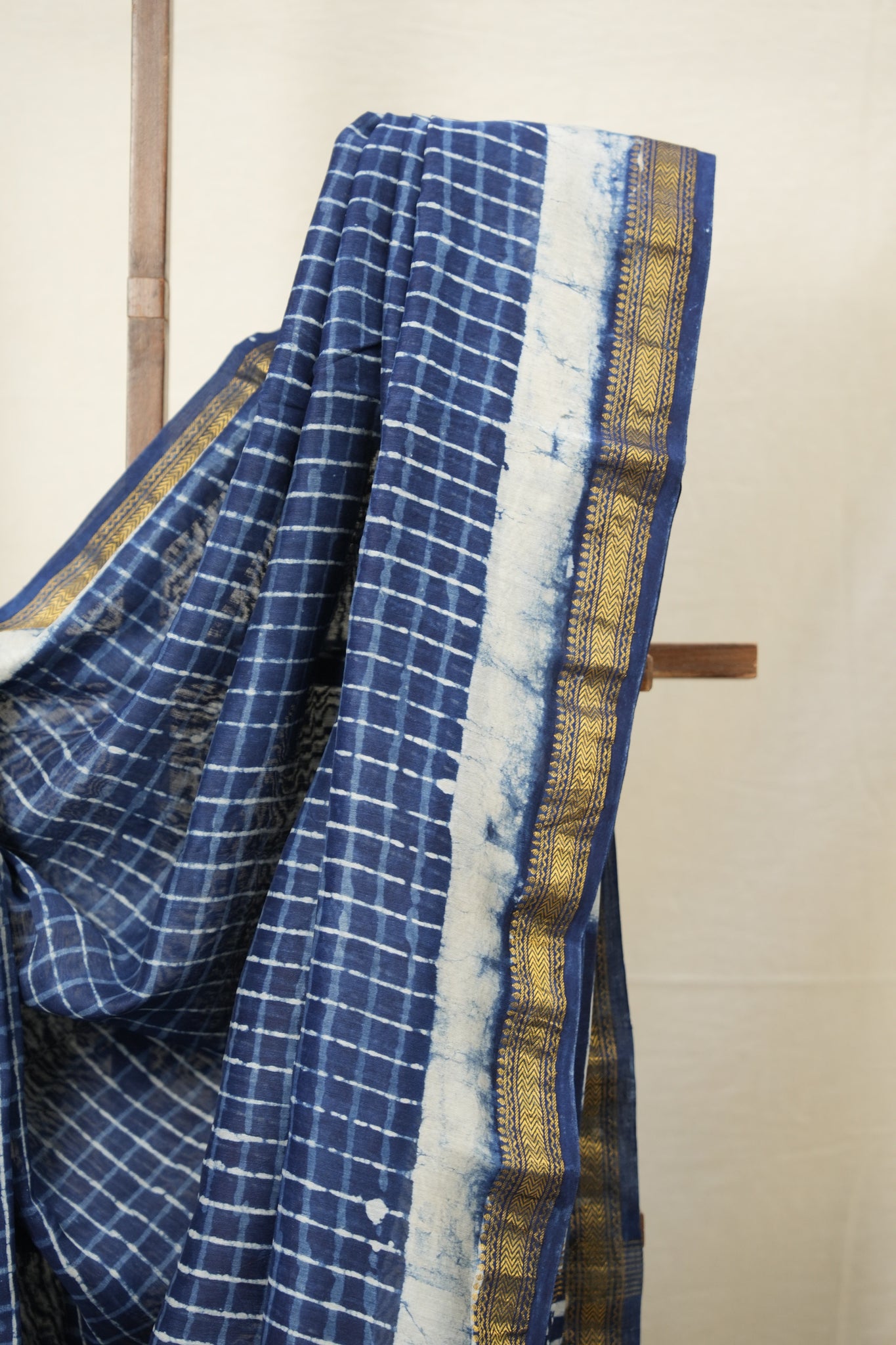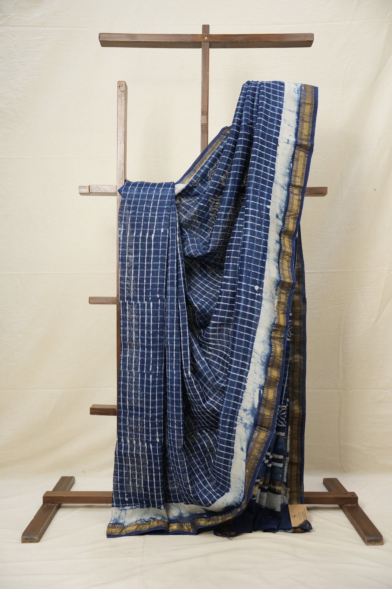 Indigo Checks HBP Cotton Silk Saree With Chanderi Border - SRICCSS1255