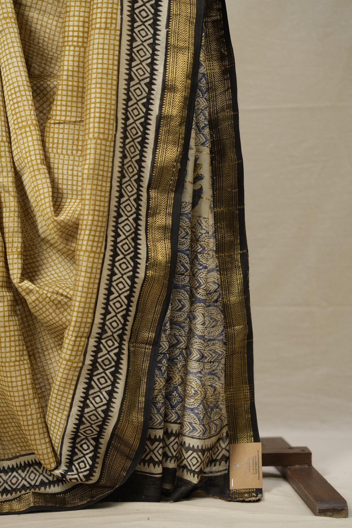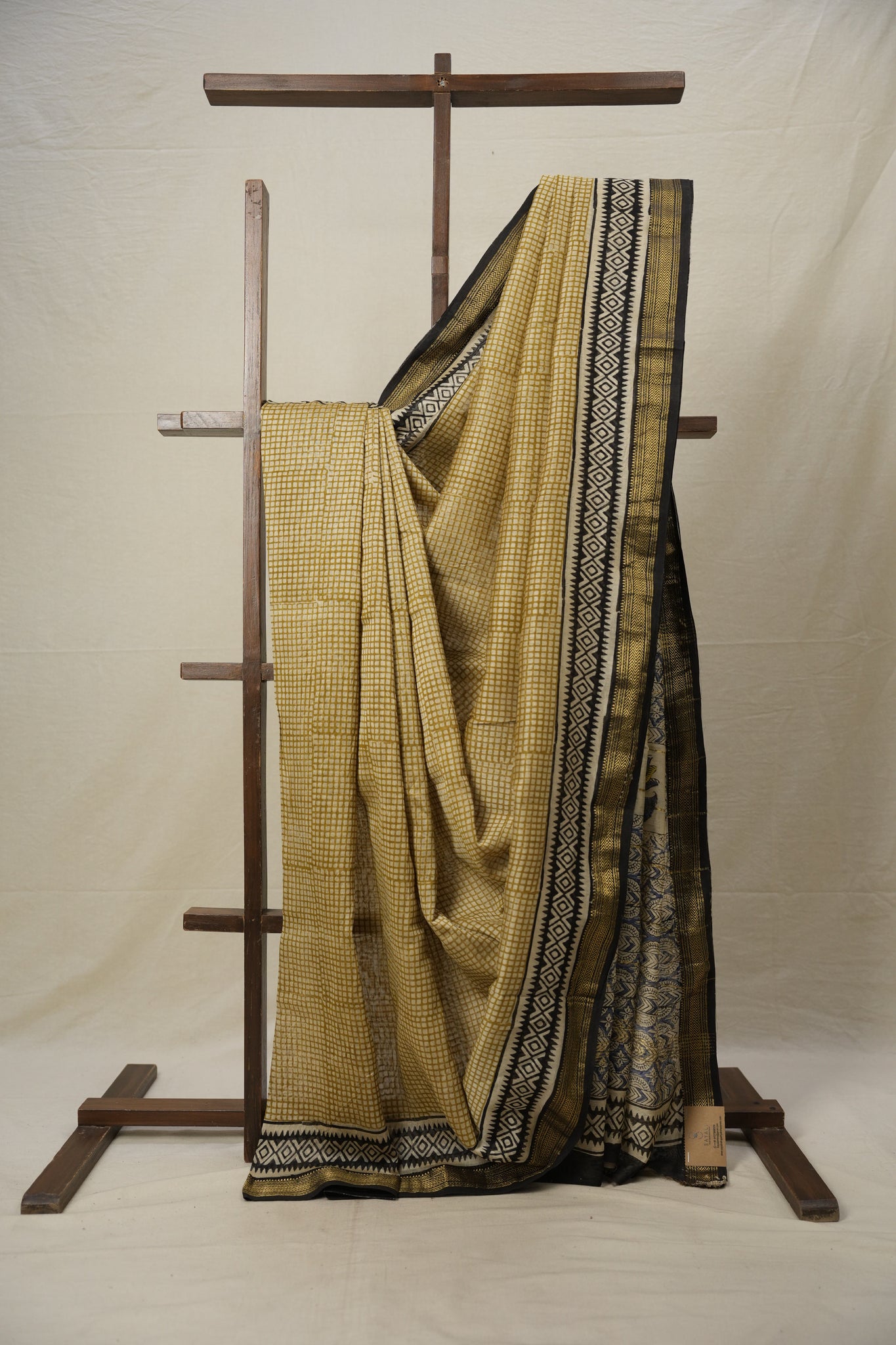 Light Yellow HBP Cotton Silk Saree With Maheshwari Border - SRLYCSS1296