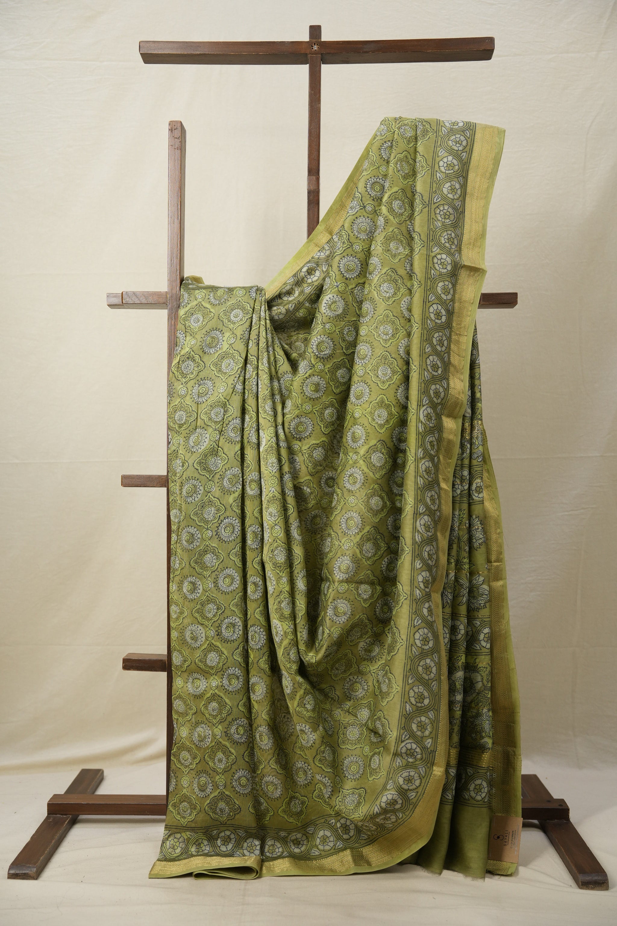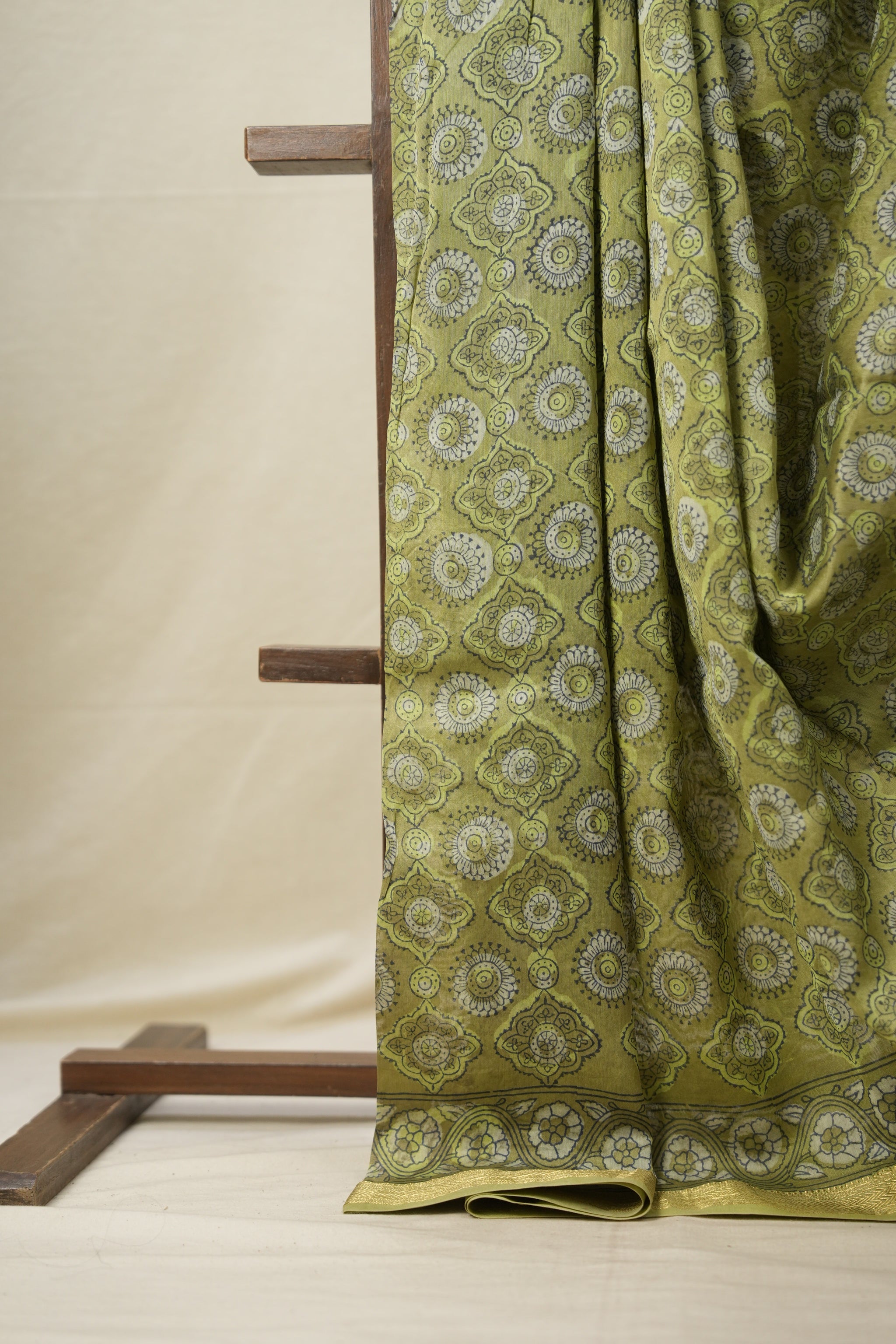 Mehandi Green HBP Cotton Silk Saree With Maheshwari Border - SRMGCSS1291