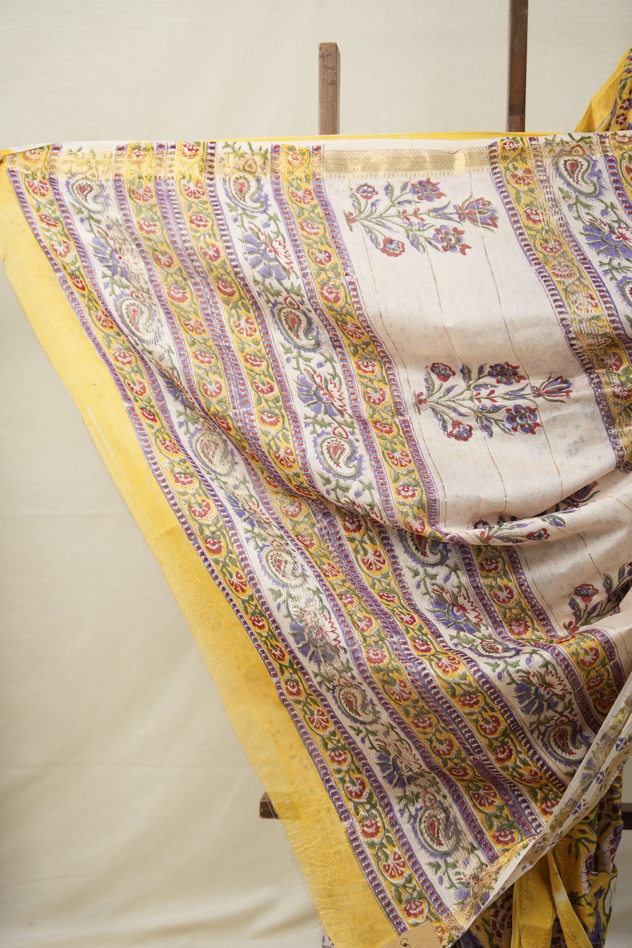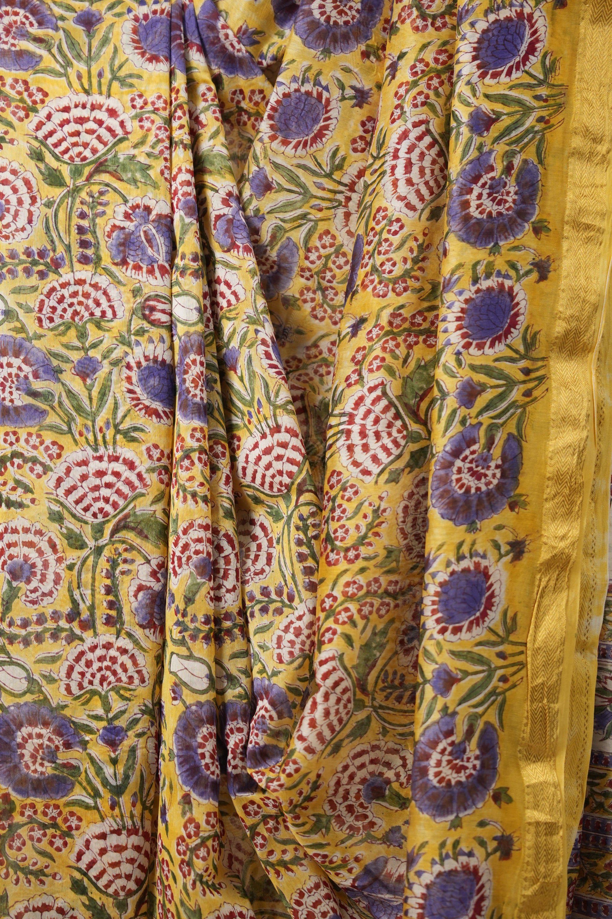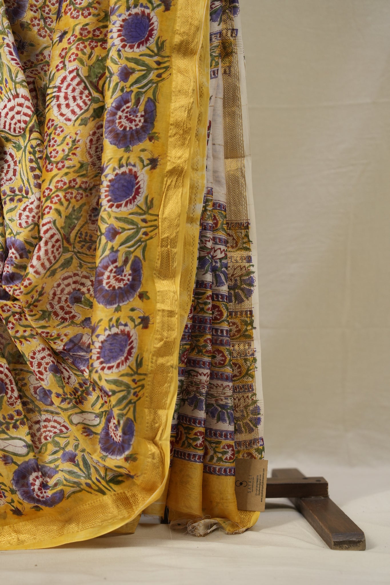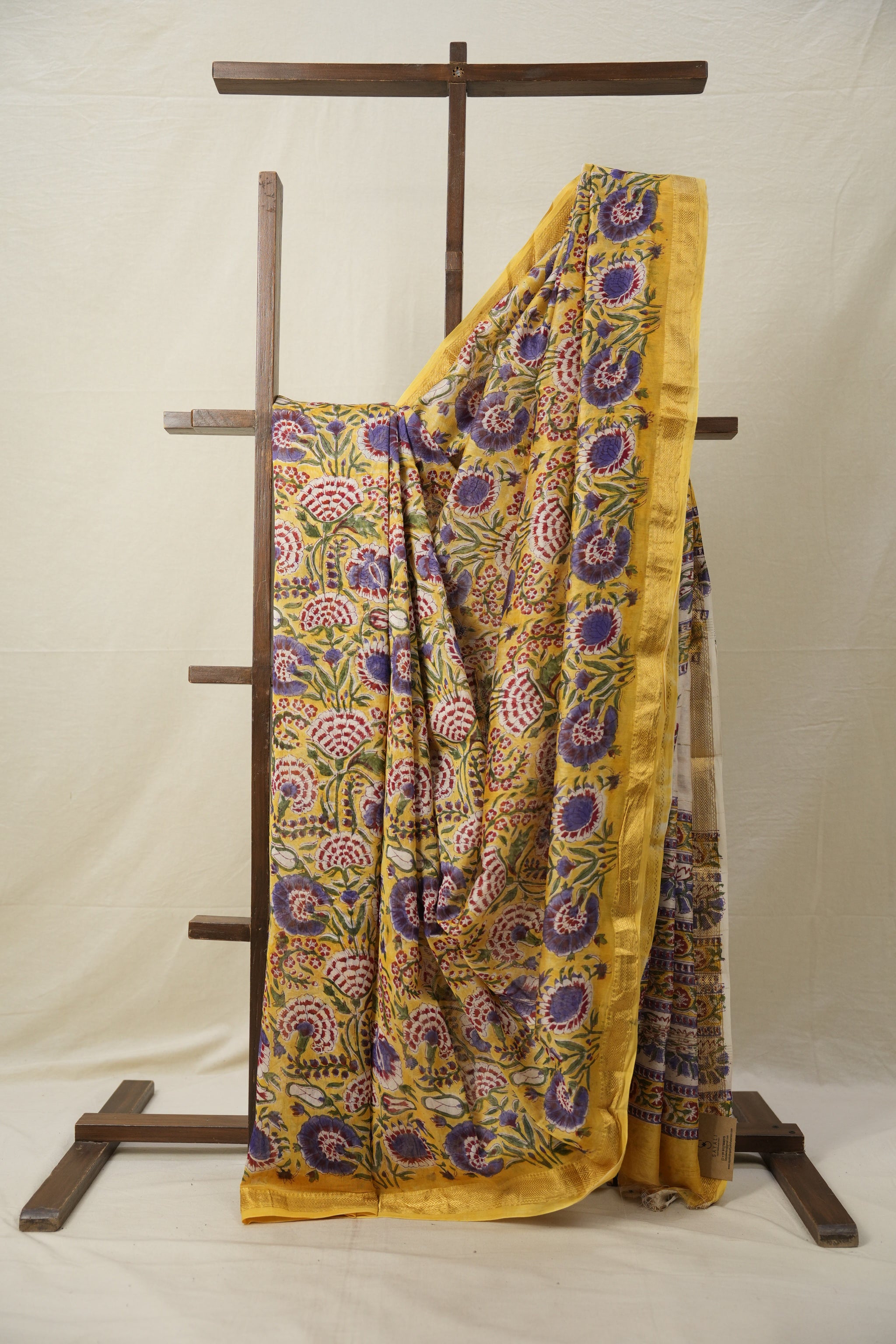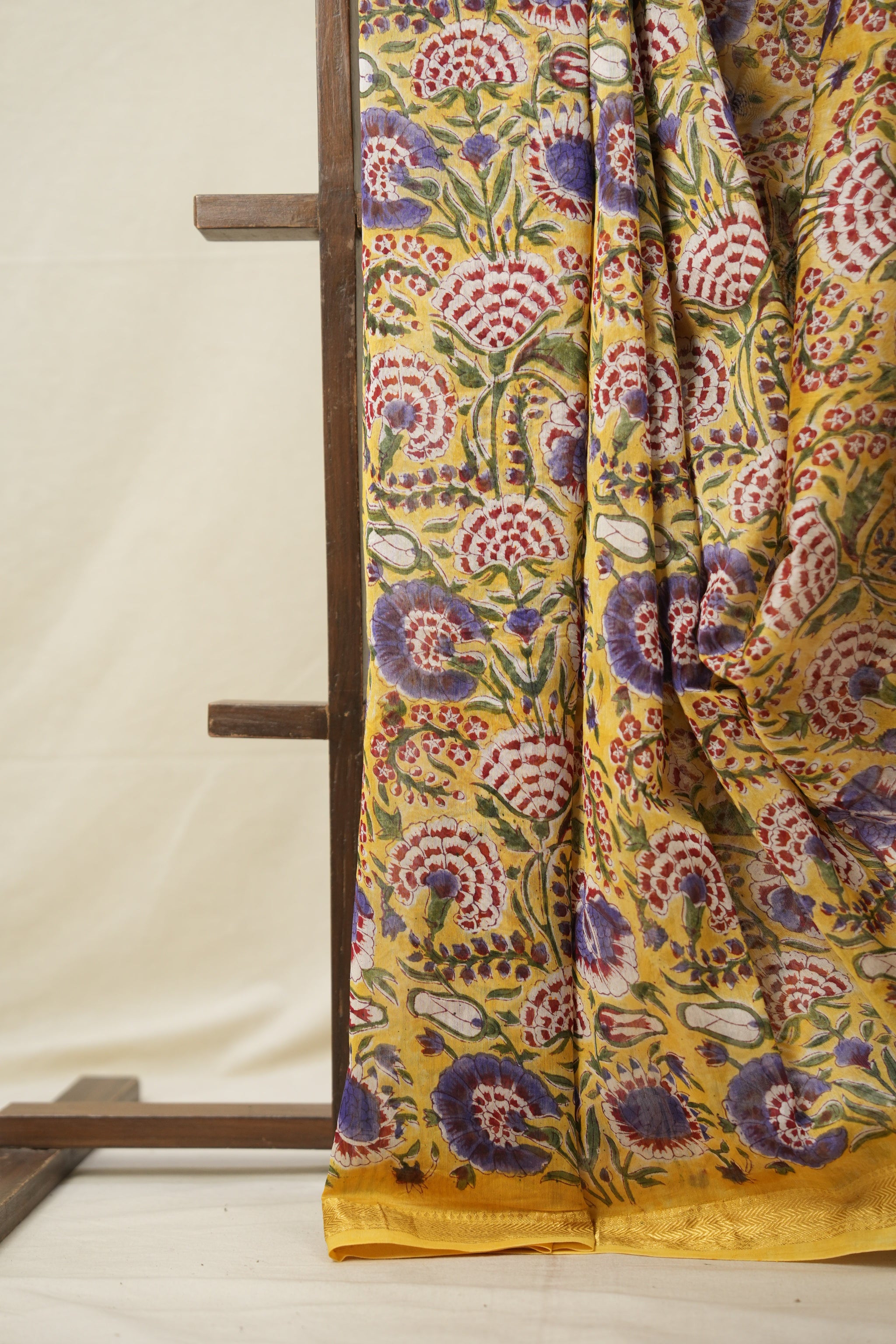 Mustard Yellow HBP Cotton Silk Saree With Maheshwari Border - SRMYCSS1313
