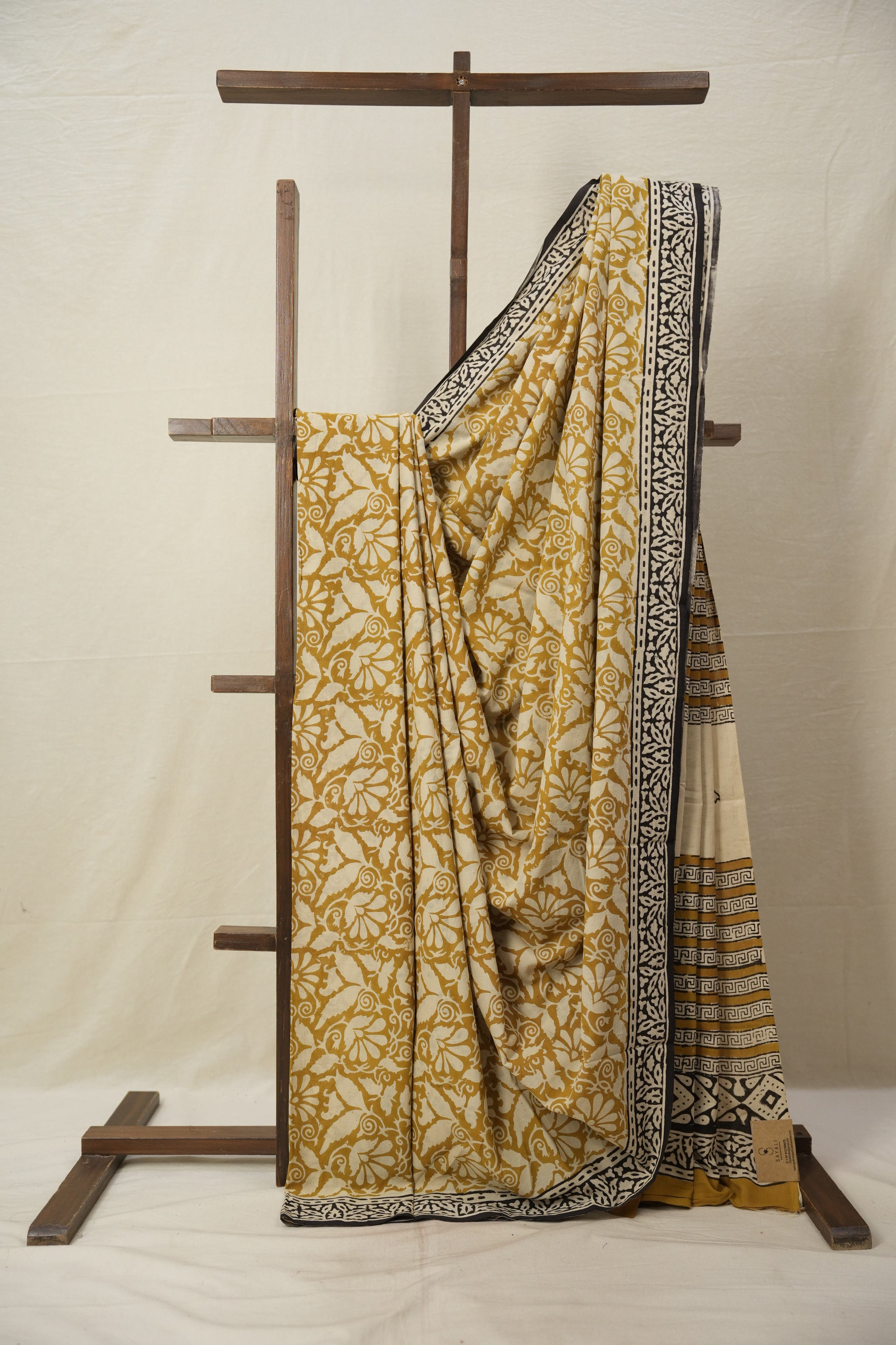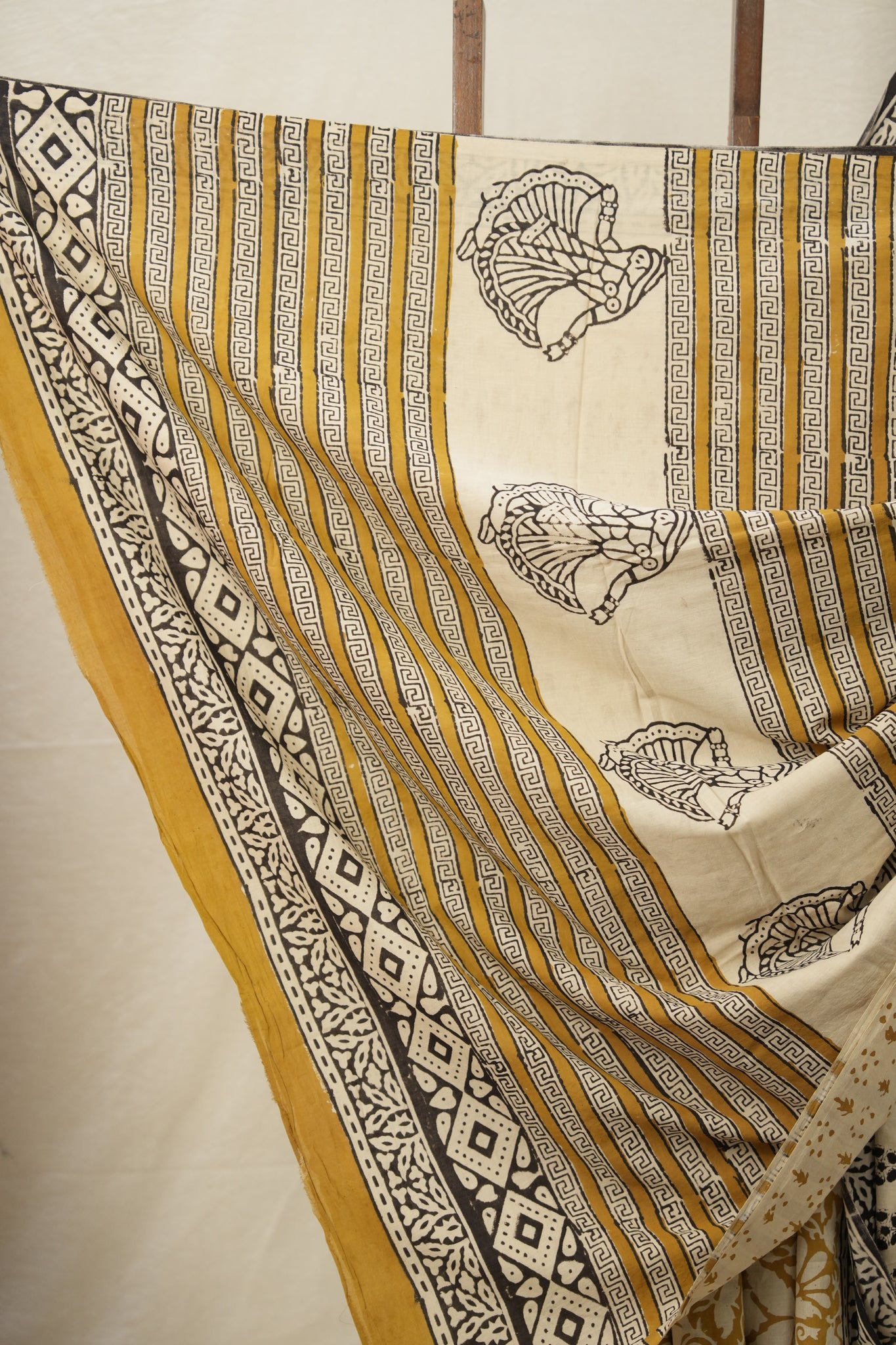 Off White Gold HBP Cotton Saree - SROWGCS2842