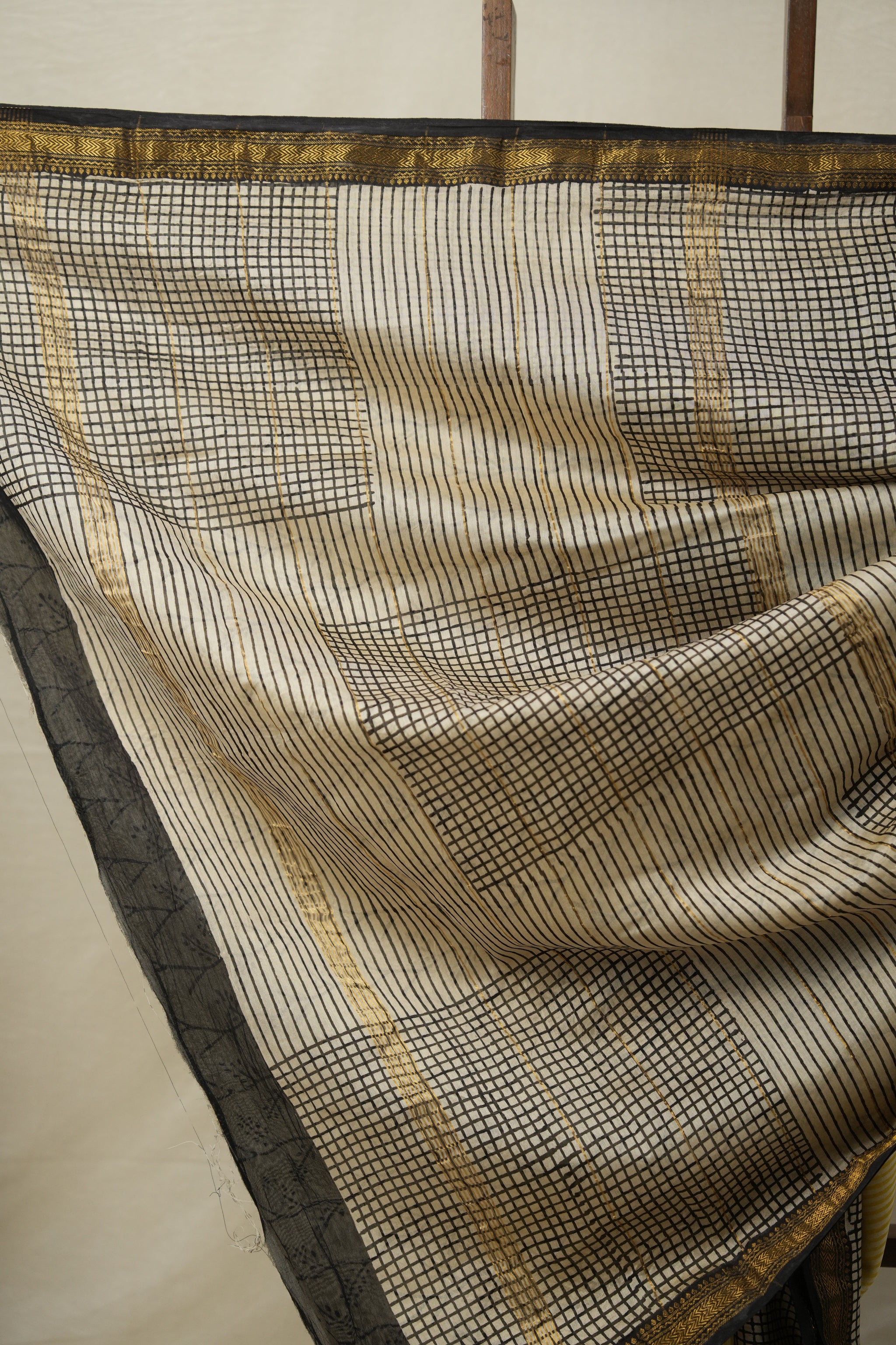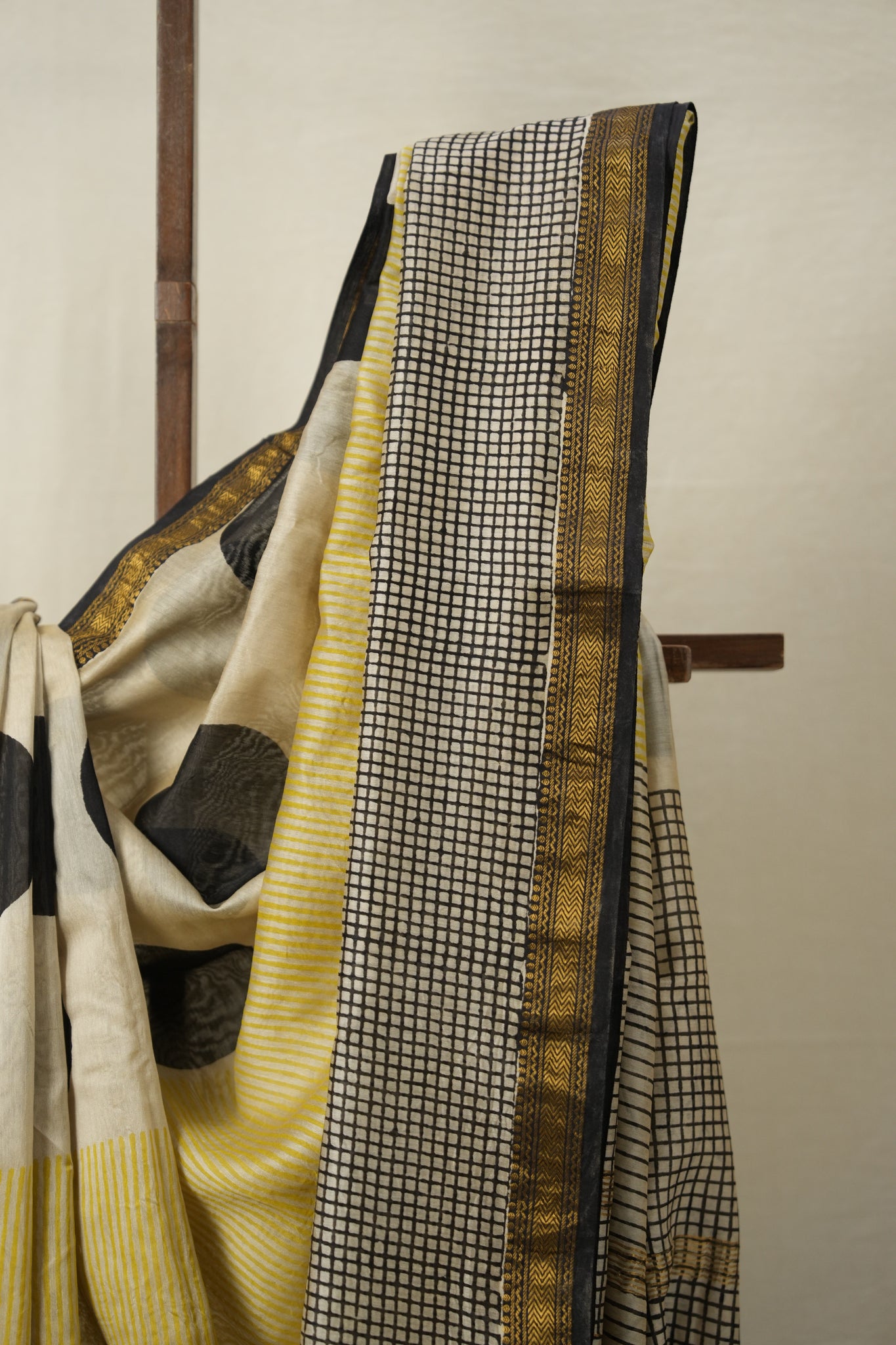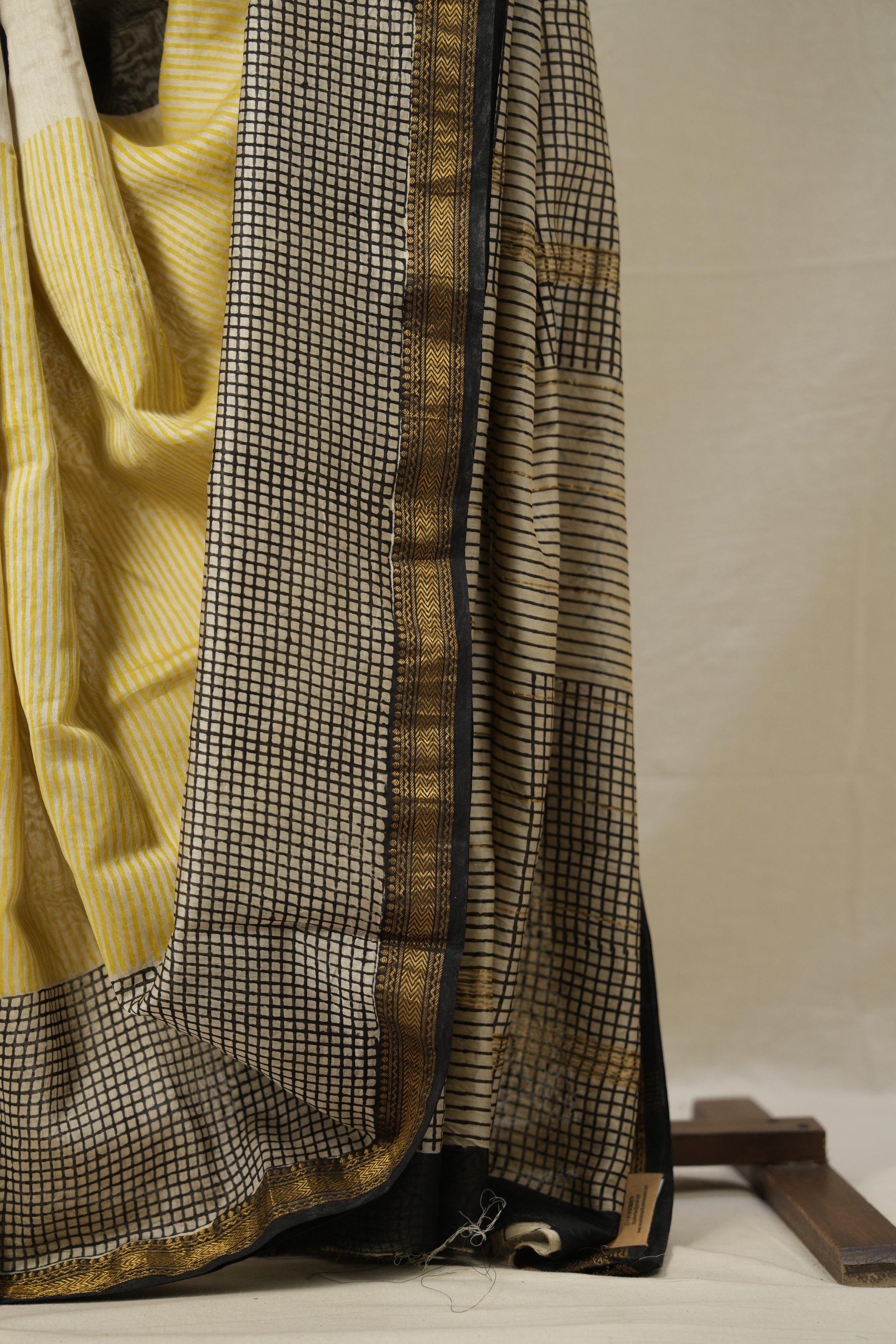 Yellow- White HBP Cotton Silk Saree With Maheshwari Border - SRYWCSS1314