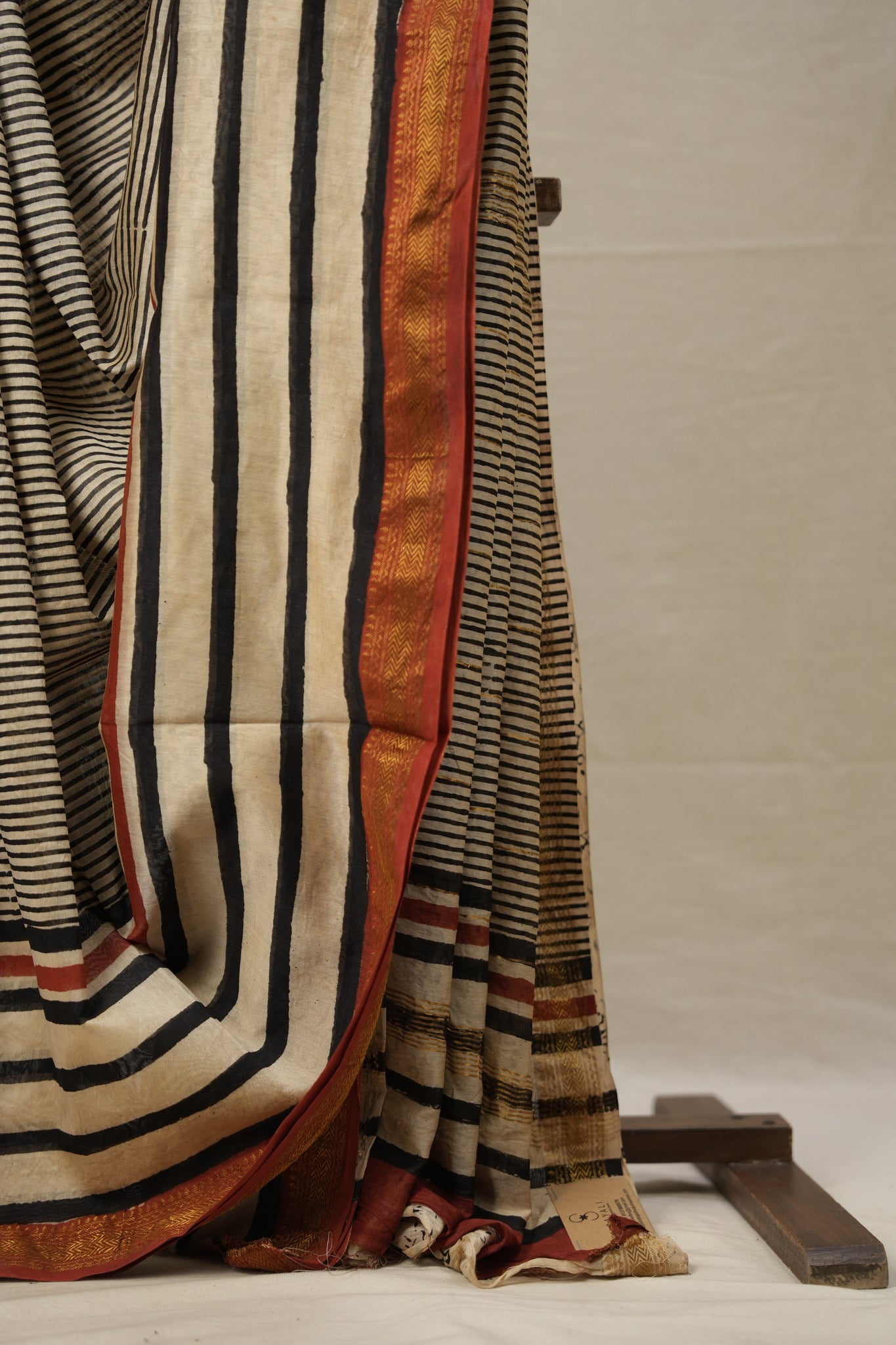 Off - White HBP Cotton Silk Saree With Maheshwari Border - SROWCSS1345