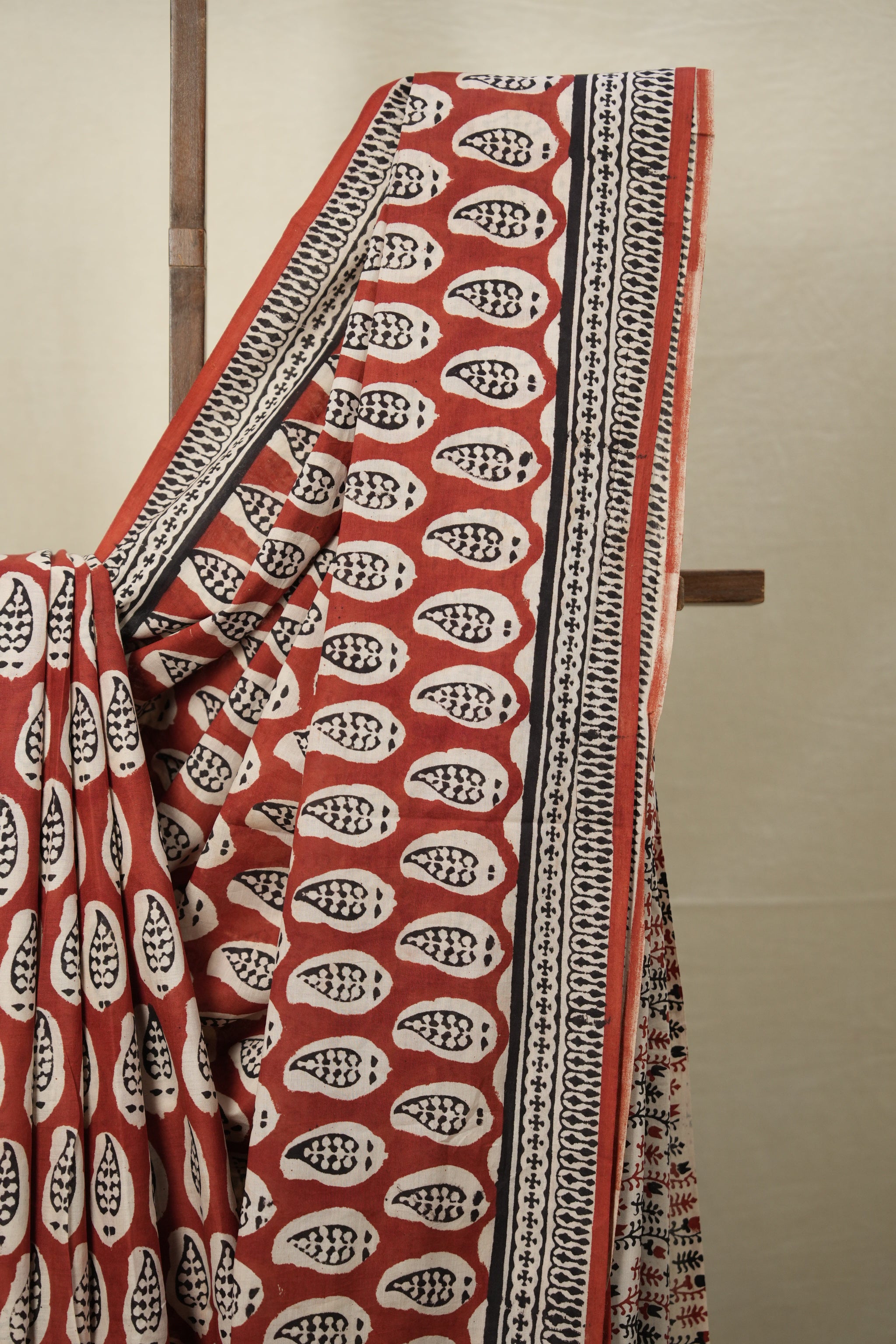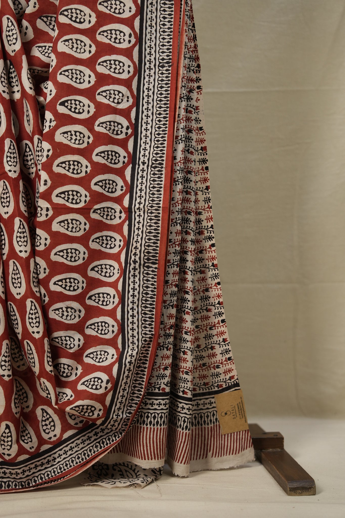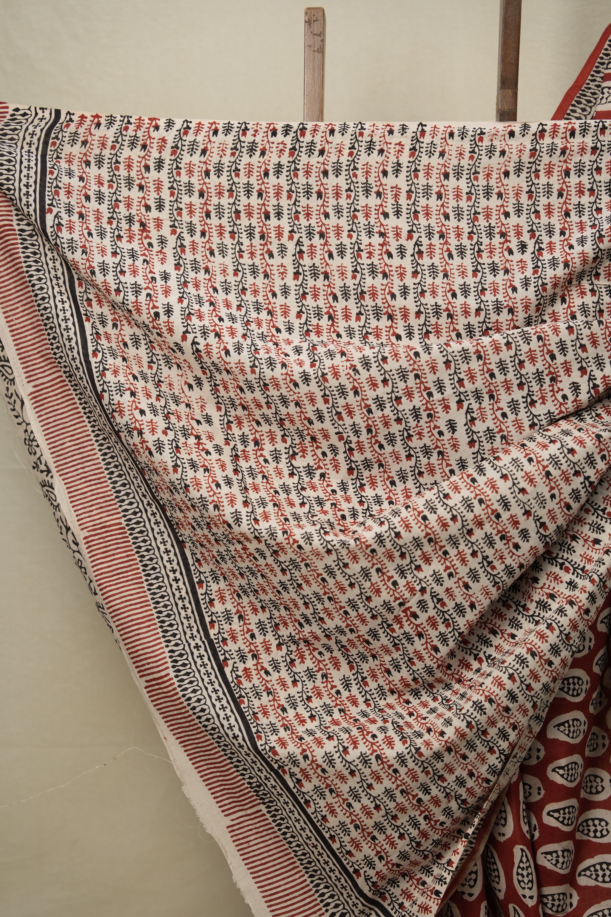Off White Red HBP Cotton Saree - SROWRCS2813