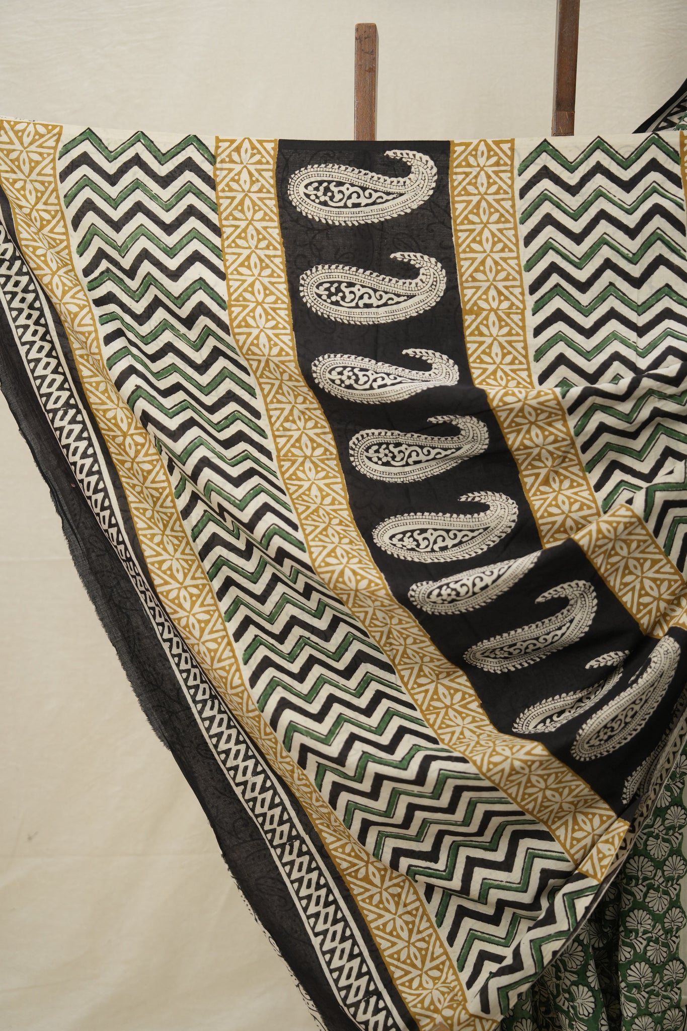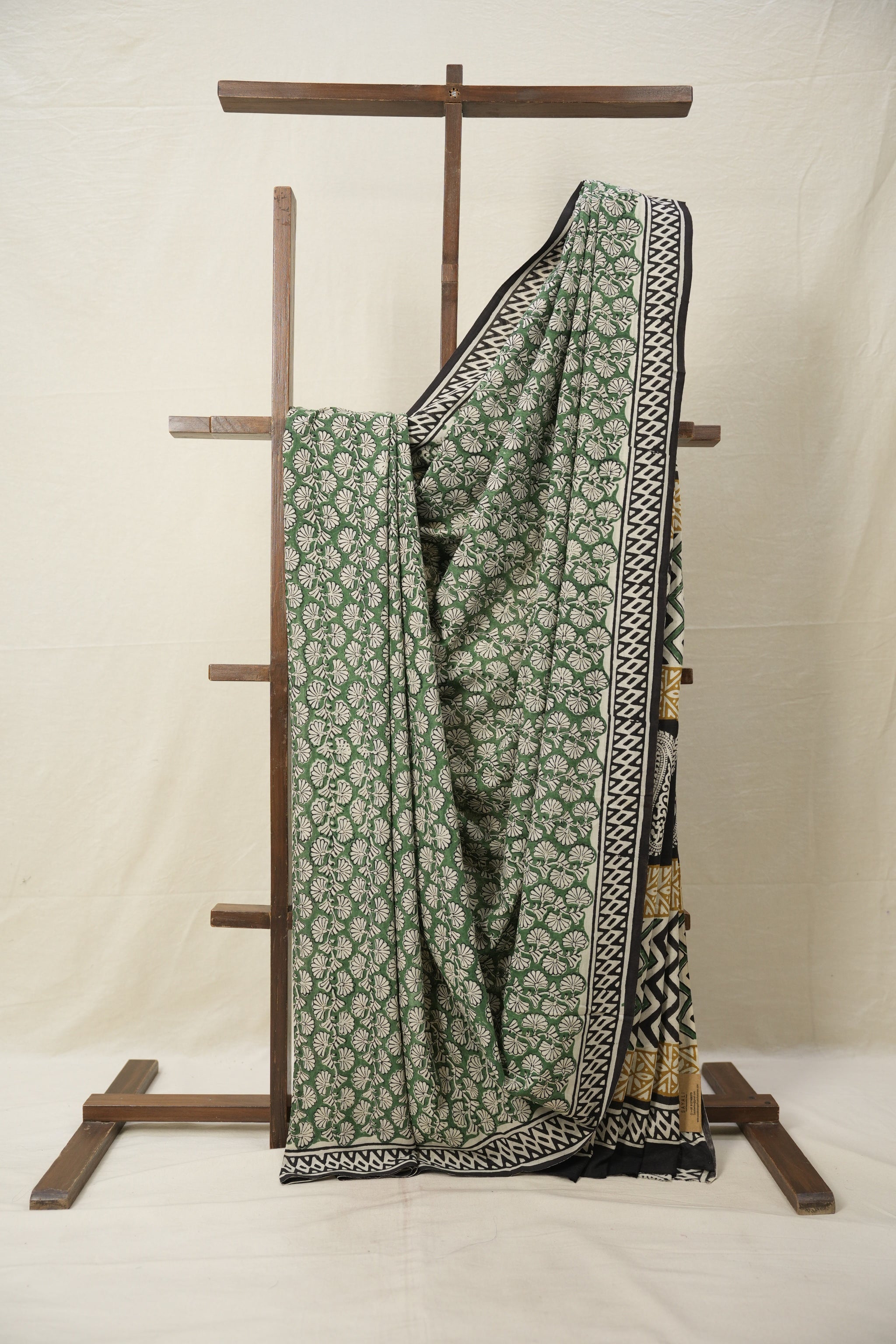 Parrot Green Black HBP Cotton Saree - SRPGBCS2848