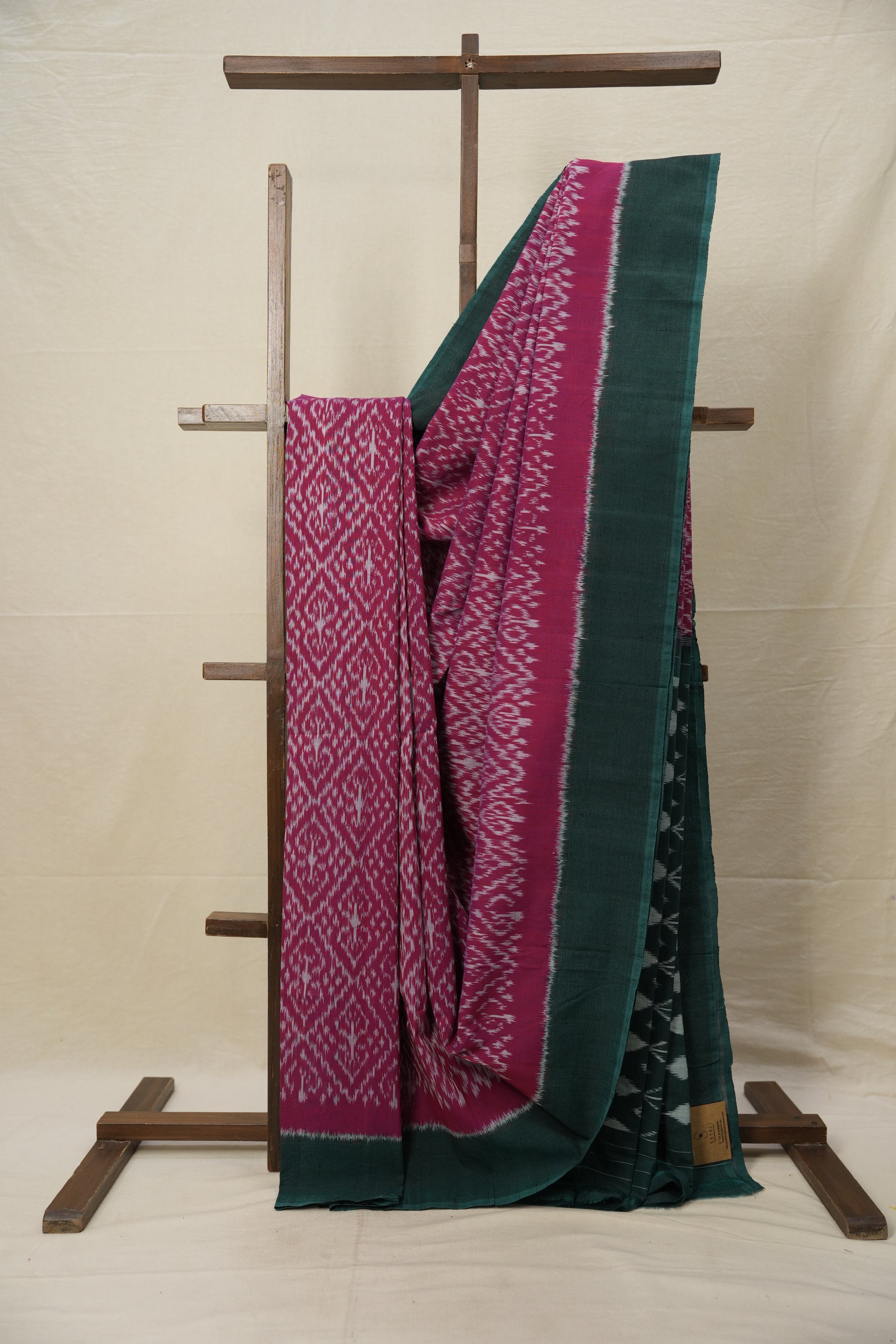 Pink - White Pochampalli Cotton Ikat Saree - SRPWPCIS596