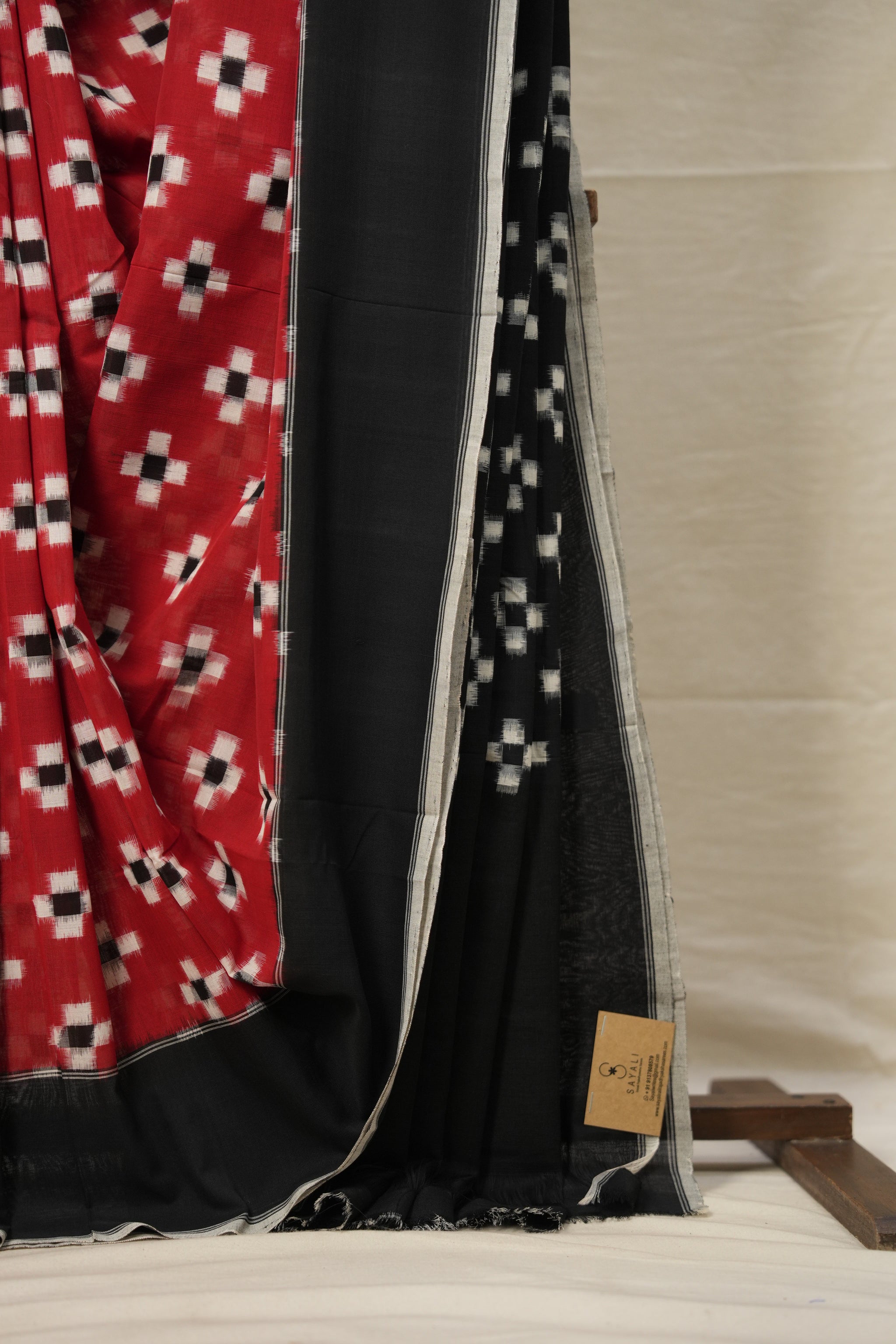 Red - Black Pochampalli Cotton Ikat Saree - SRRBPCIS583