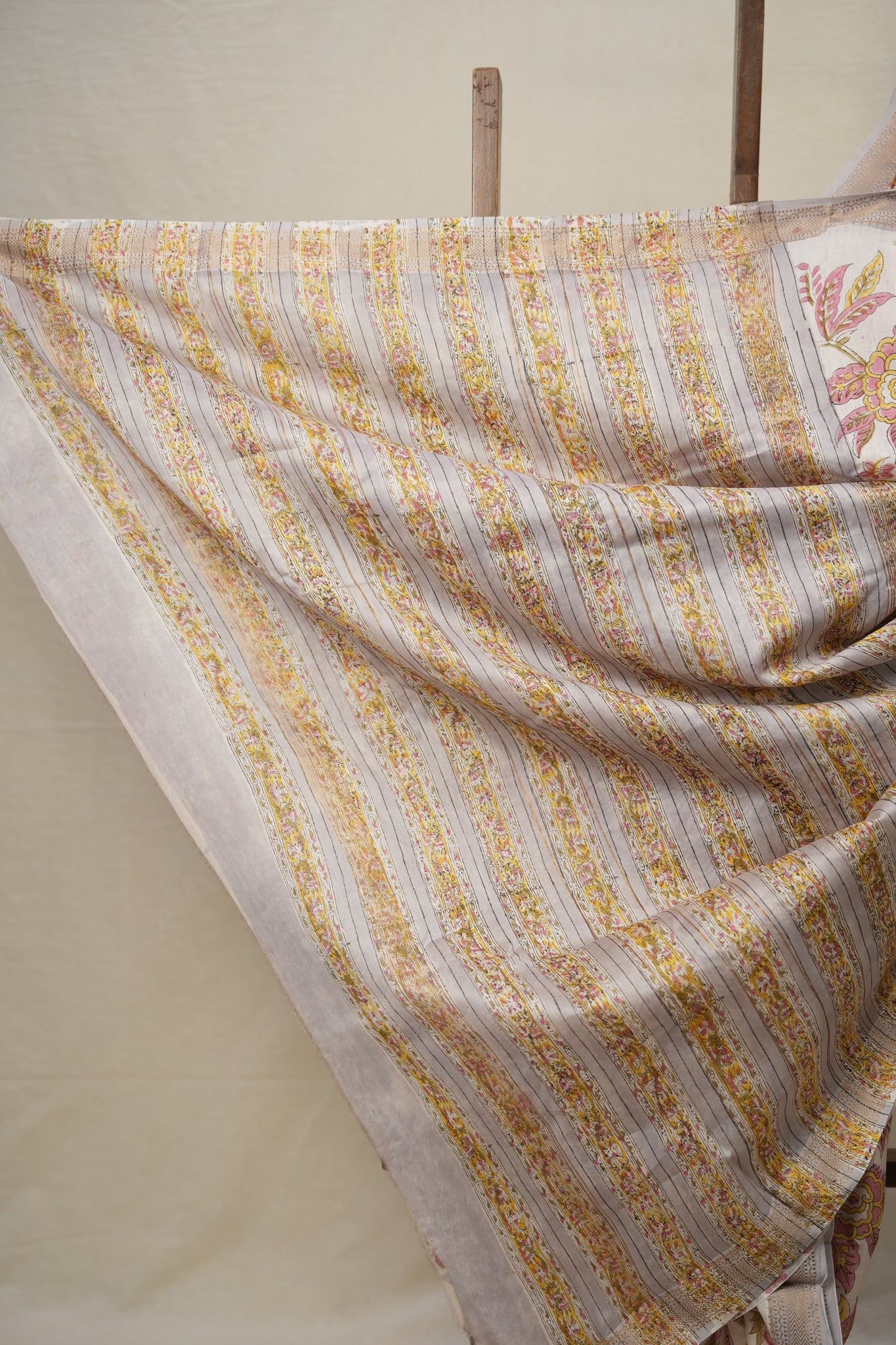 White - Pink HBP Cotton Silk Saree With Maheshwari Border - SRWPCSS1316