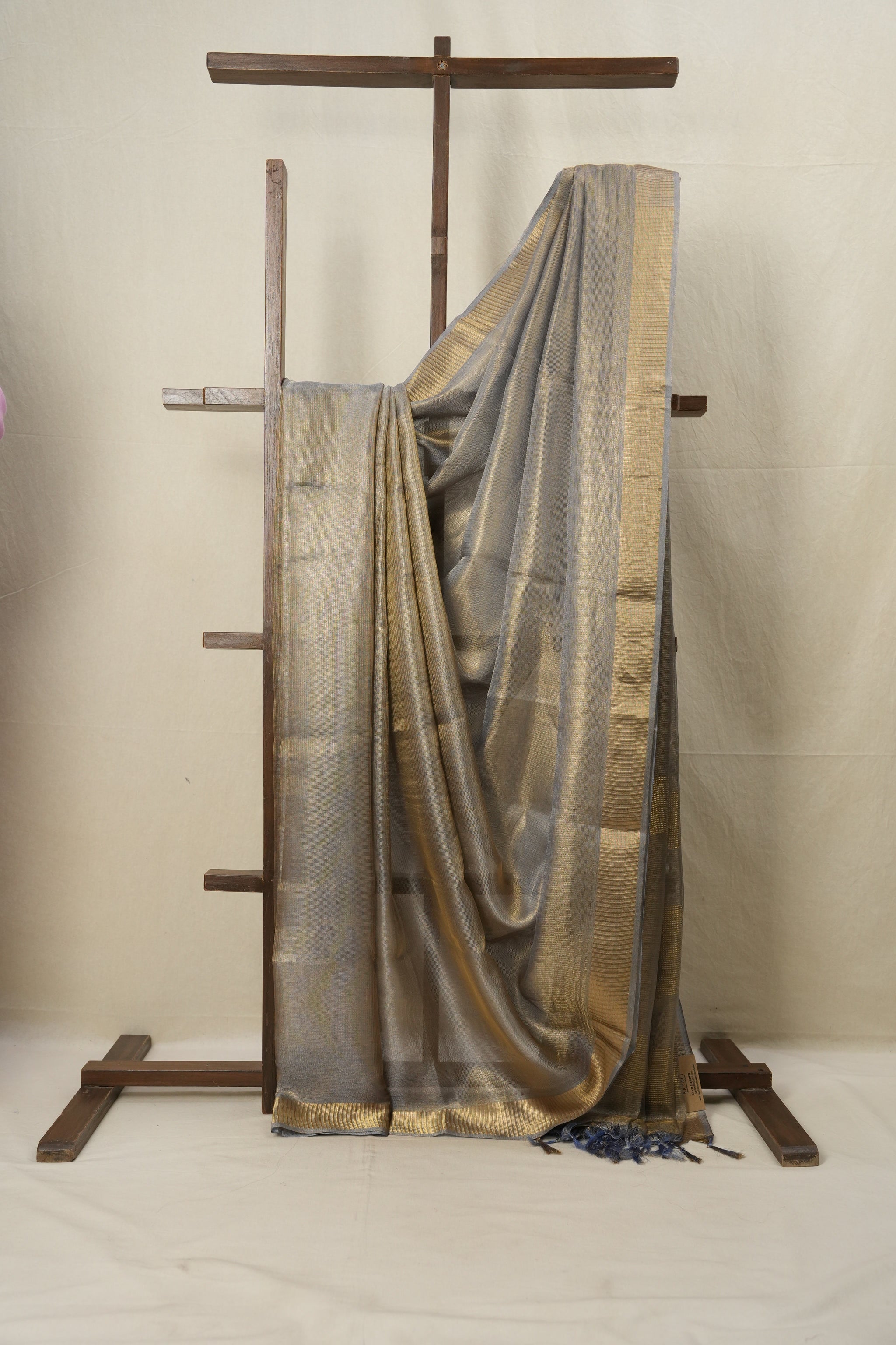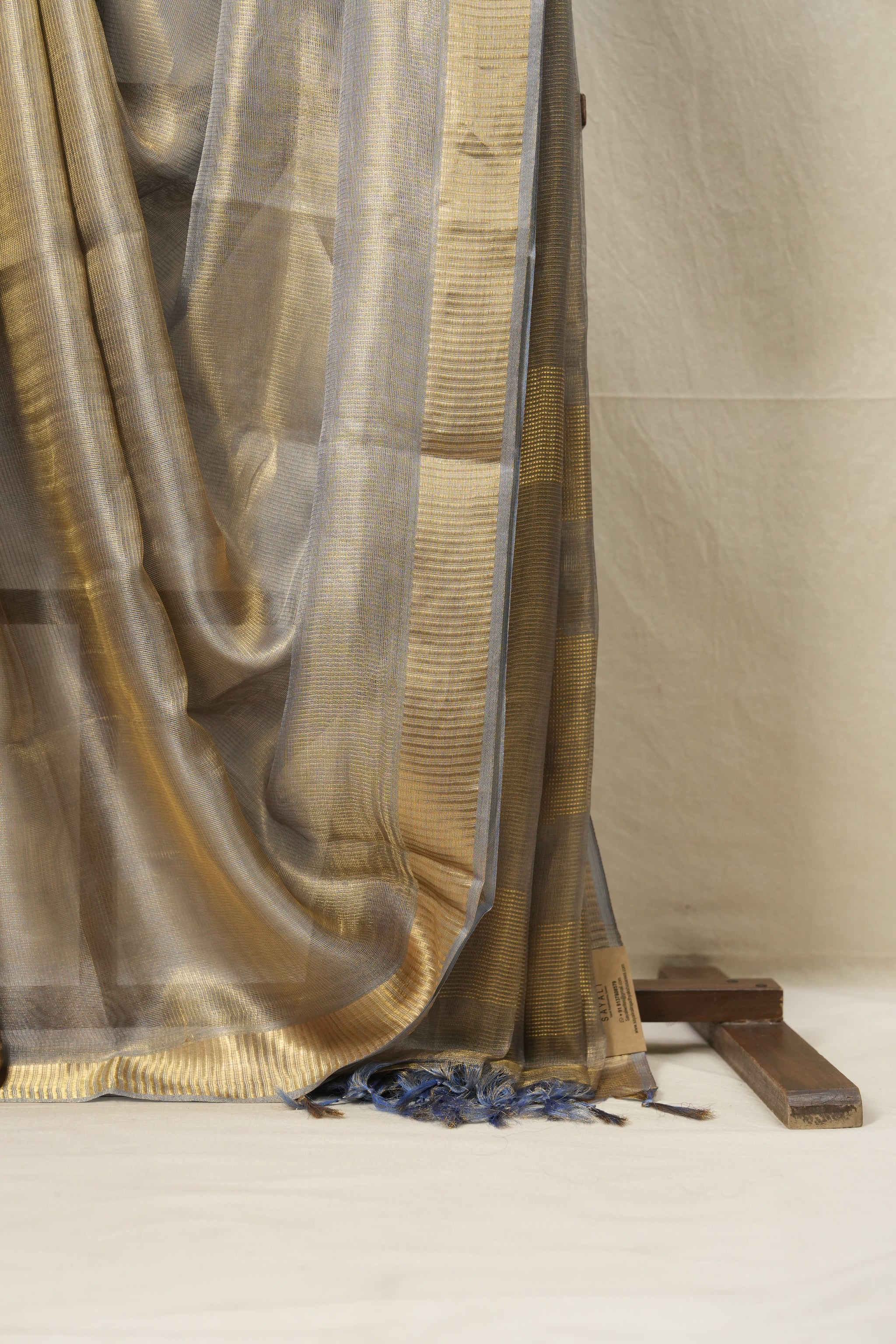 Blue Gold Tissue Tussar Silk Saree - SRBGTTSS519