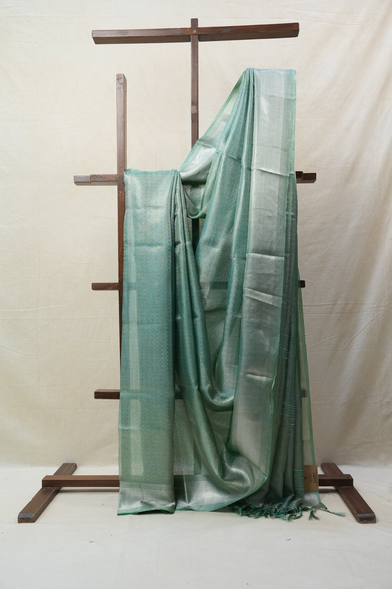 Turquoise Silver Tissue Tussar Silk Saree - SRTSTTSS450