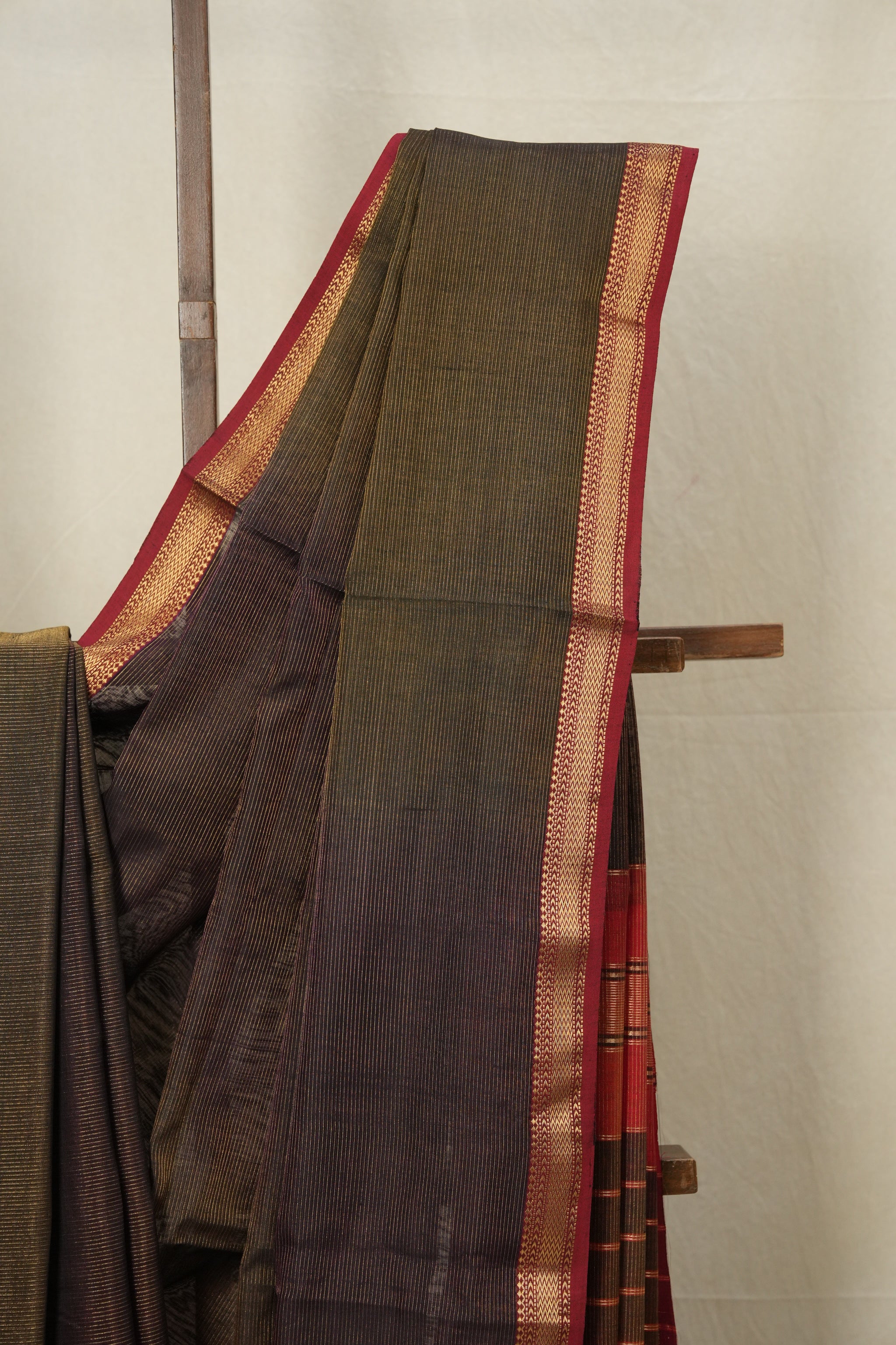 Dual Tone Green Maheshwari Tissue Saree - SRDTGMTS600