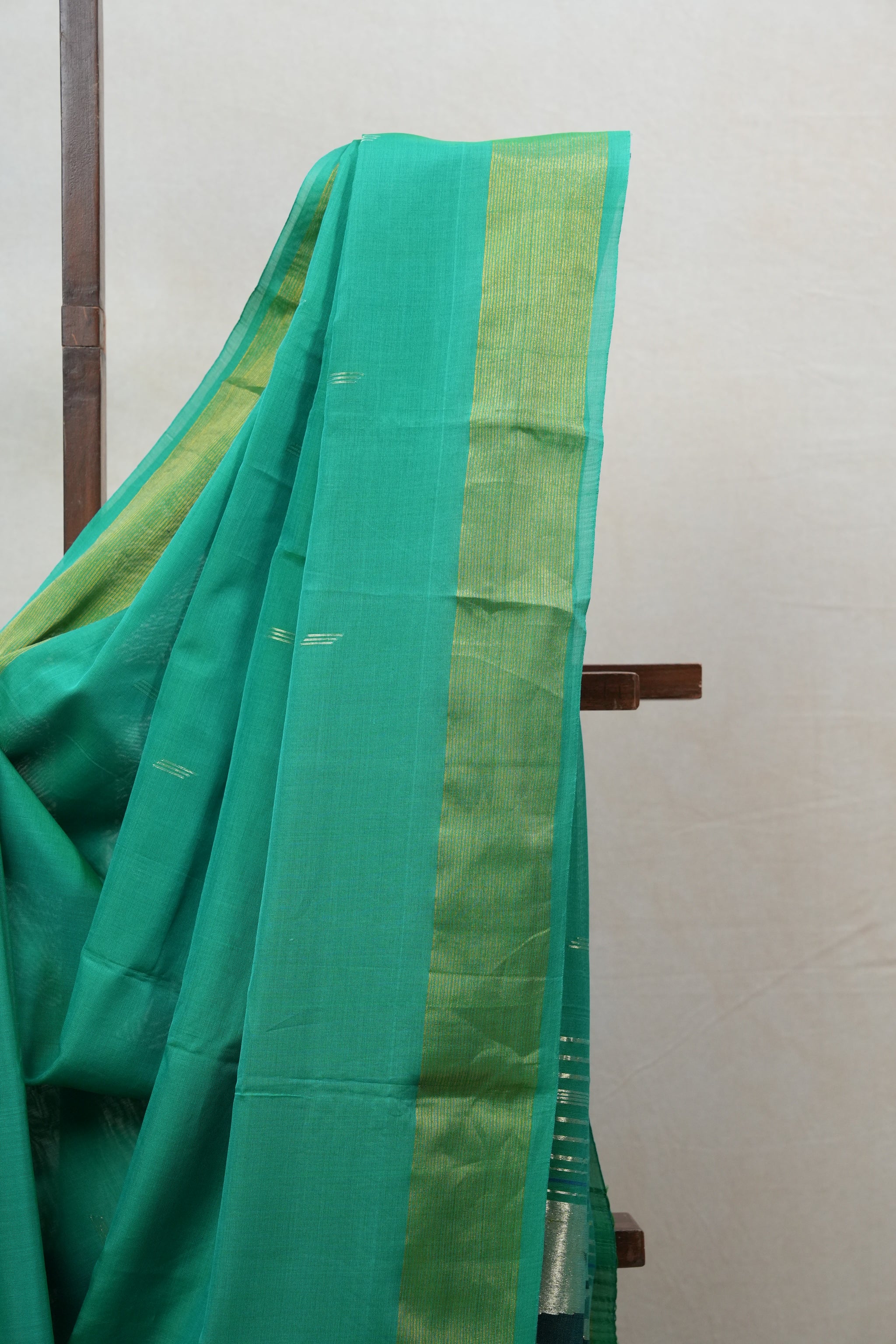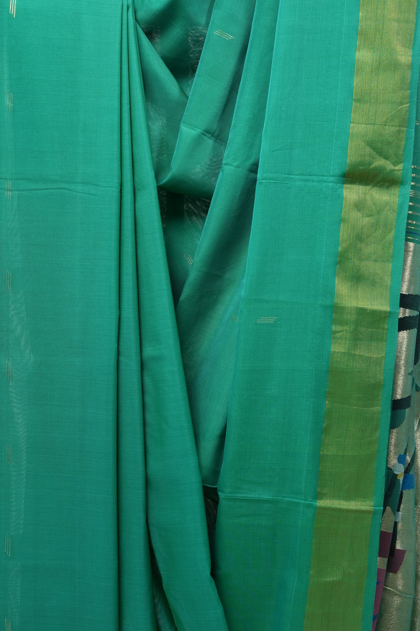 Work - Green cotton paithani saree with golden zari border and traditional fancy pallu.