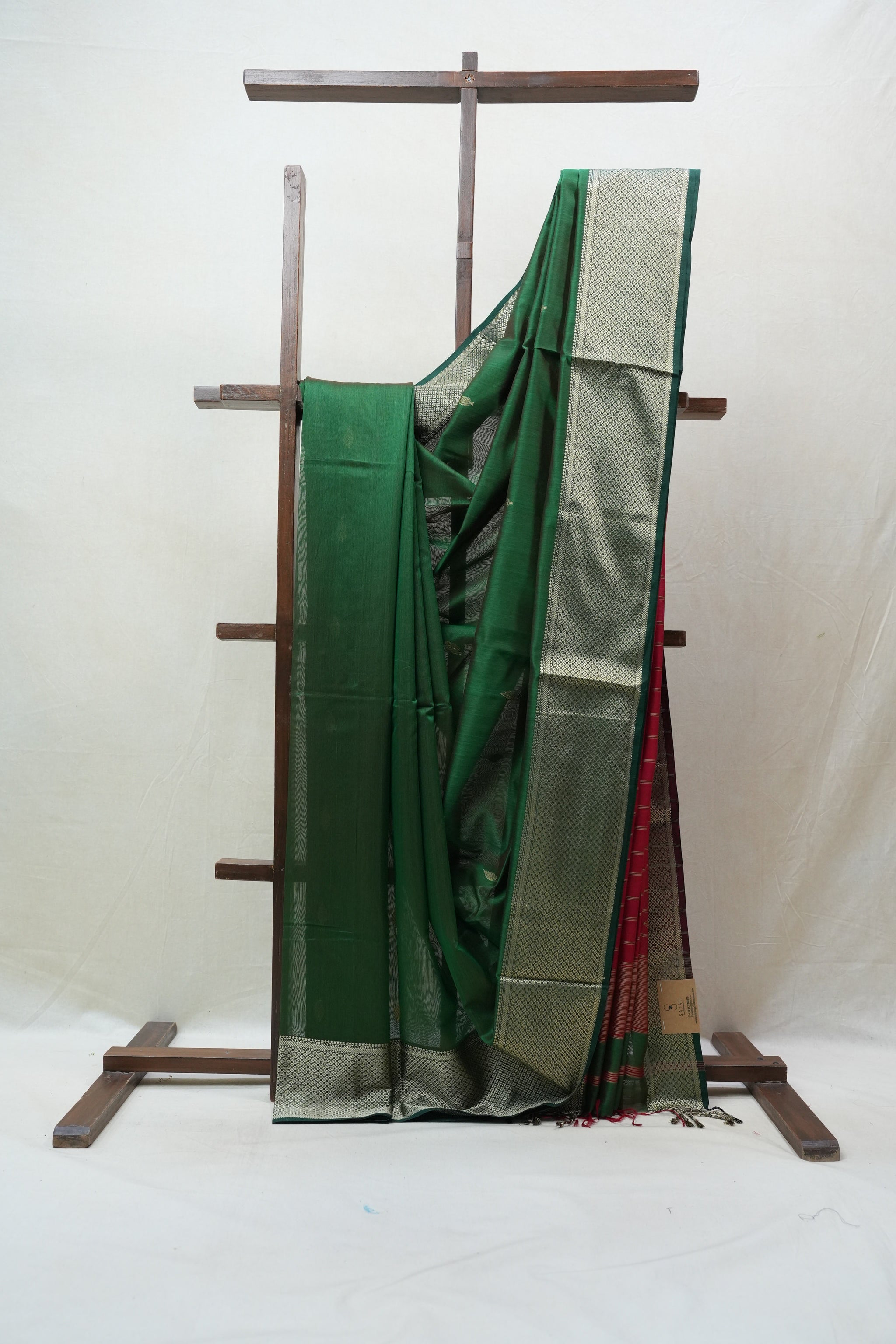Work - Maheshwari cotton silk saree with butti all over body and rich woven zari border.