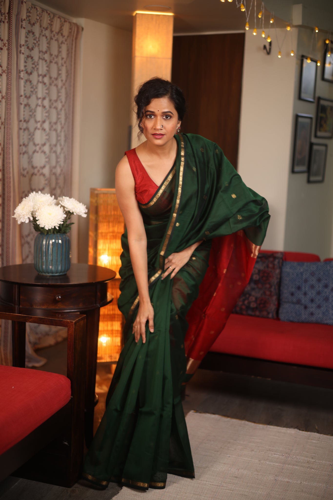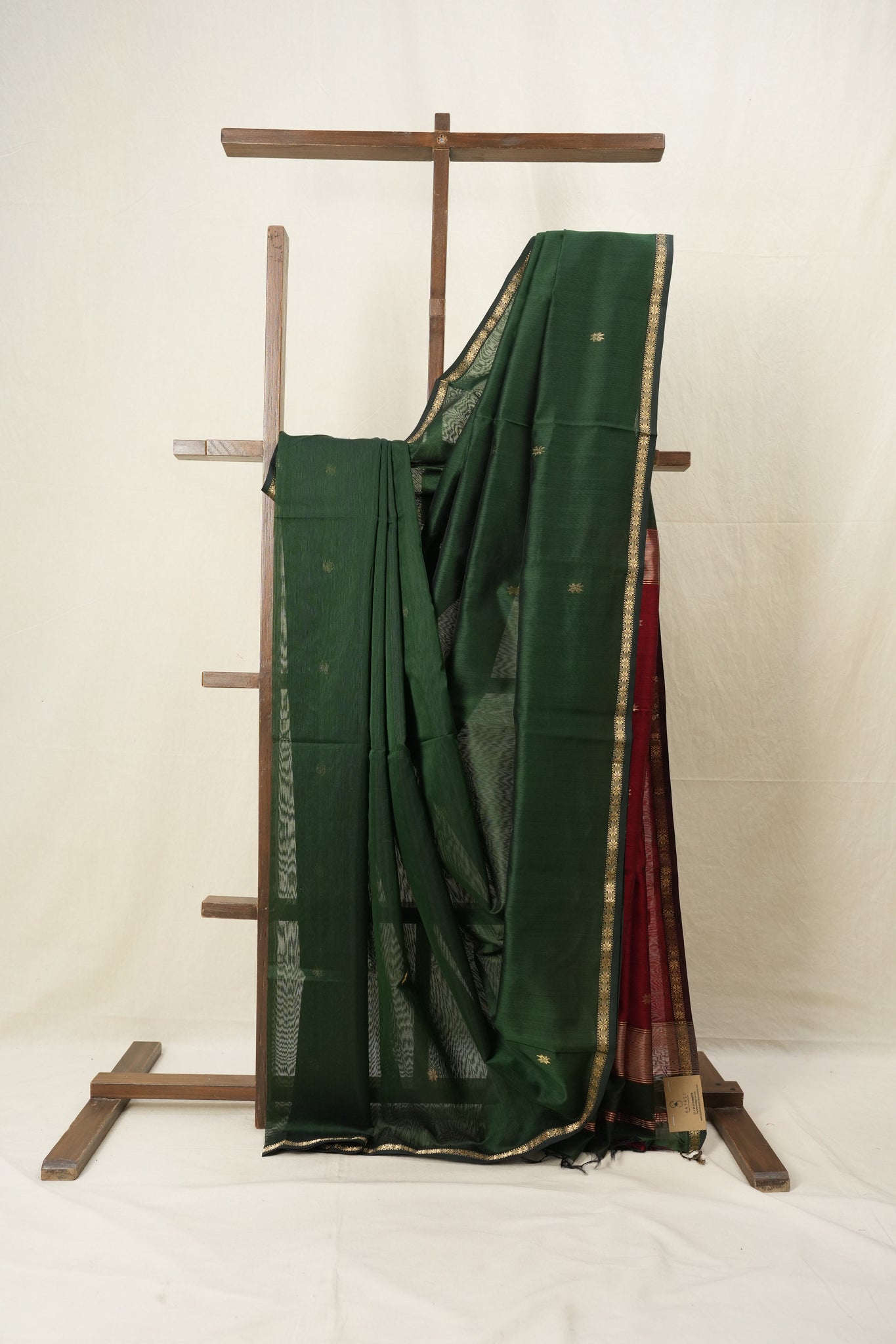 Work - Maheshwari cotton silk saree with butti all over body and rich woven zari border.