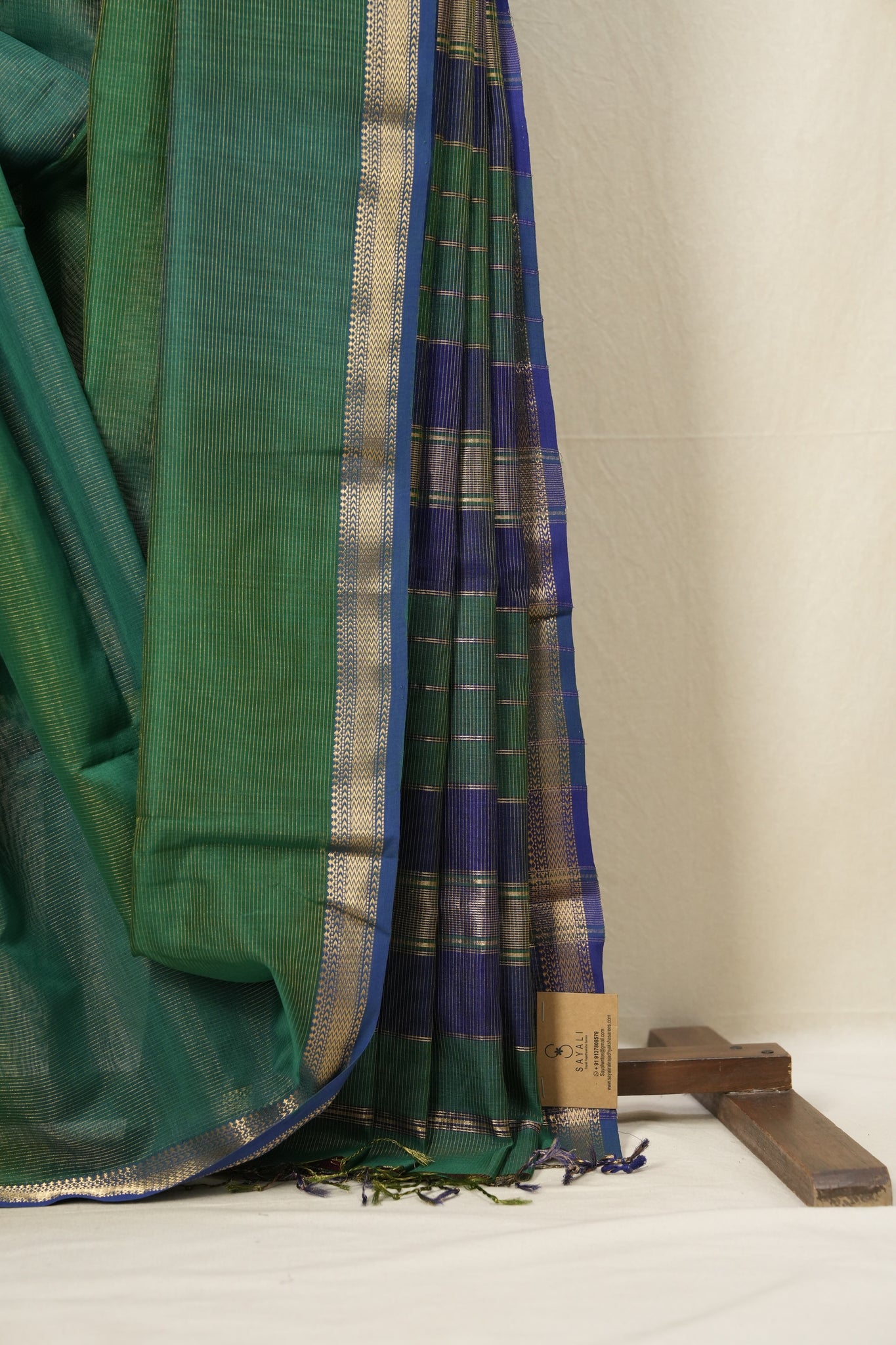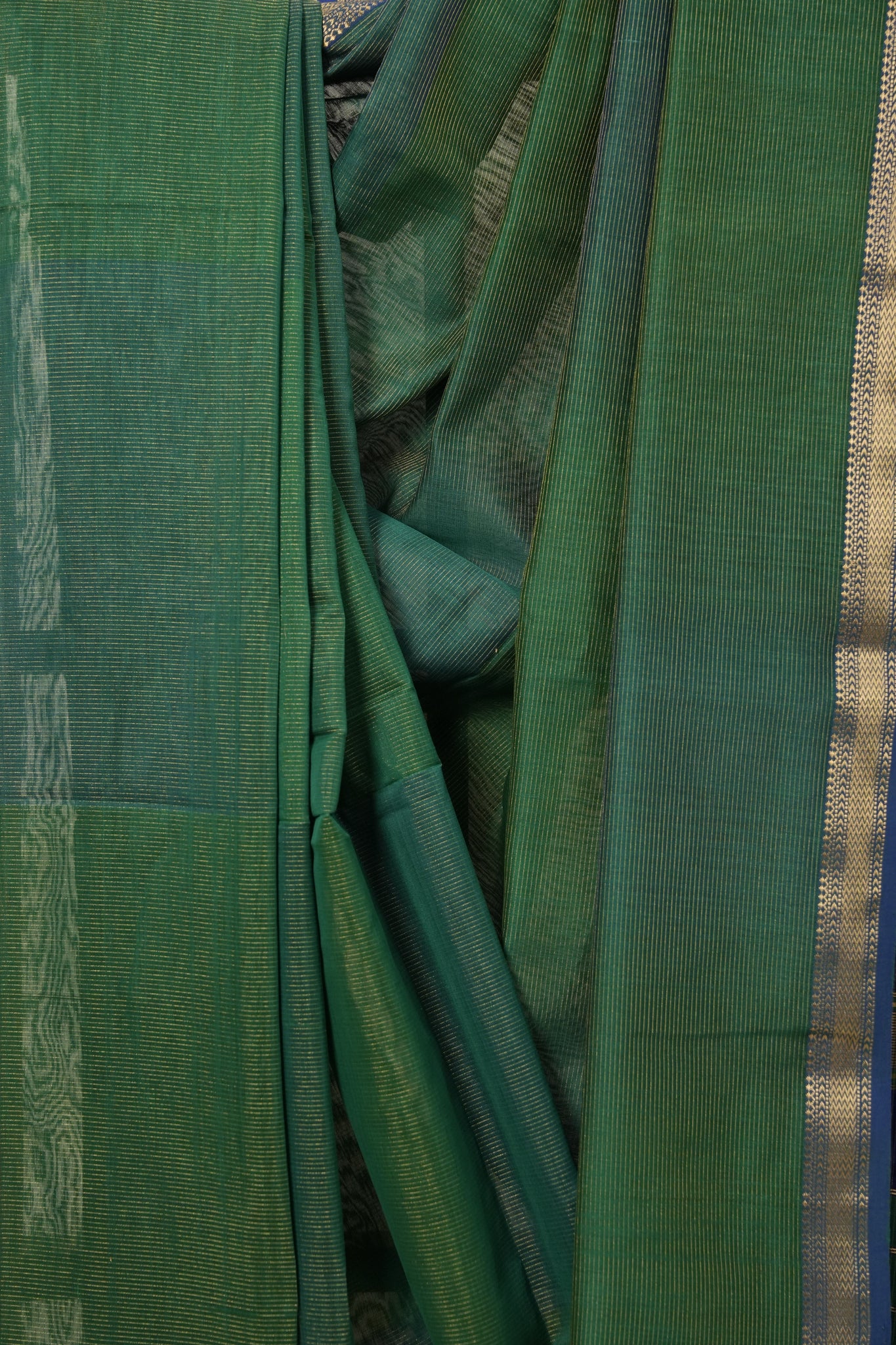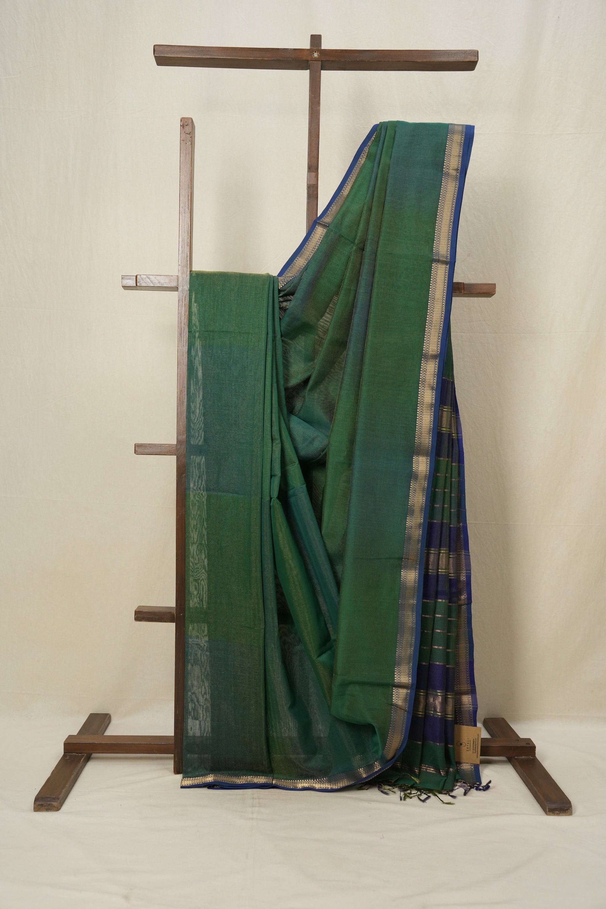 Work - Maheshwari tissue saree with green plain body, and elegant zari border.