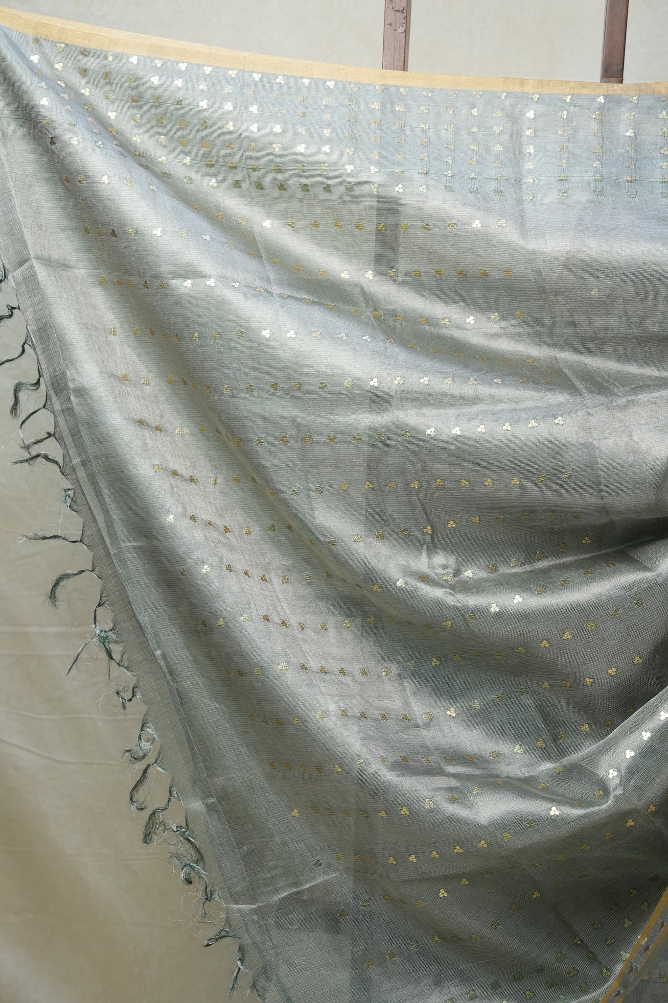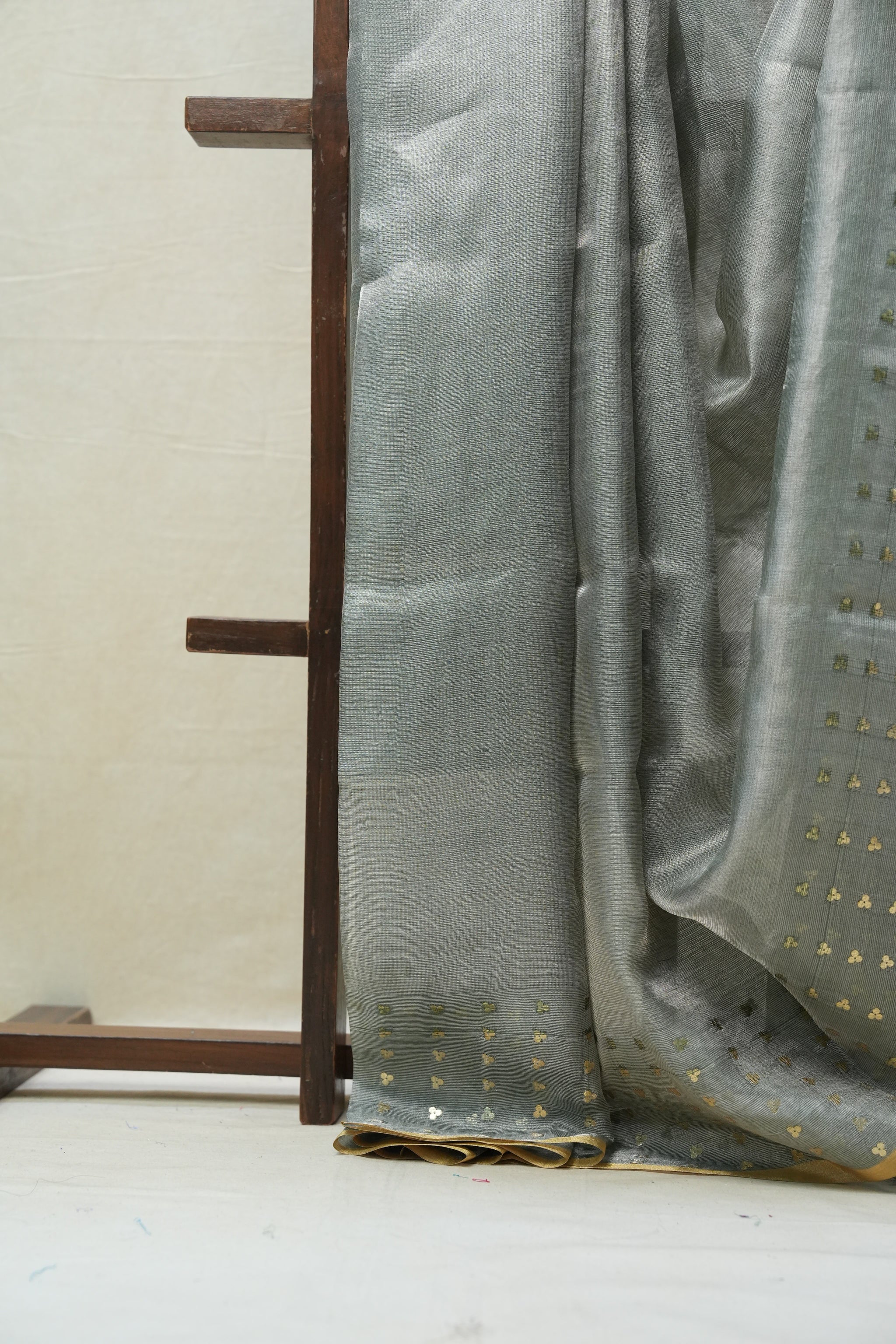 Work -  Subtle gold-zari square and dotted motifs woven throughout with a sleek contrasting border.