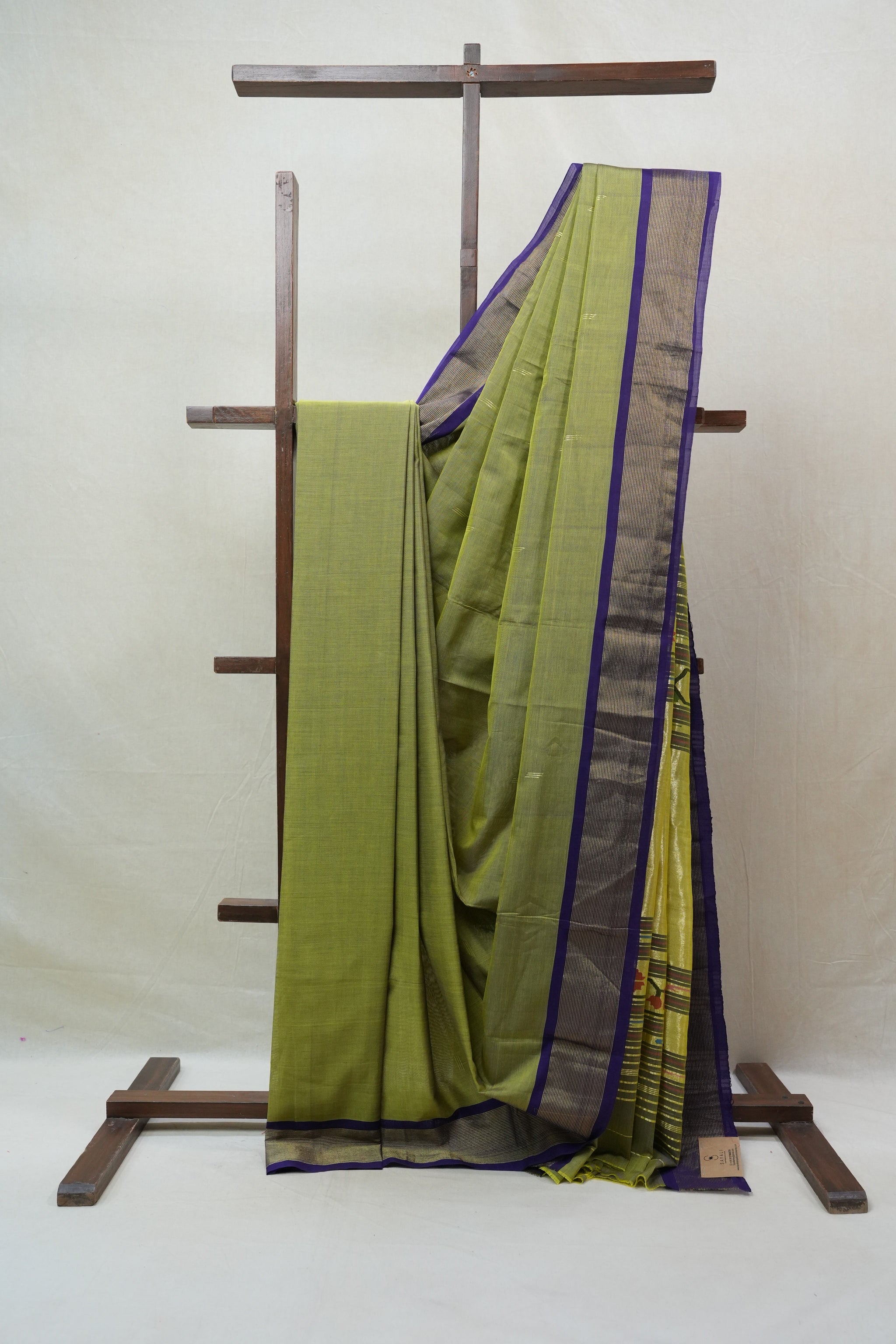 Olive Green Cotton Paithani Saree - SROGCPS543