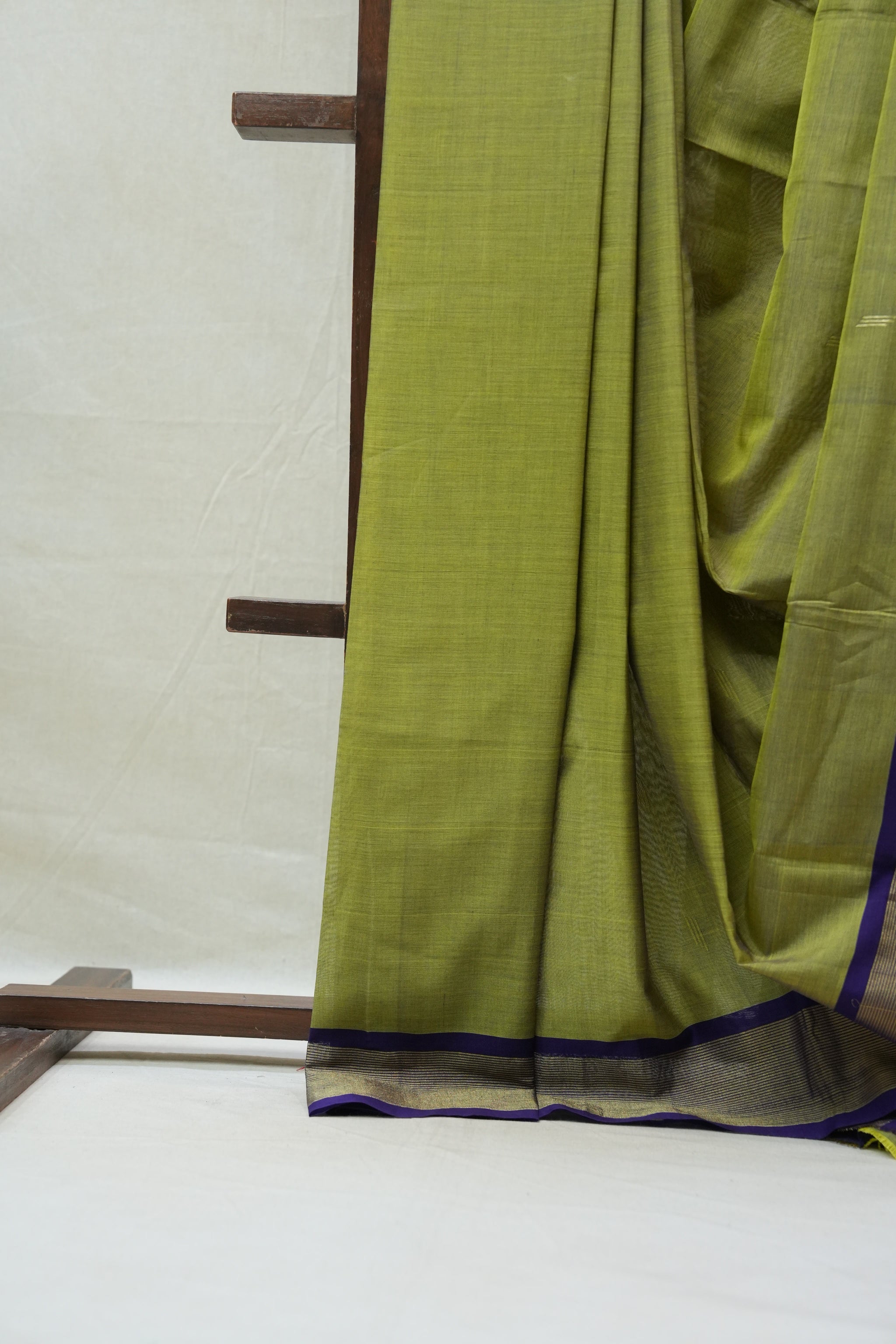 Work - Olive Green cotton Paithani saree with golden zari border and traditional morbagdi pallu.