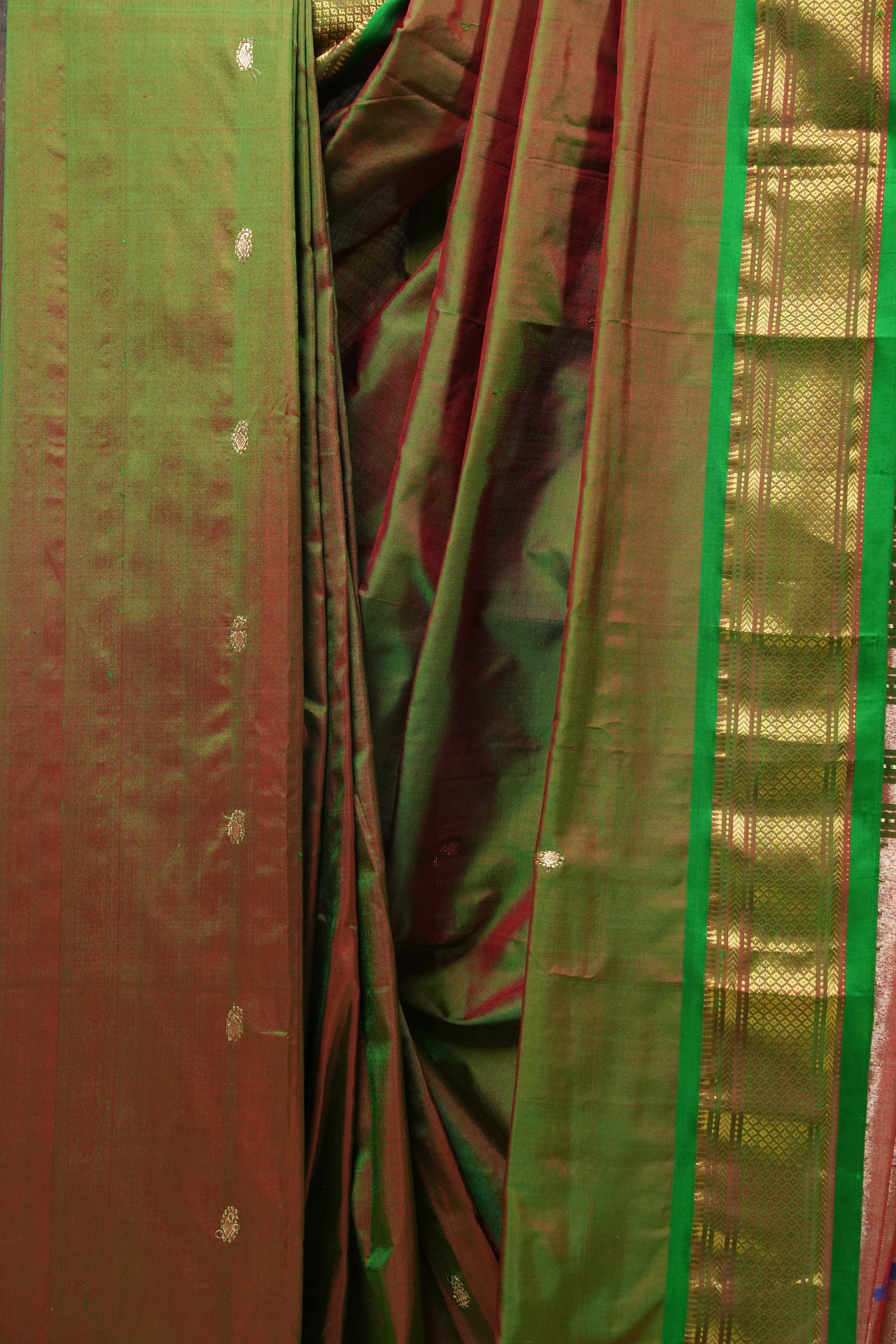 Two Tone Green Silk Paithani Saree - SRTTGSPS678